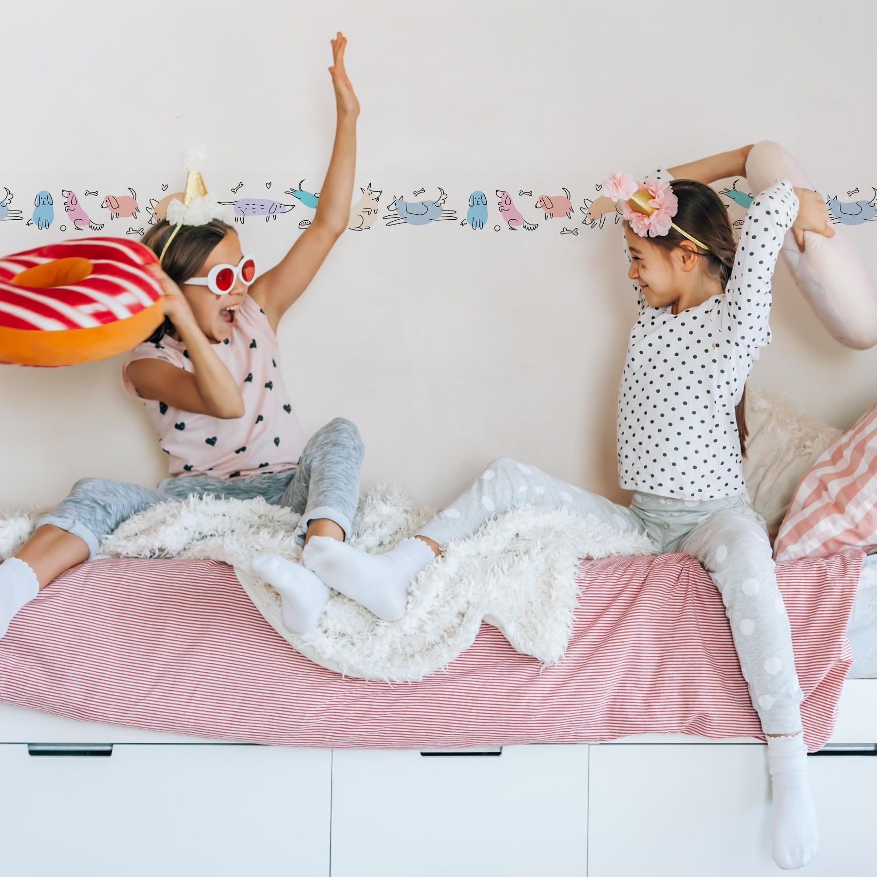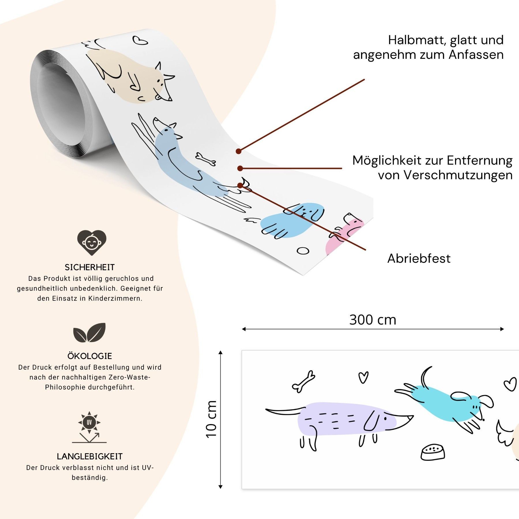 Muralo SelbstklebendeTapetenbordüre Pastellfarbene Hündchen Tiere Kinderzimmer