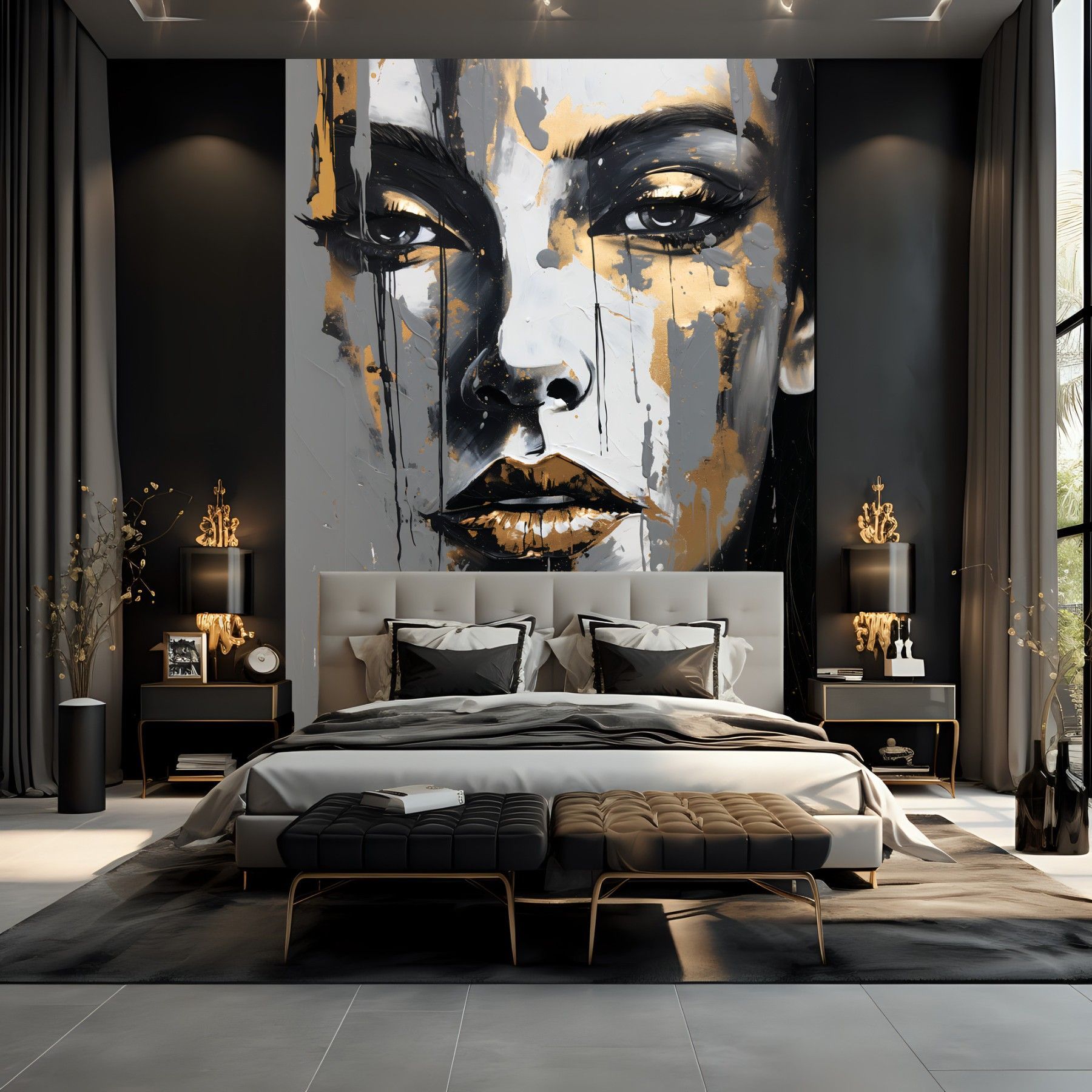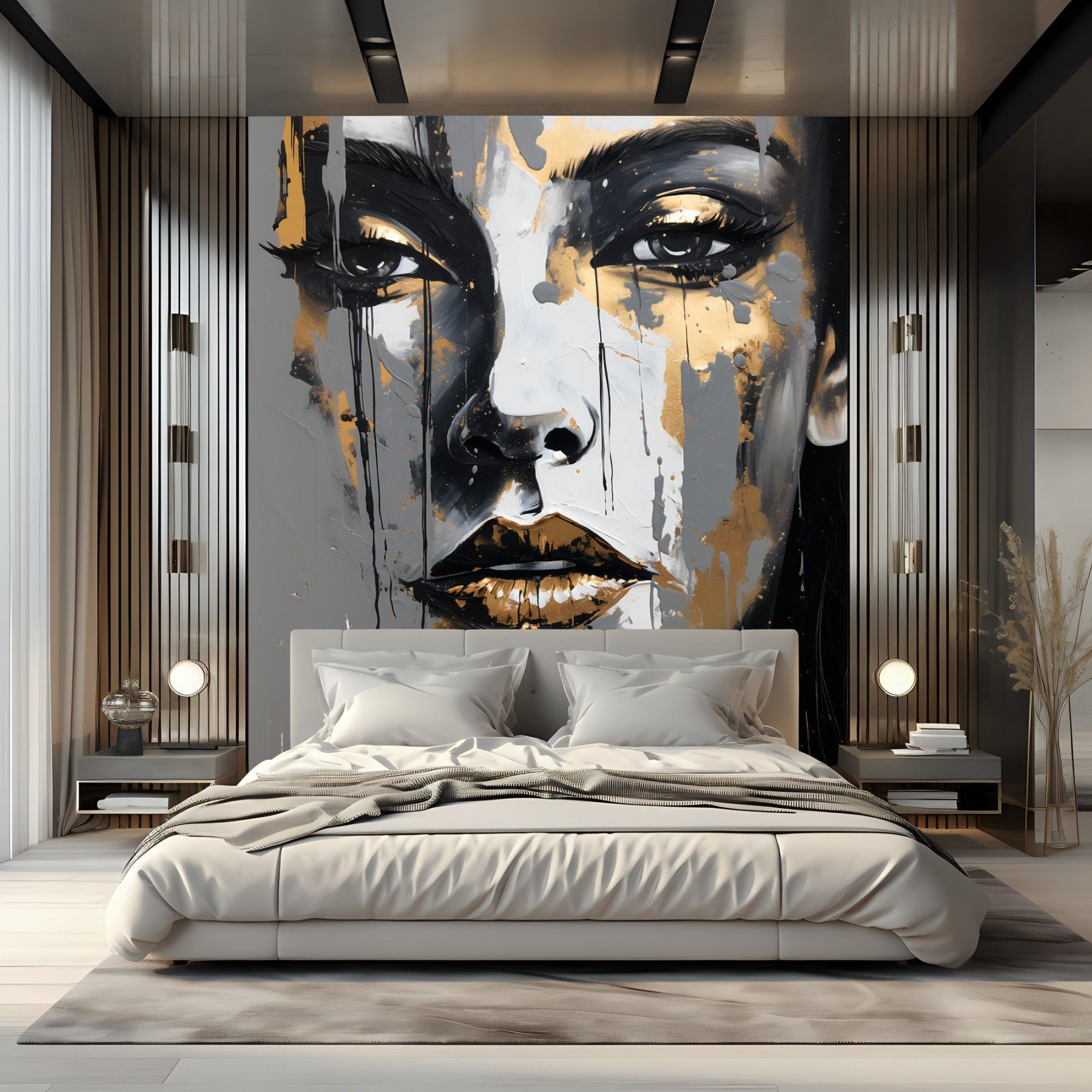 Muralo Vlies Fototapete Frau Gesicht Abstraktion Malarei Wandtapete Glamour Stil
