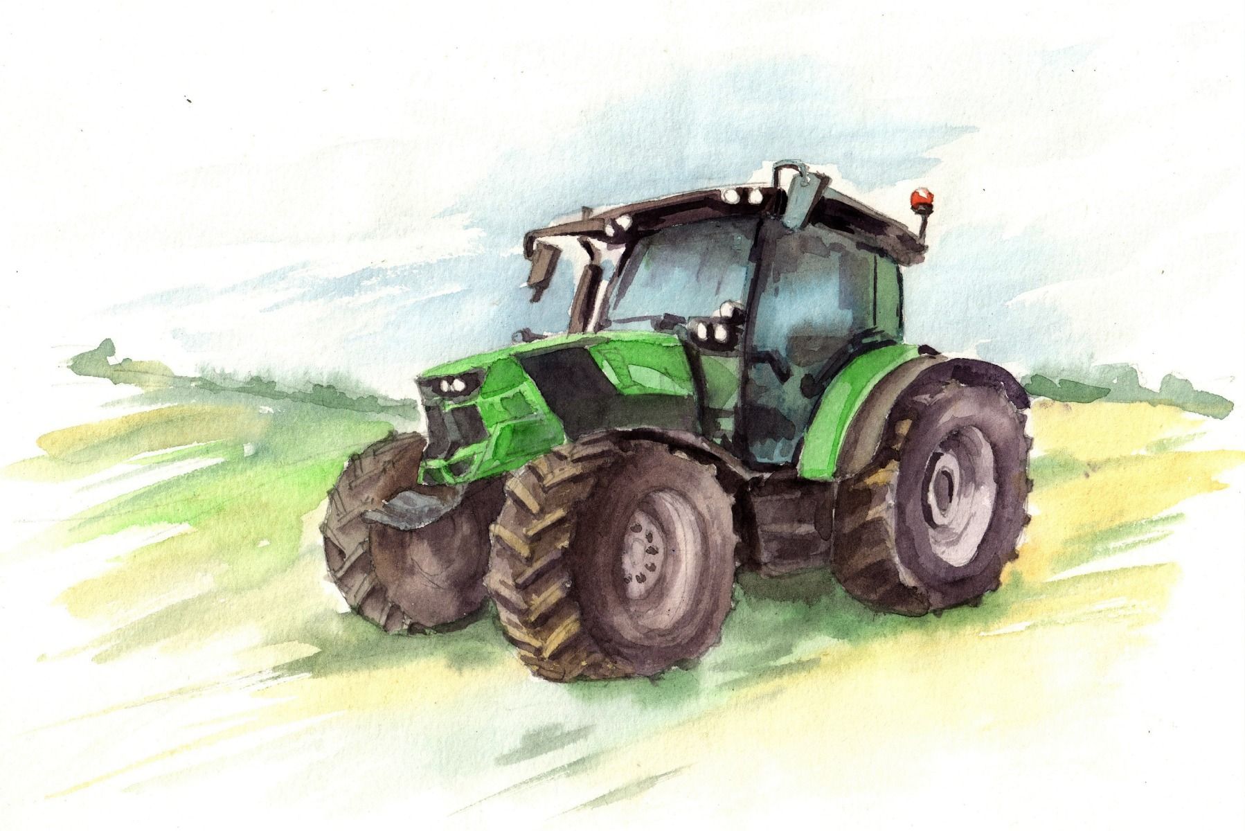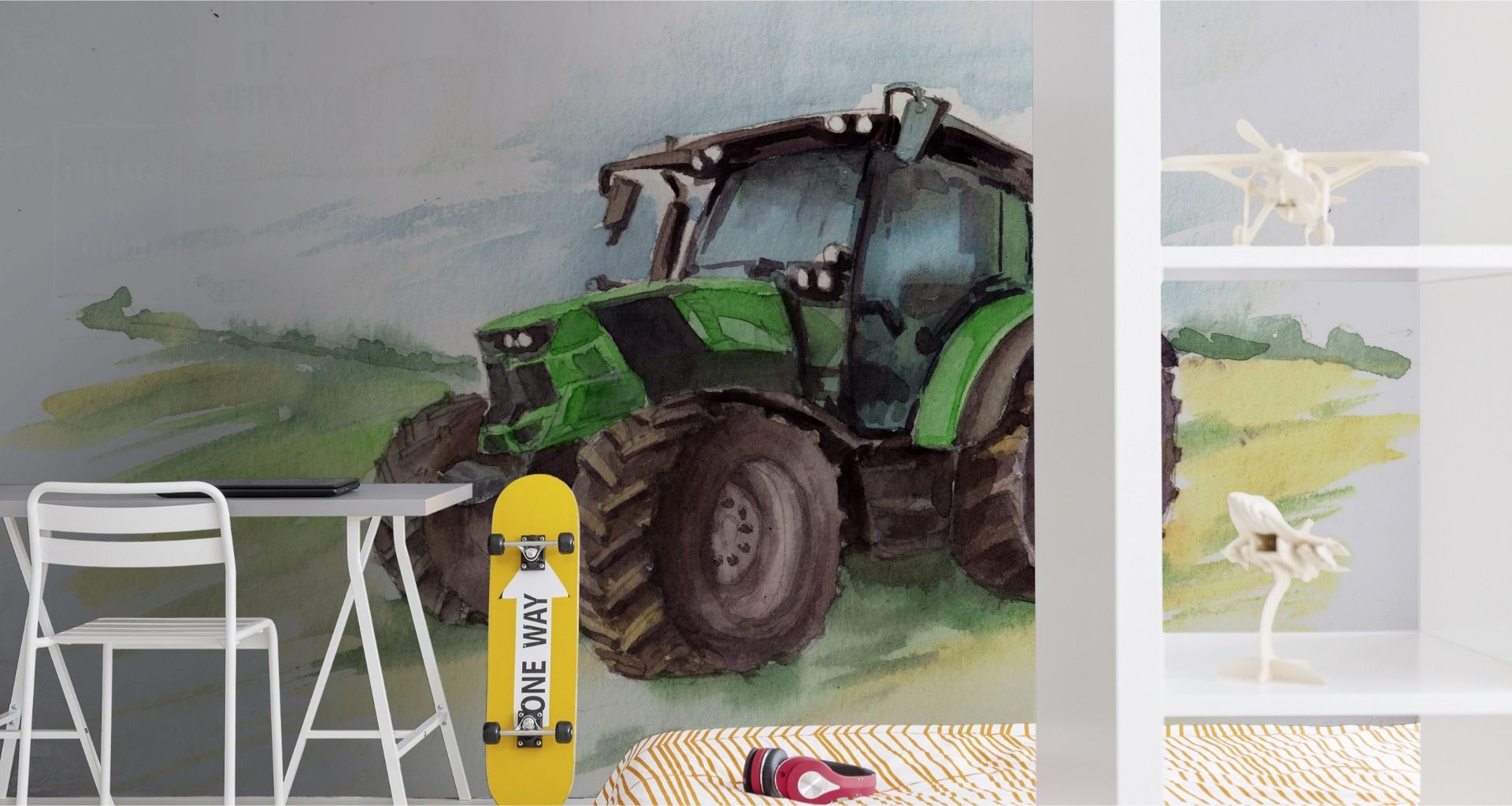 Muralo VLIES Fototapeten Tapeten XXL für Jugend Traktor Aquarell 3497