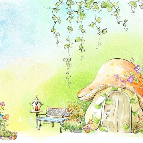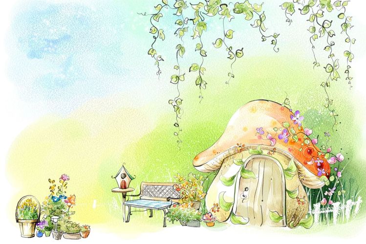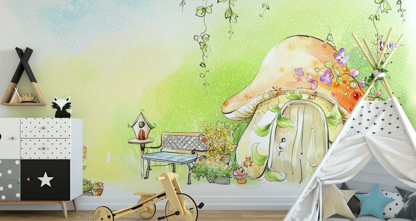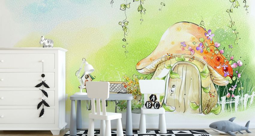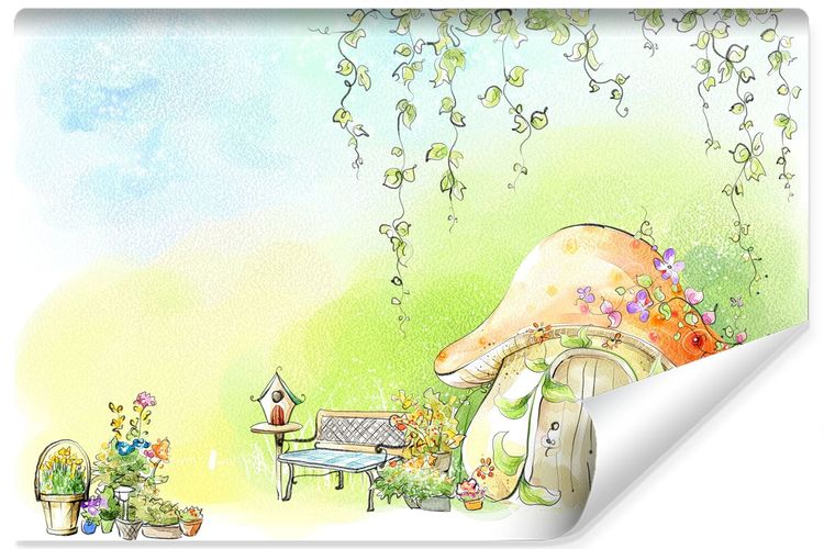 Muralo VLIES Fototapeten Tapeten XXL Aquarell Haus Pilz Märchen 4864
