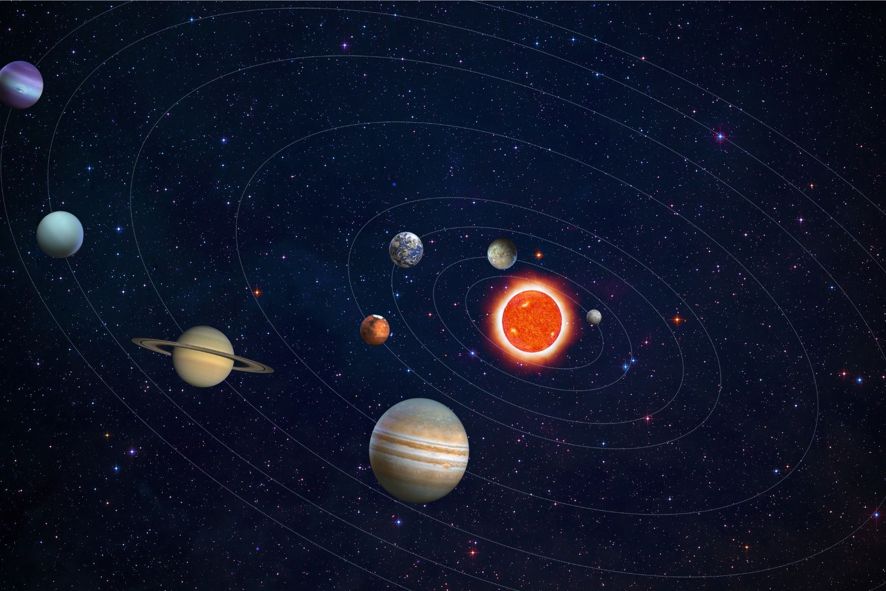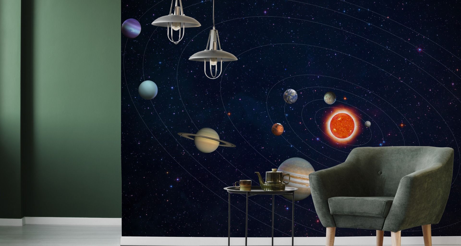 Muralo VLIES Fototapeten Tapeten XXL Planeten Sterne Sonne Orbits 4434