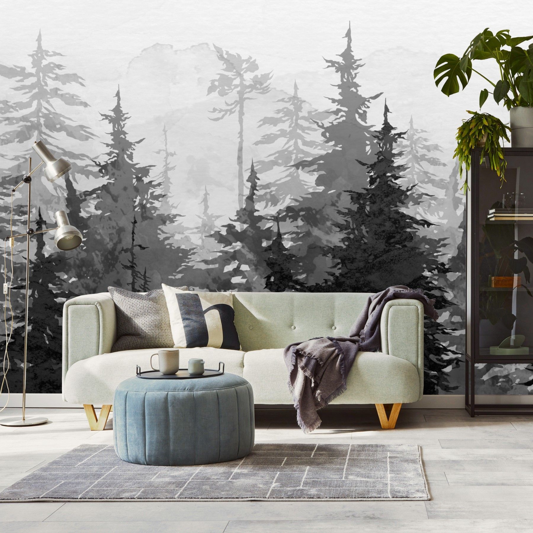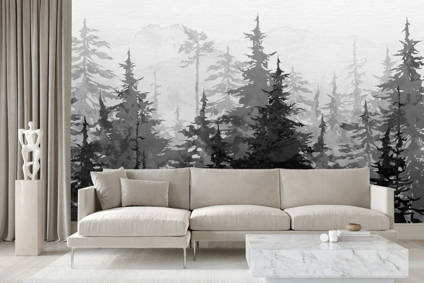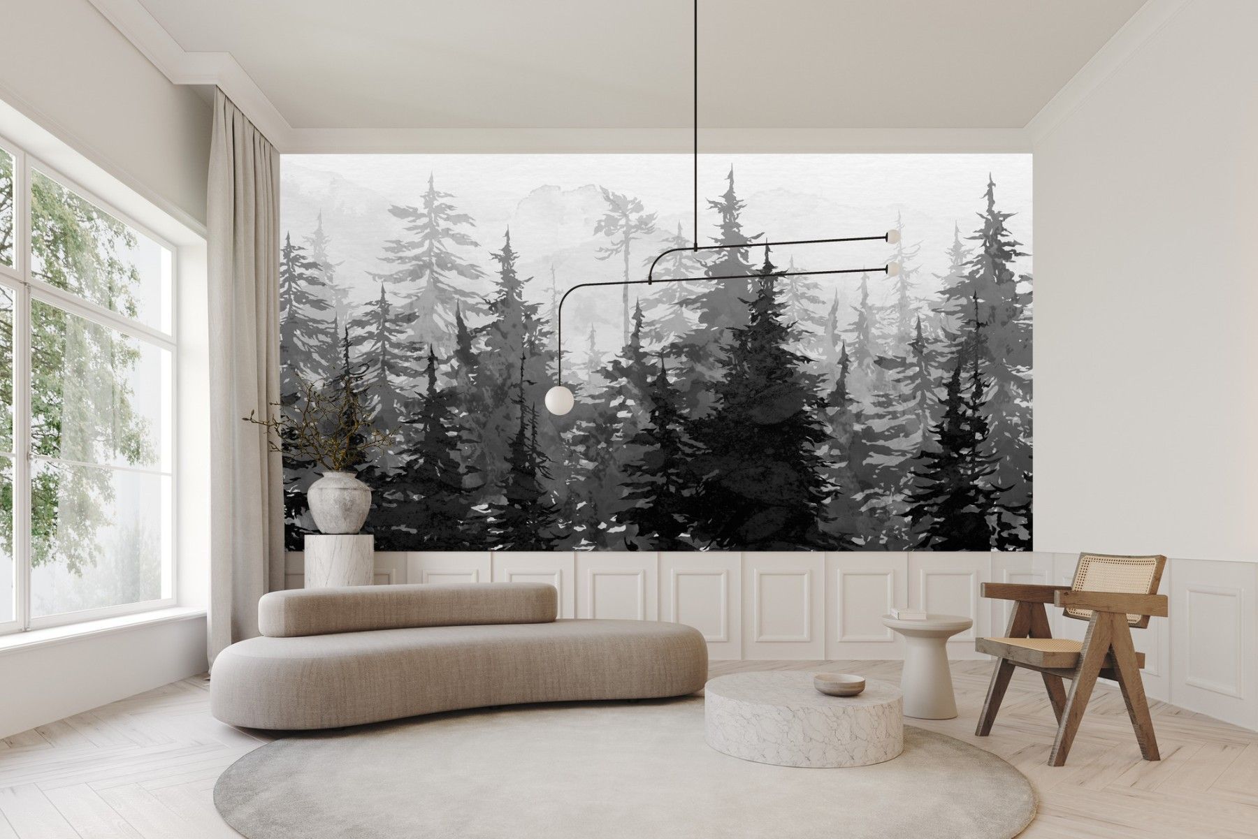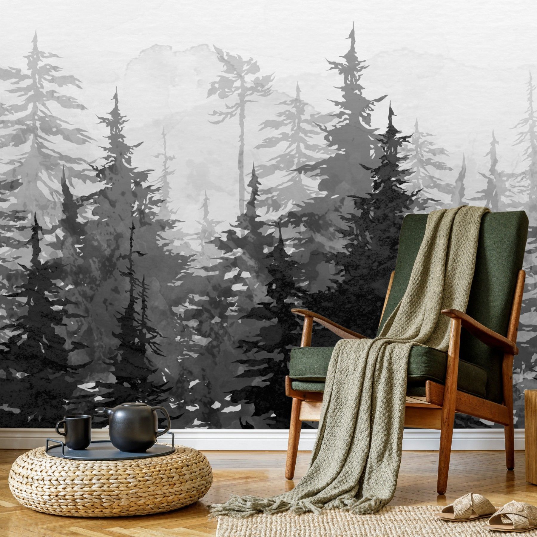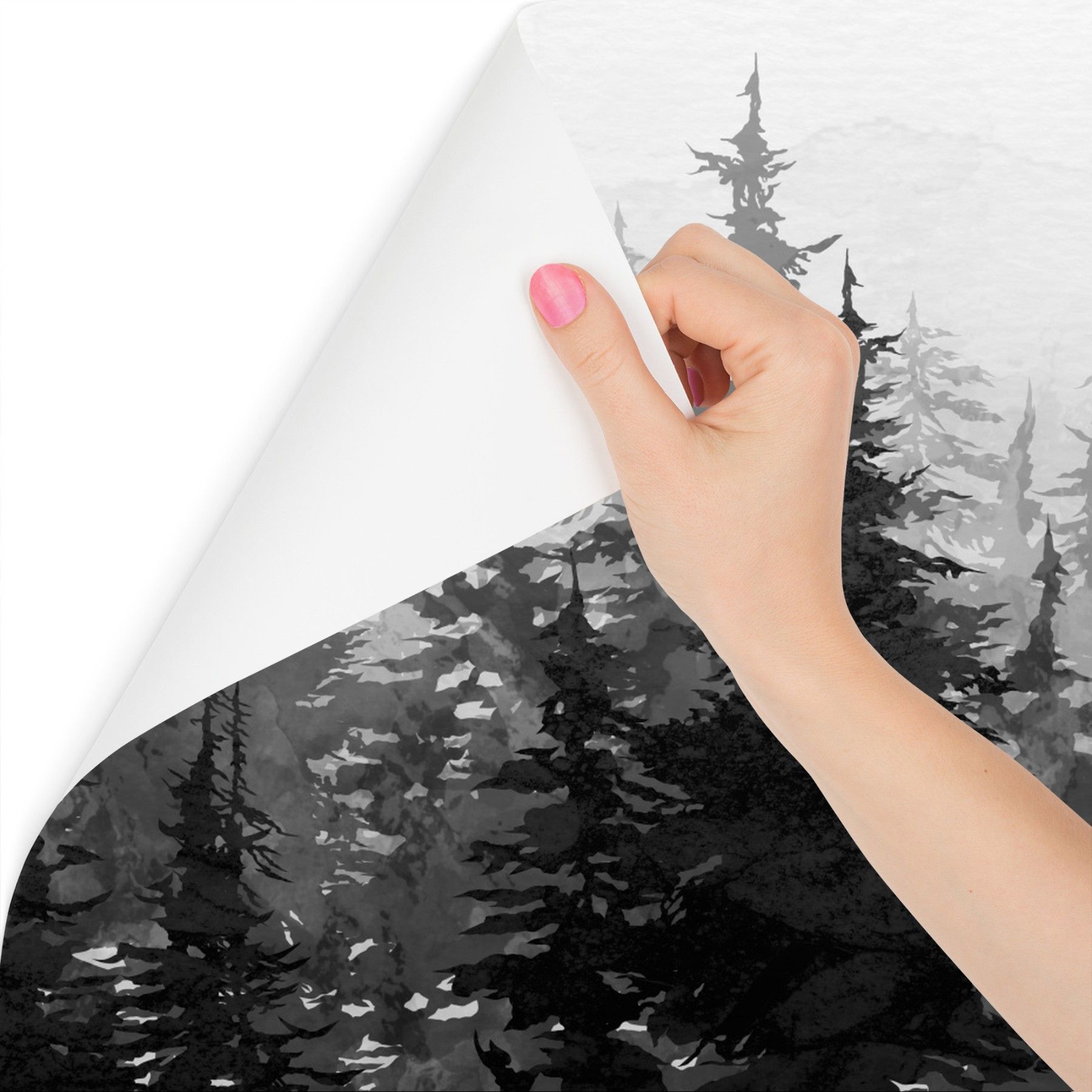Muralo Vlies Selbstklebende Fototapete Schwarz-Weiß WALD Bäume Natur Wandtapete