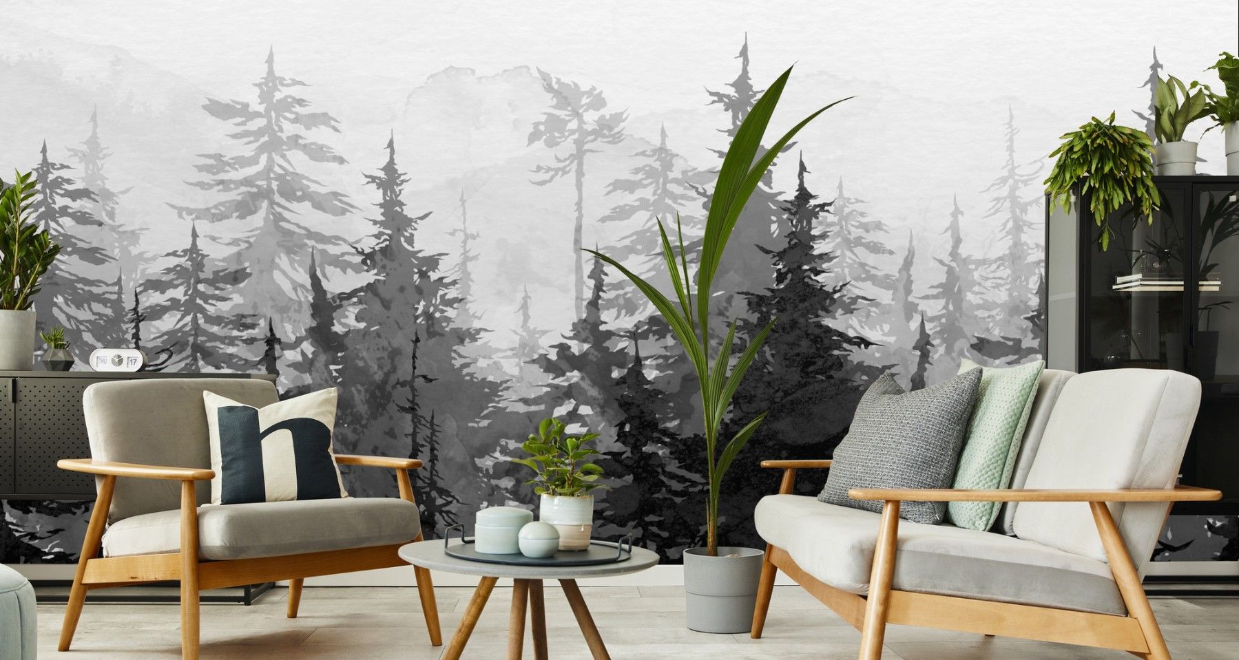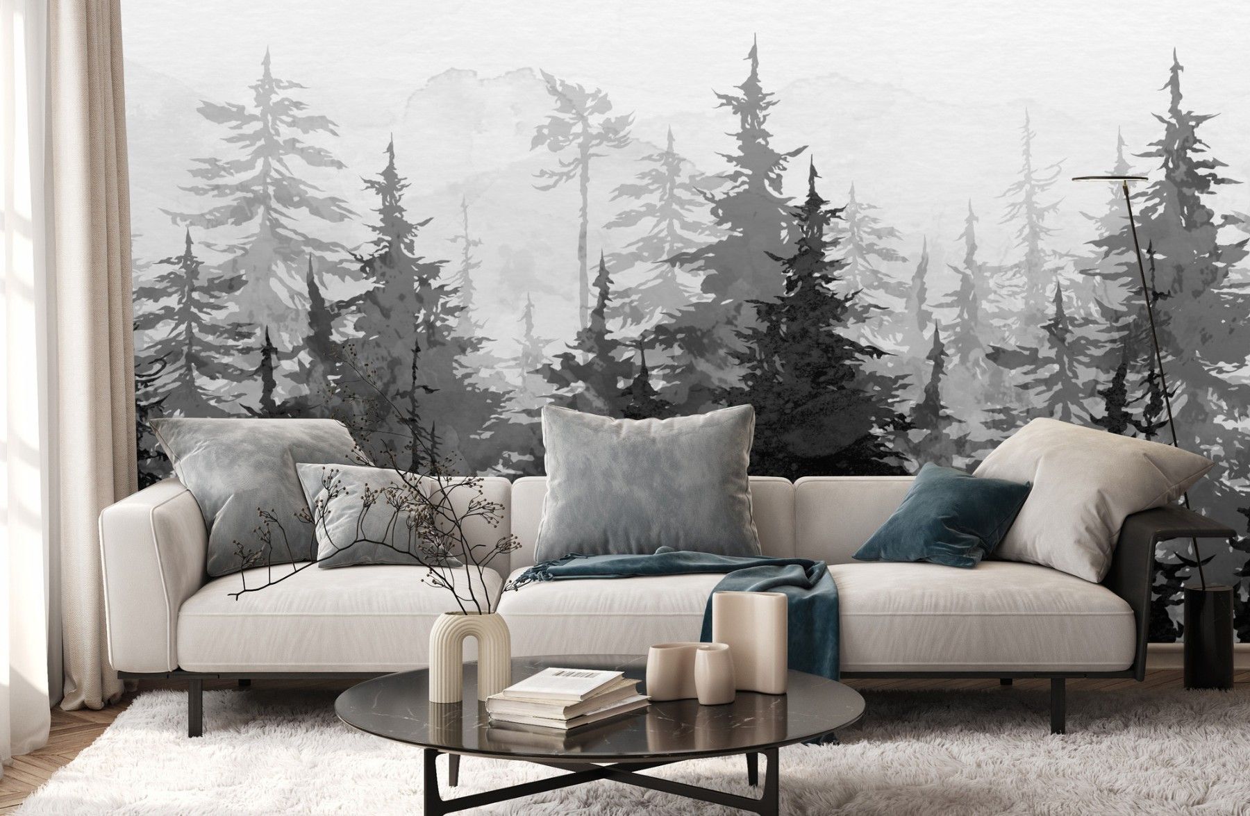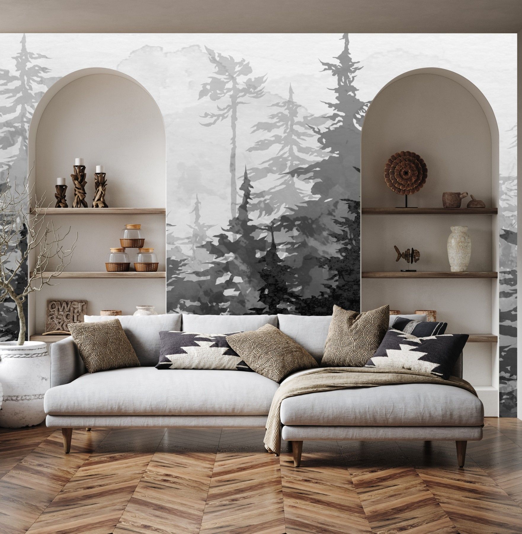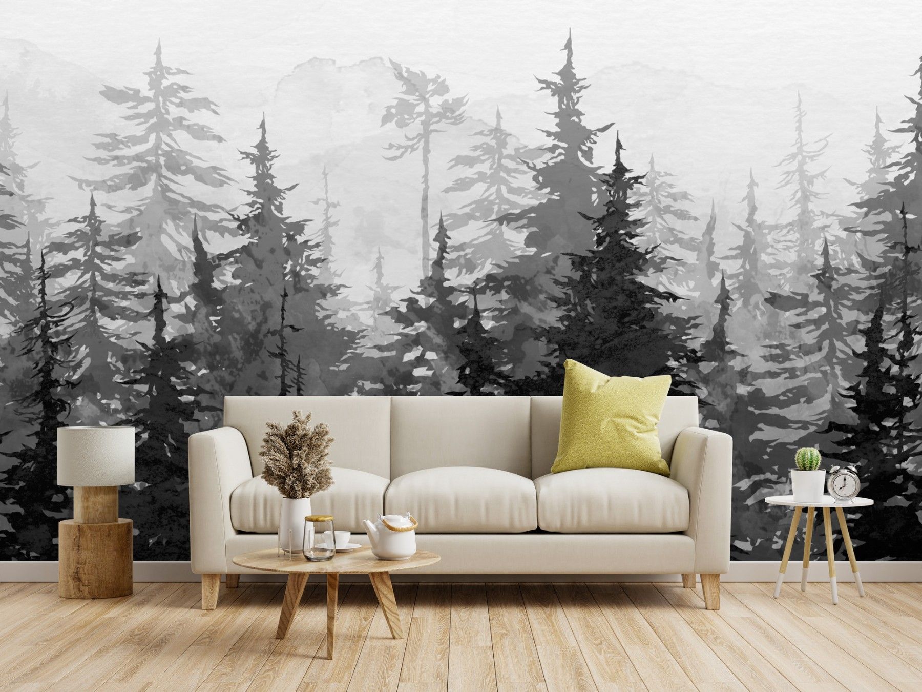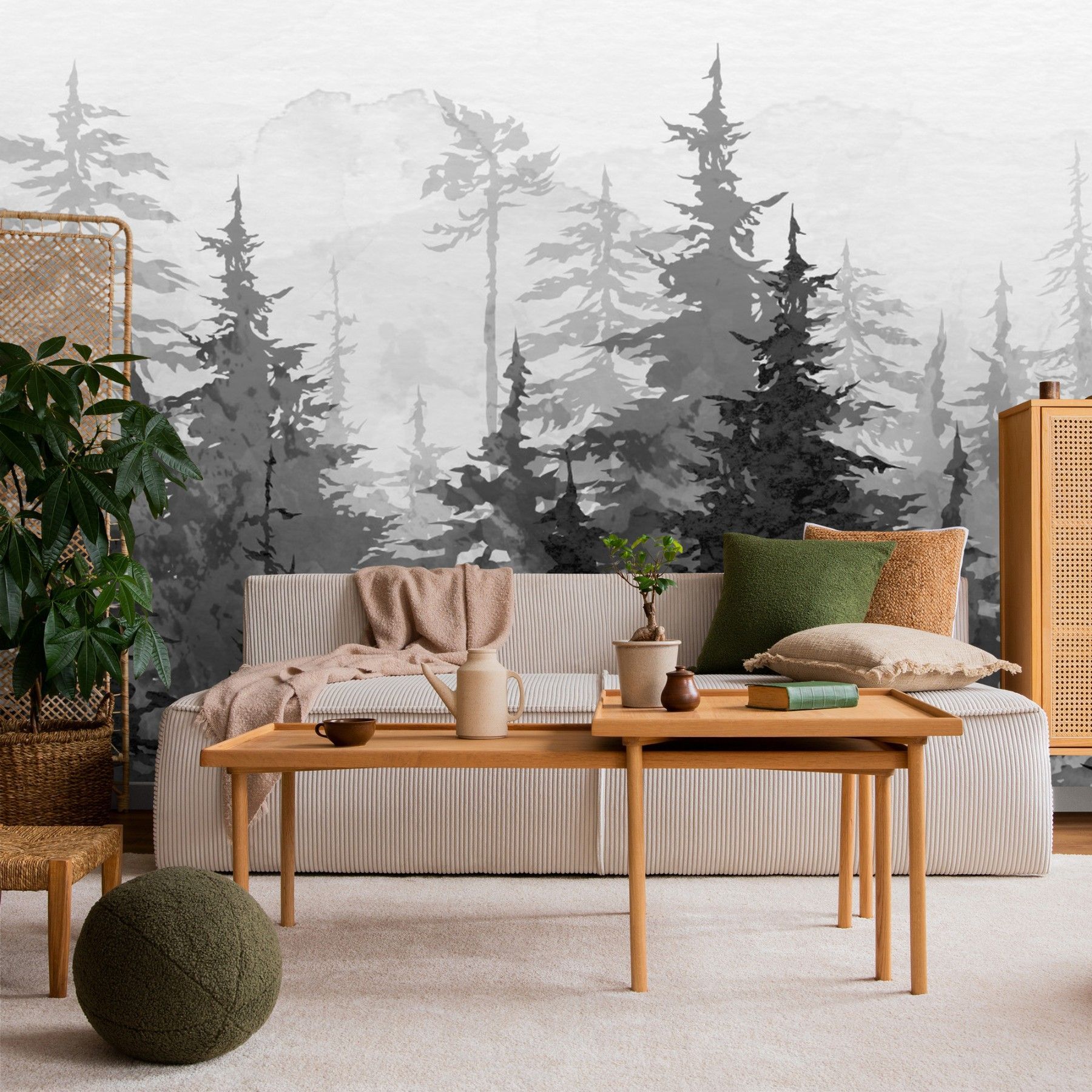 Muralo Vlies Selbstklebende Fototapete Schwarz-Weiß WALD Bäume Natur Wandtapete