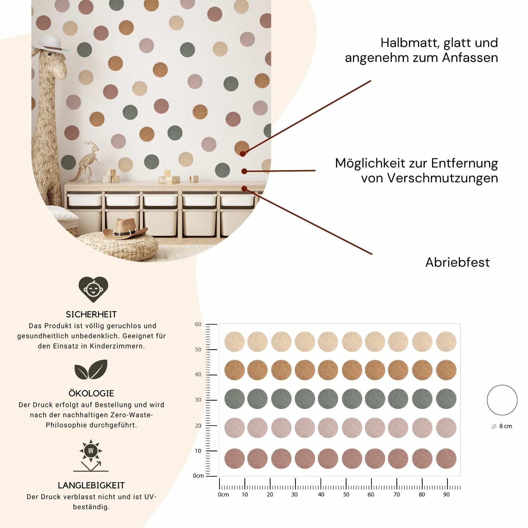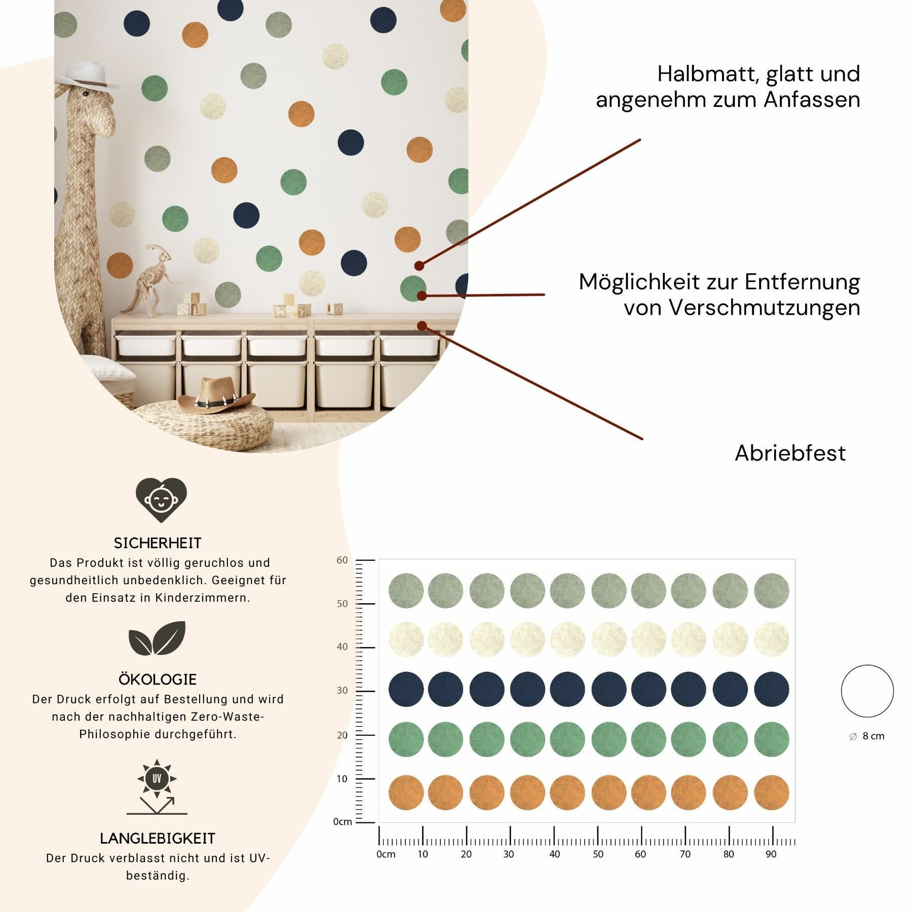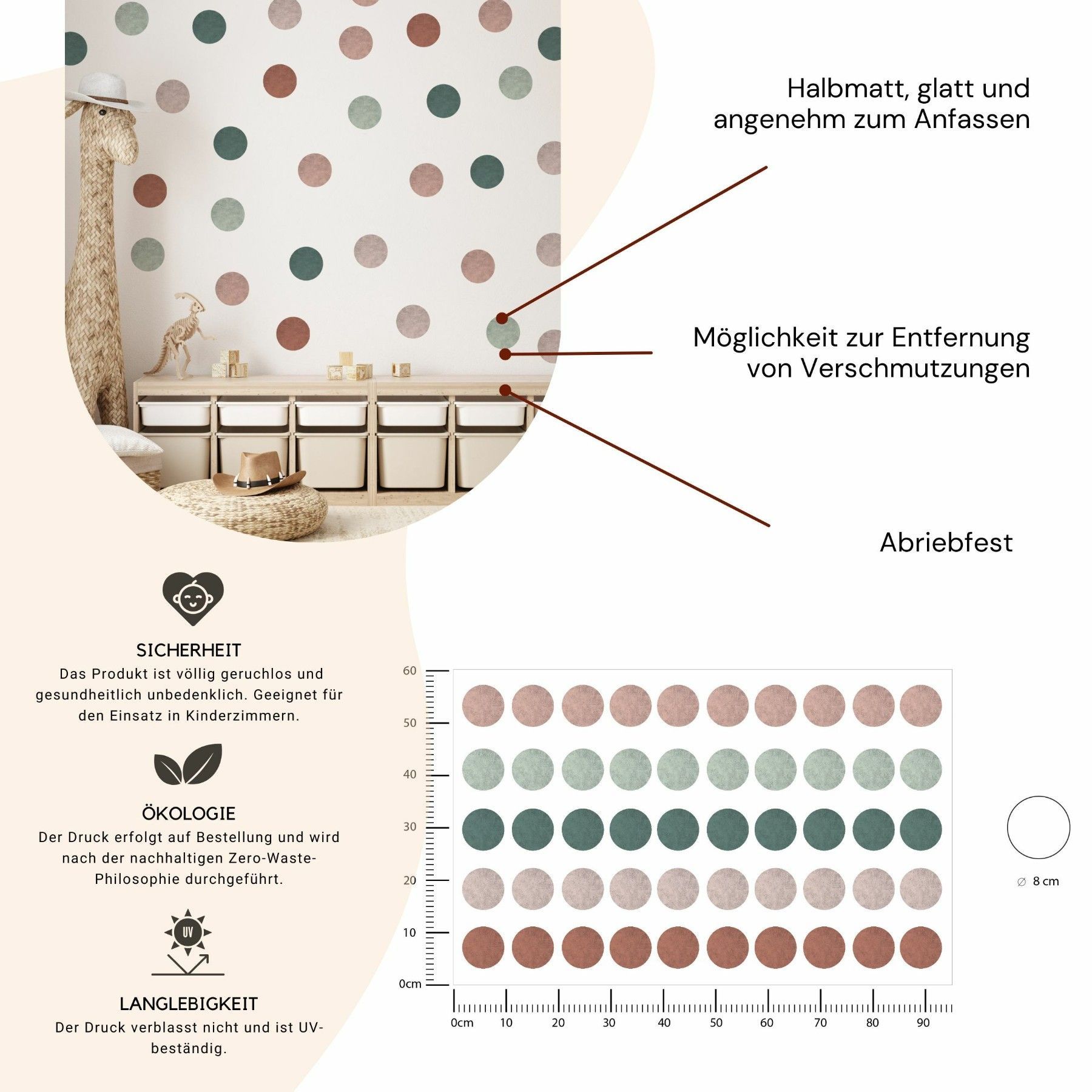 Muralo Wandtatto Wandsticker Wanddeko bunte Punkte Tupfen Muster Aufkleber 95x60cm