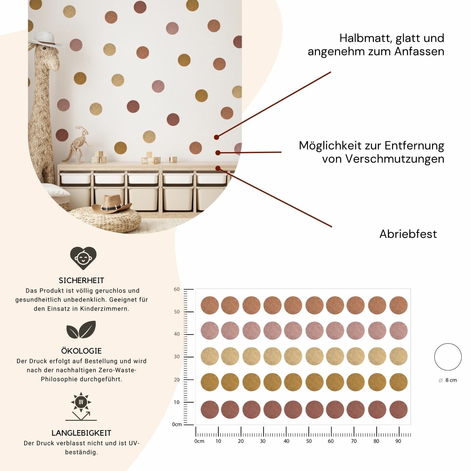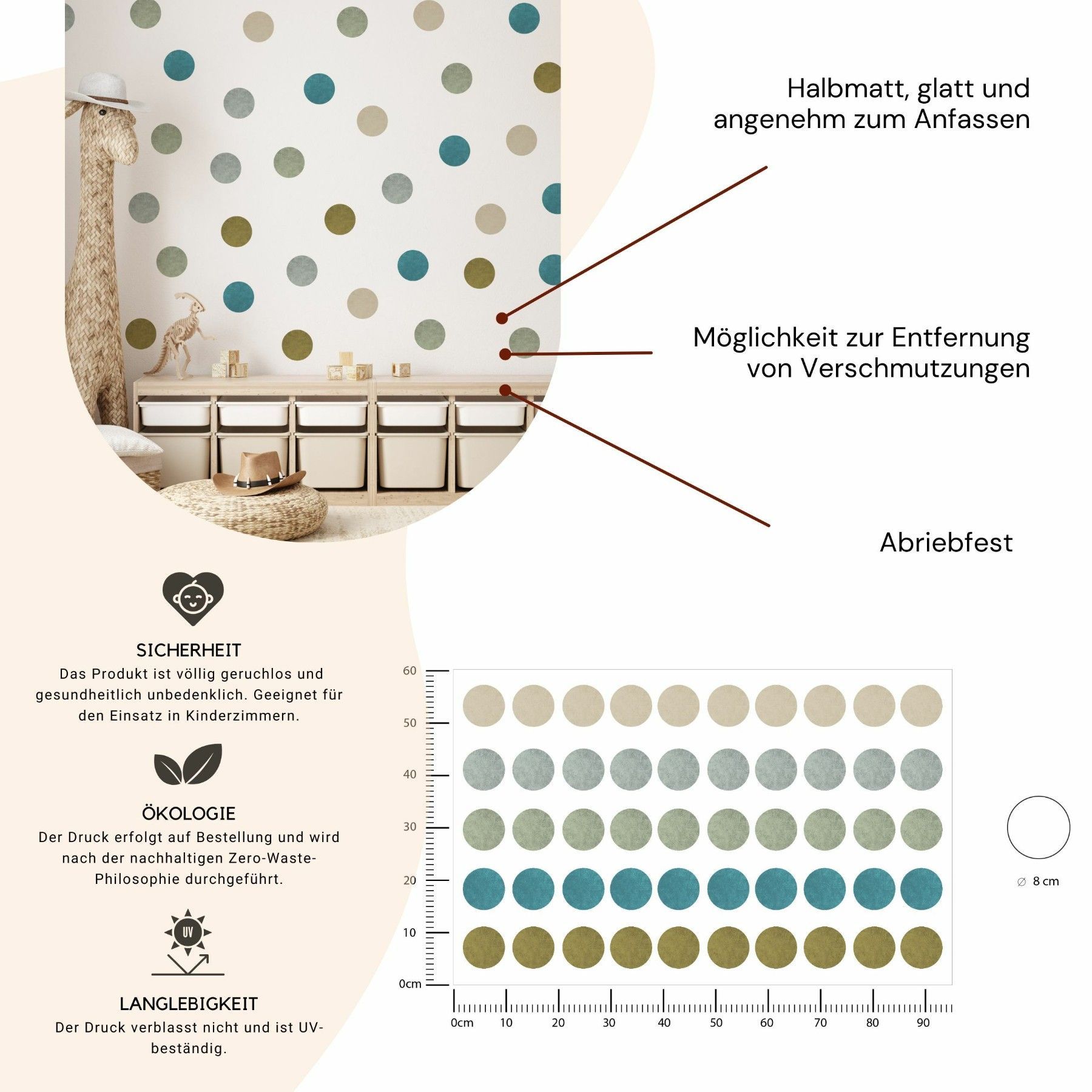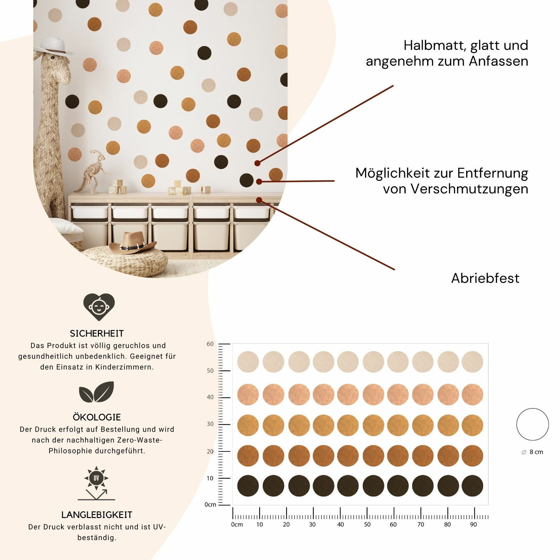 Muralo Wandtatto Wandsticker Wanddeko bunte Punkte Tupfen Muster Aufkleber 95x60cm