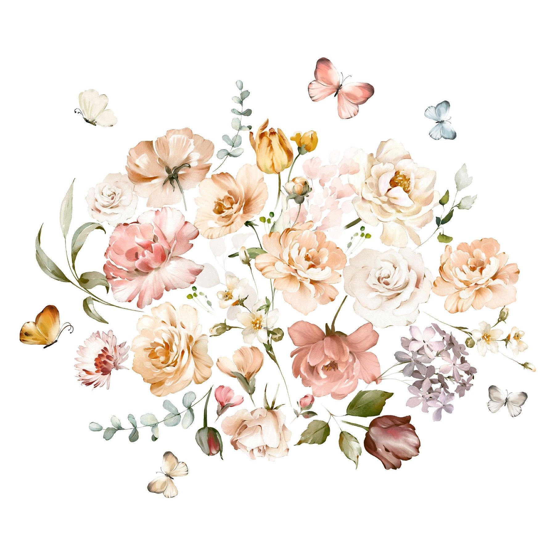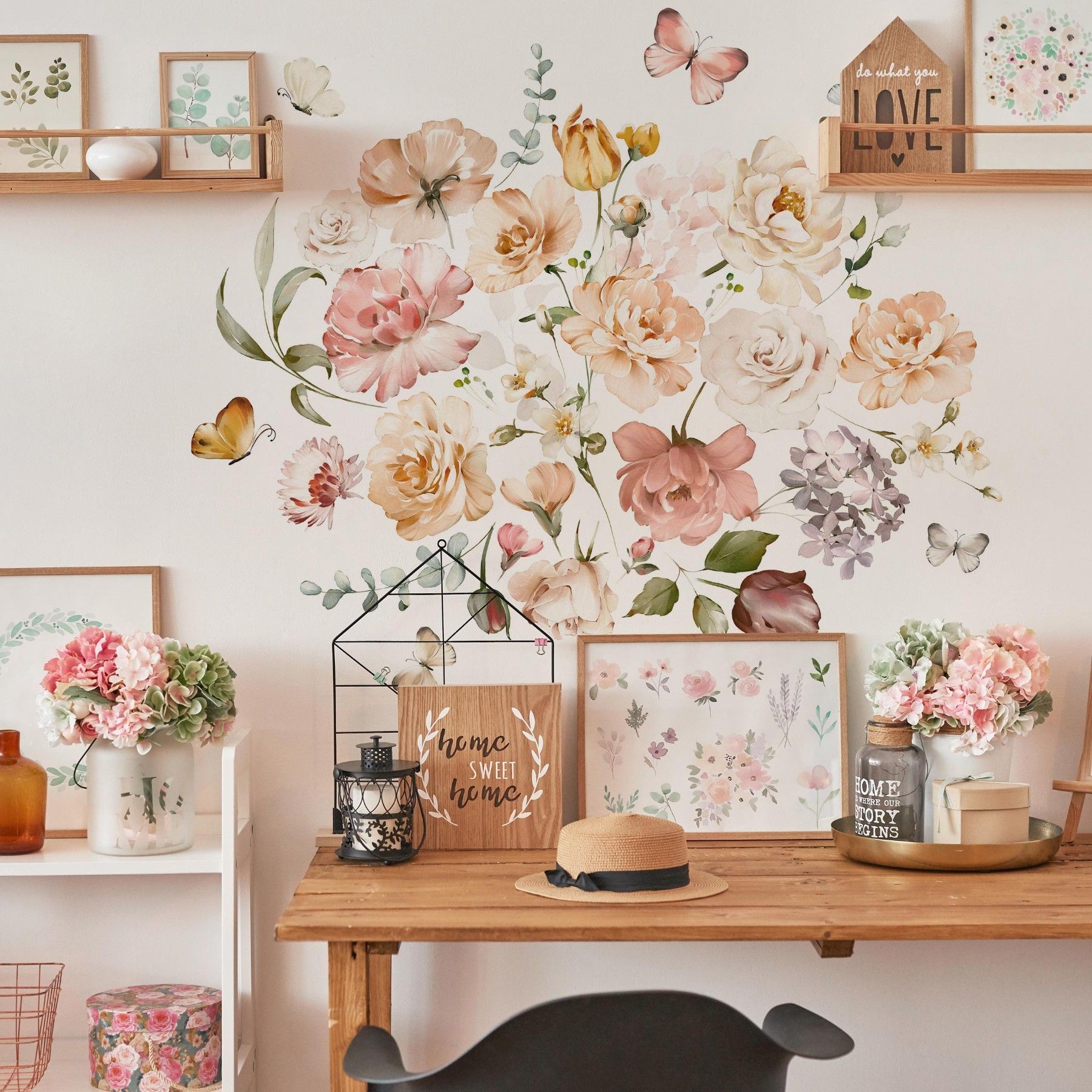 Muralo Wandtattoo Wandsticker Blumen Blätter Schmetterlinge Natur Aufkleber