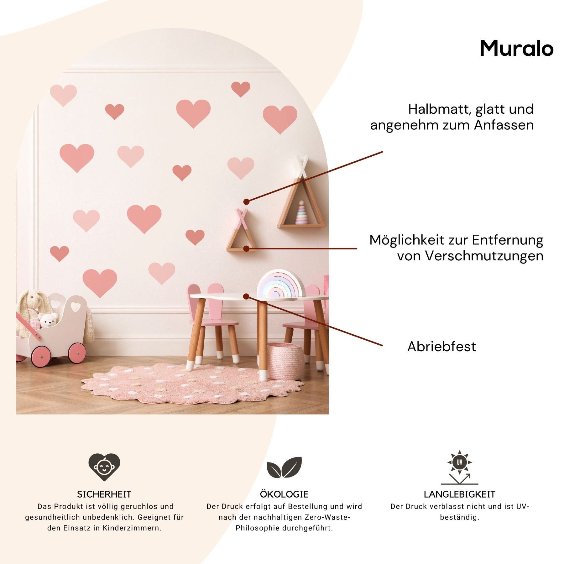 Muralo Wandtattoo Wandsticker bunte HERZEN Wanddeko Aufkleber für Kinderzimmer