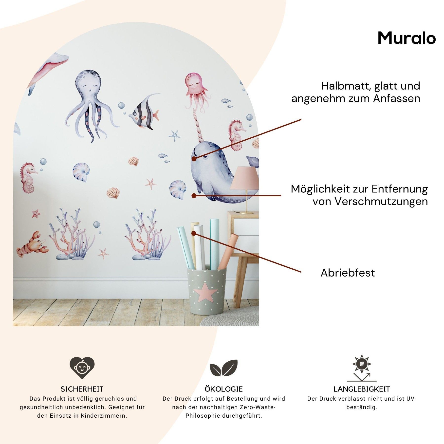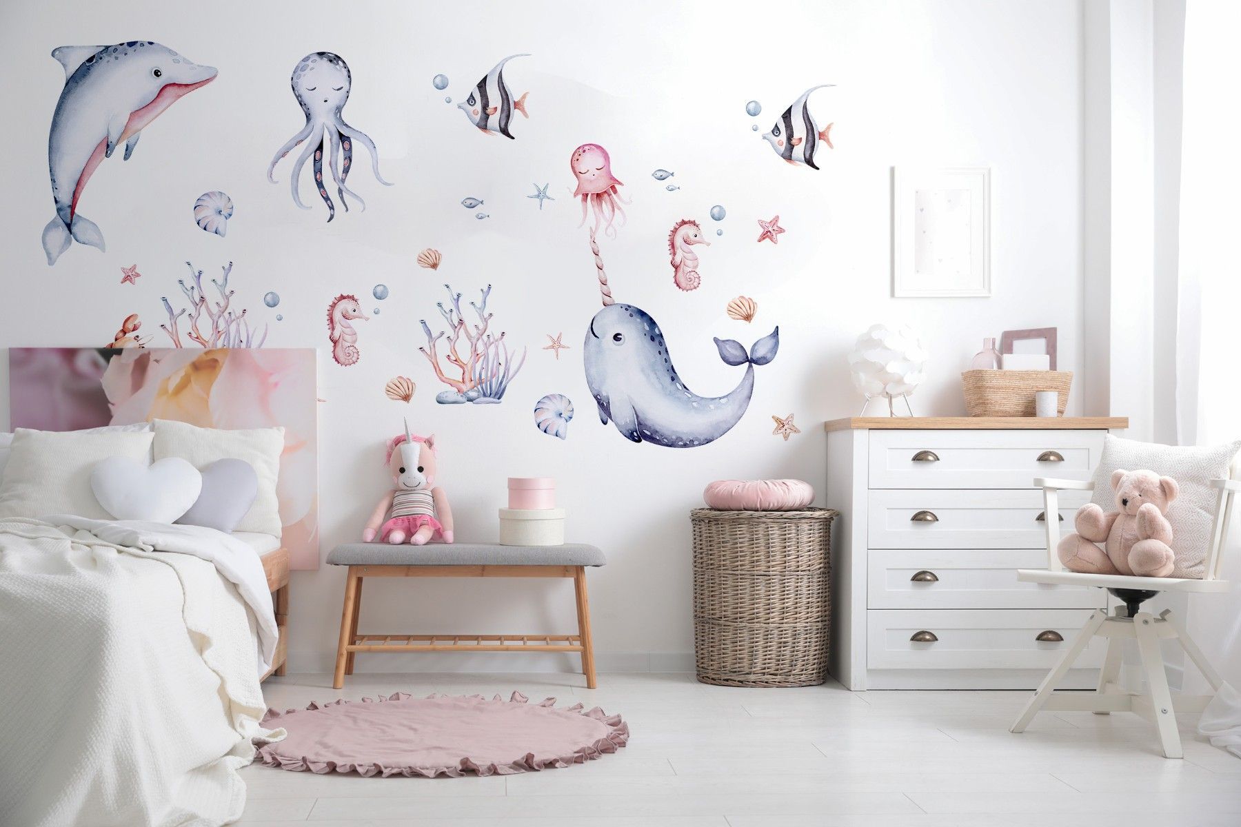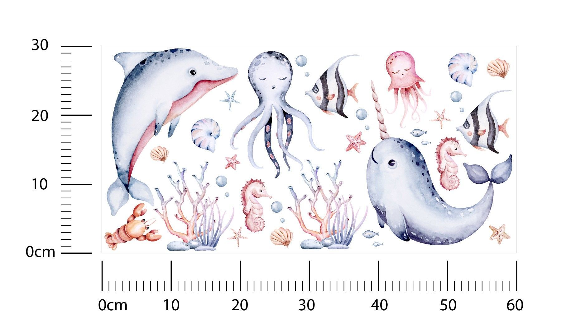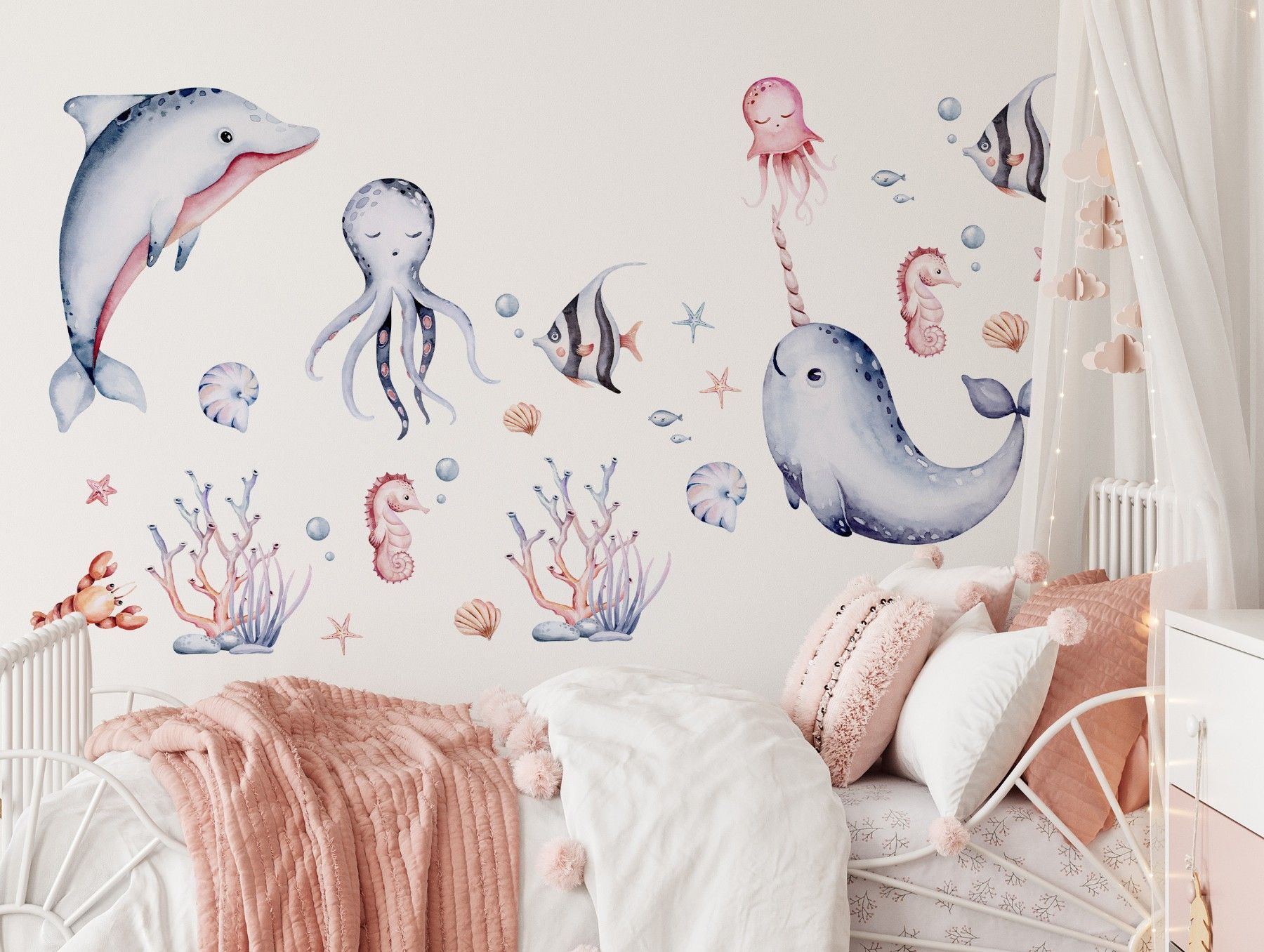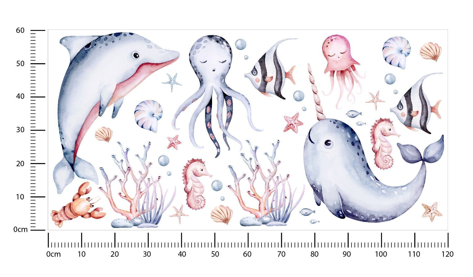 Muralo Wandtattoo Wandsticker für Kinder bunte Meerestiere Aquarell Aufkleber