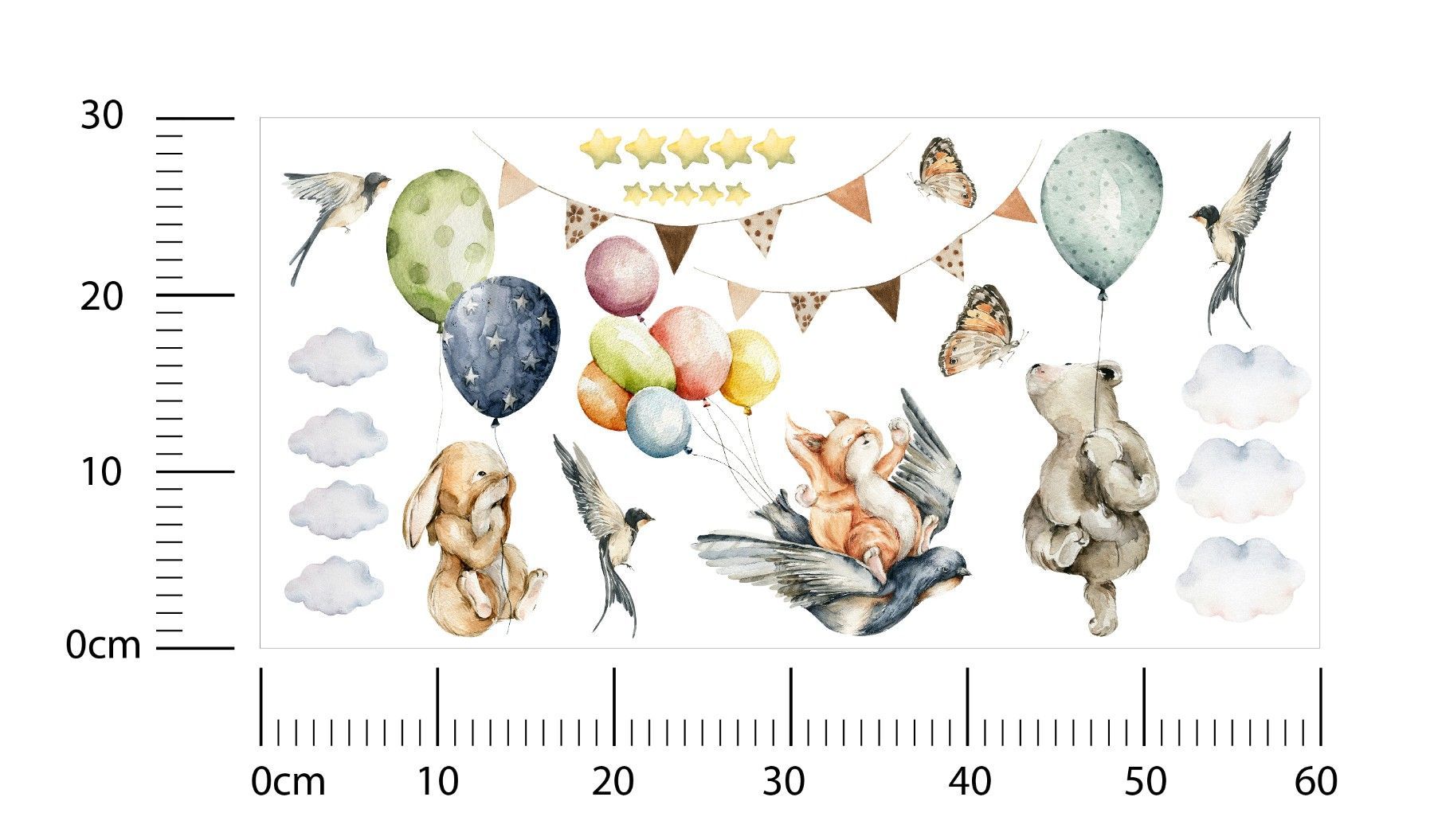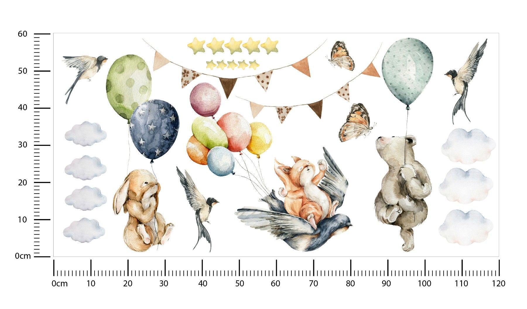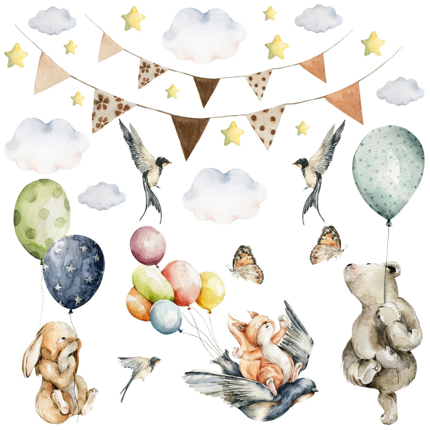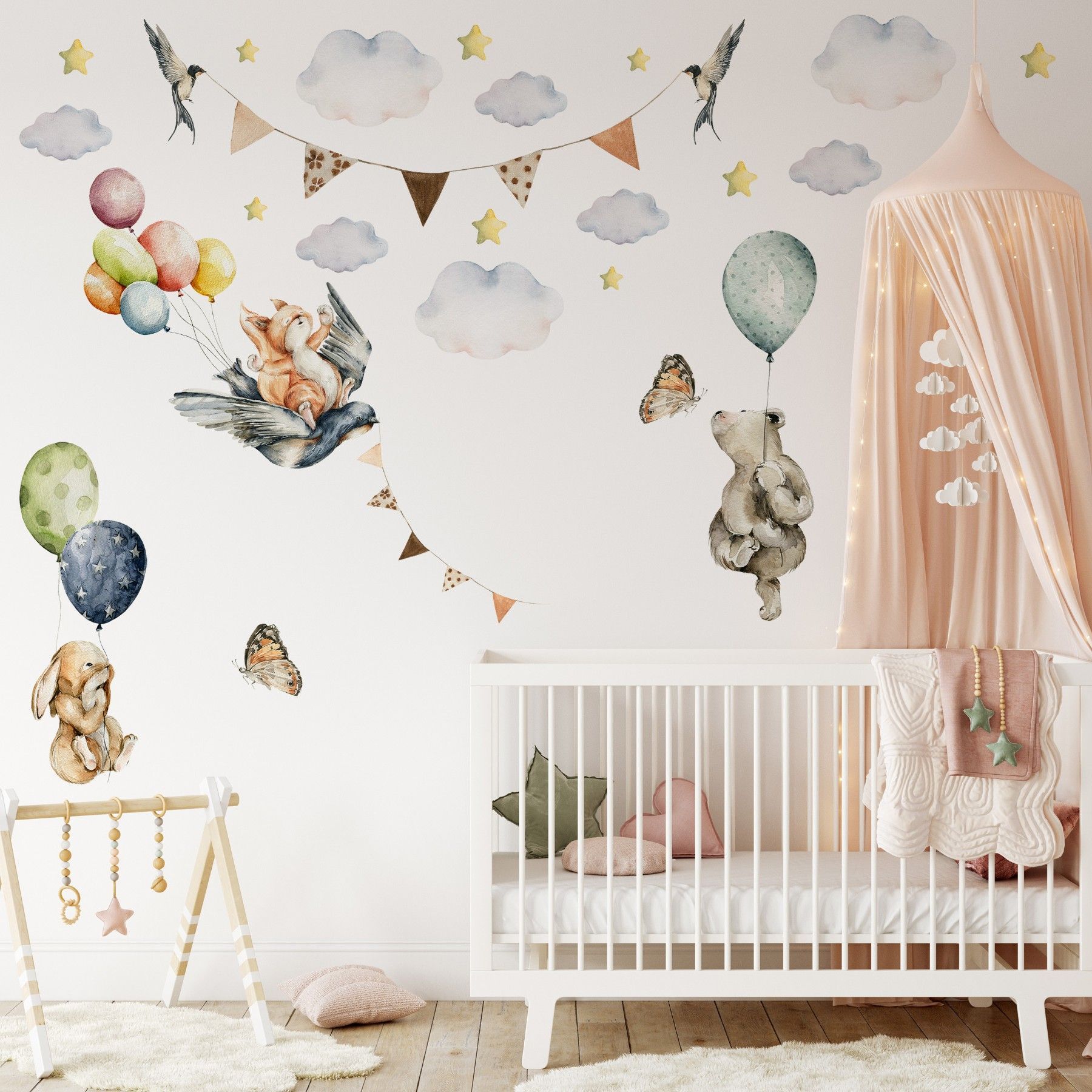 Muralo Wandtattoo Wandsticker für Kinderzimmer Ballons Sterne Wolken Tiere Aufkleber