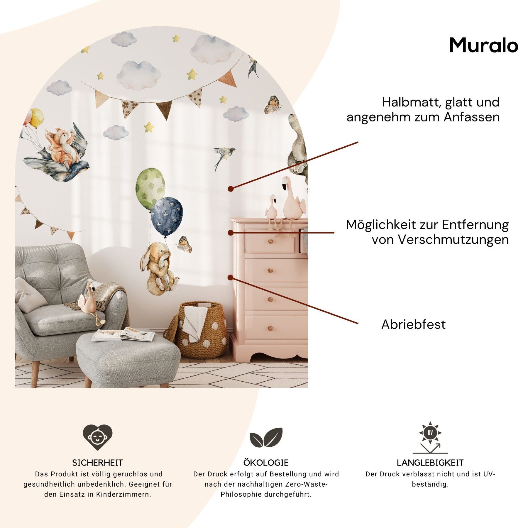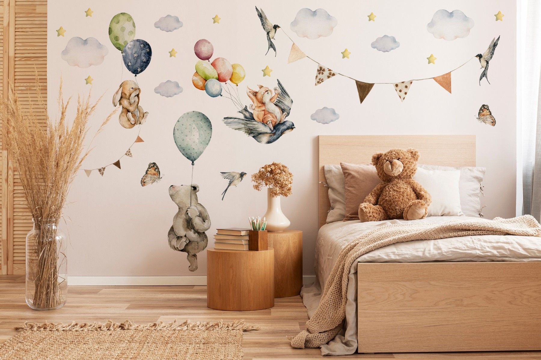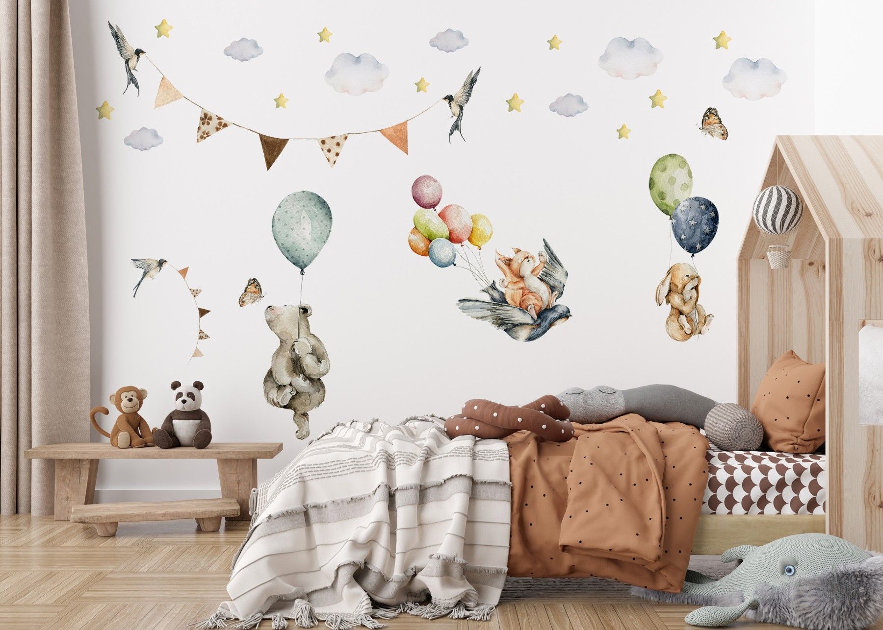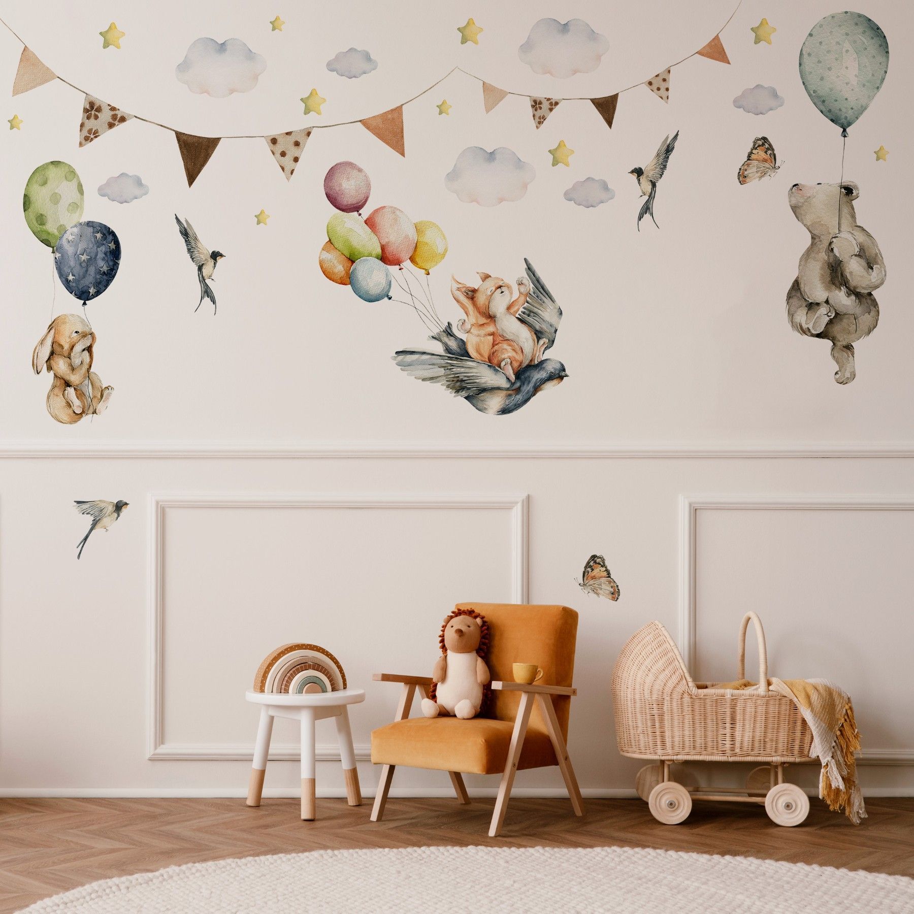 Muralo Wandtattoo Wandsticker für Kinderzimmer Ballons Sterne Wolken Tiere Aufkleber