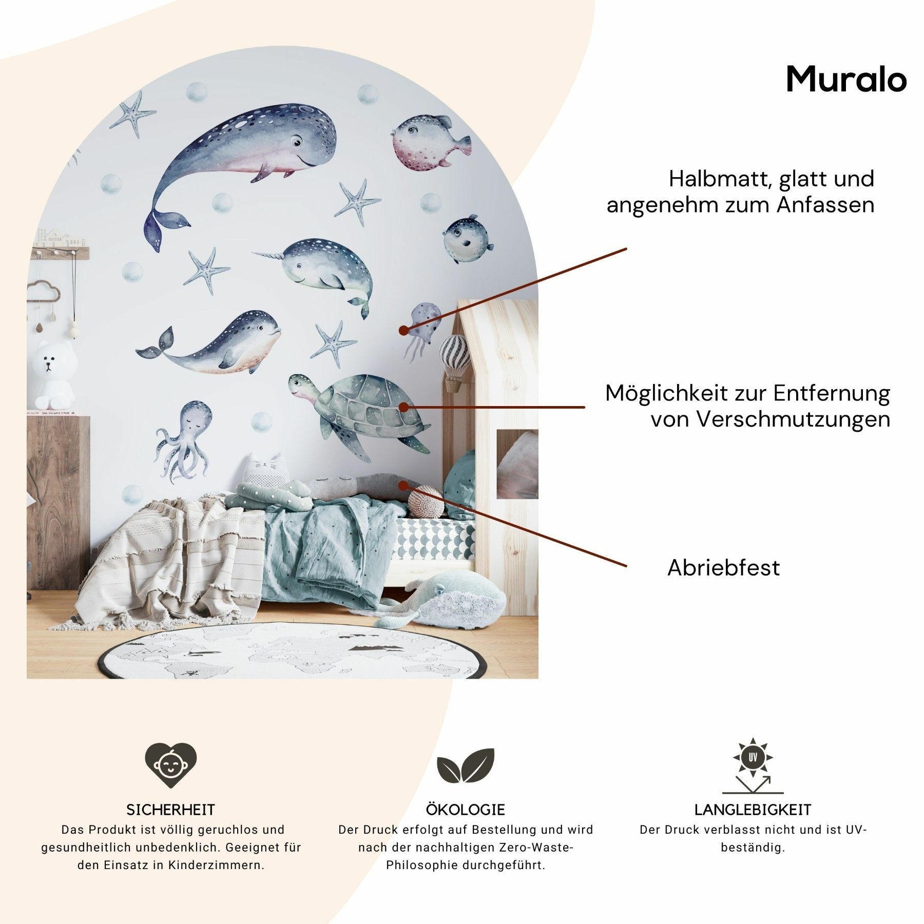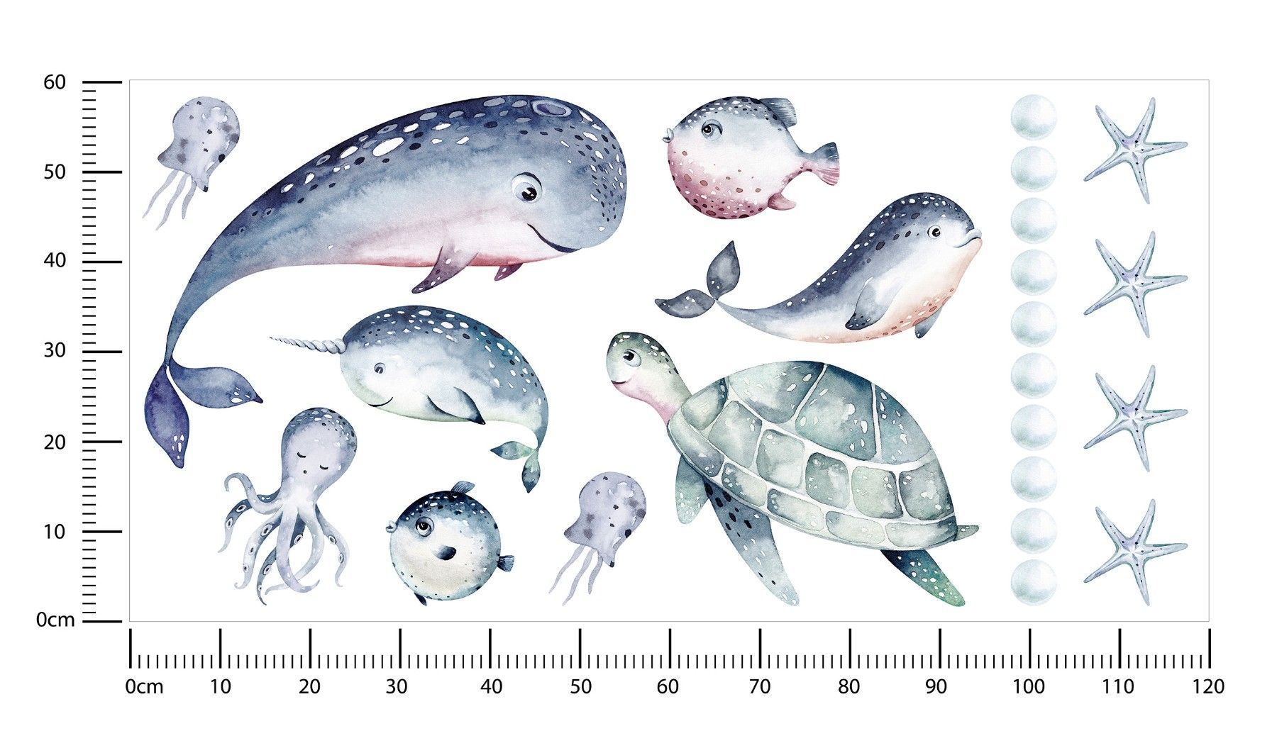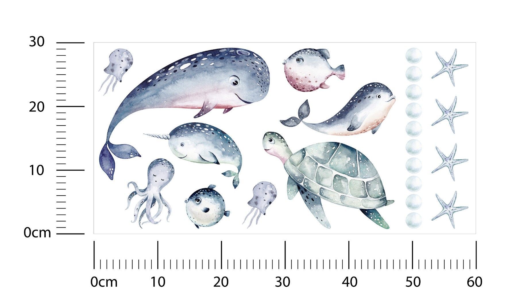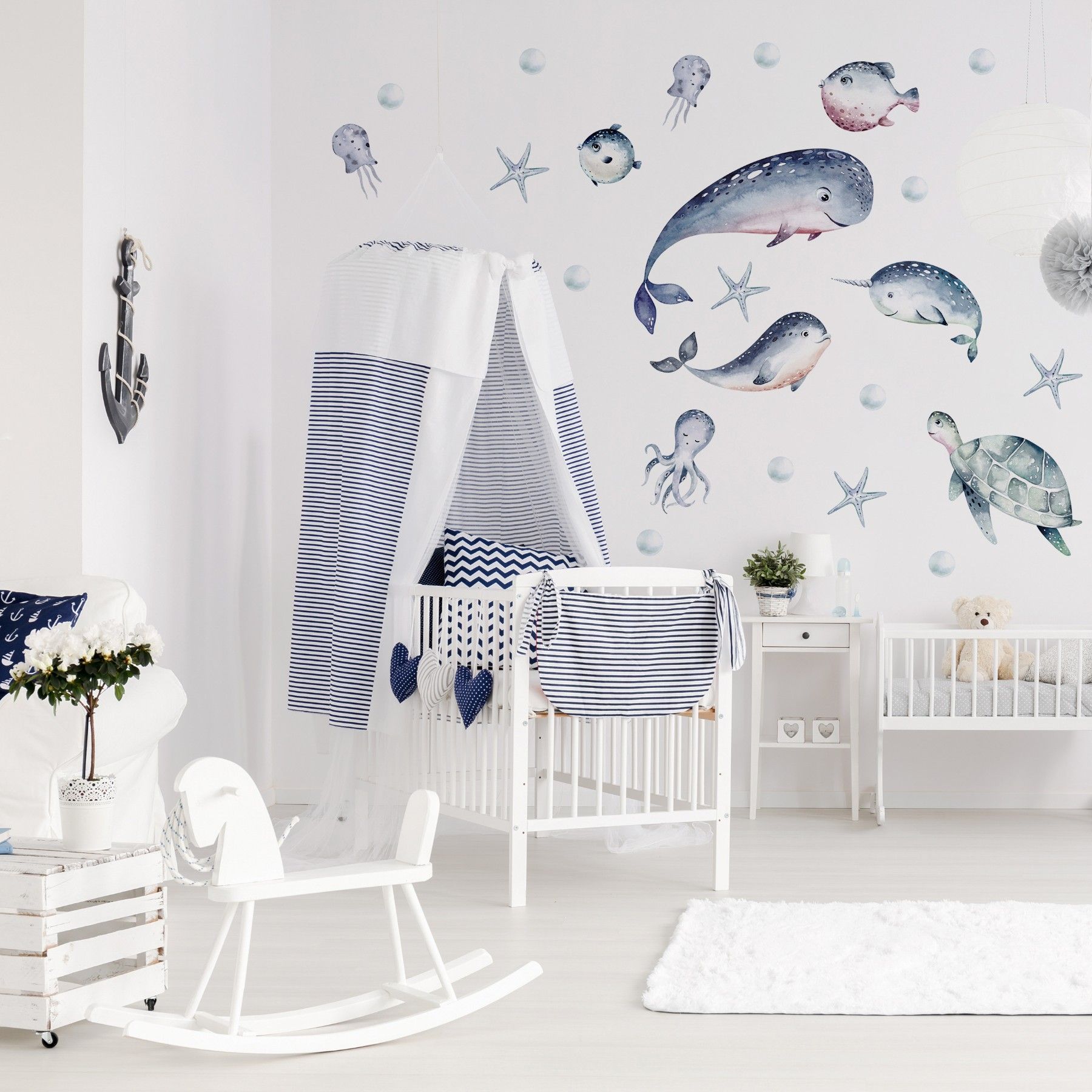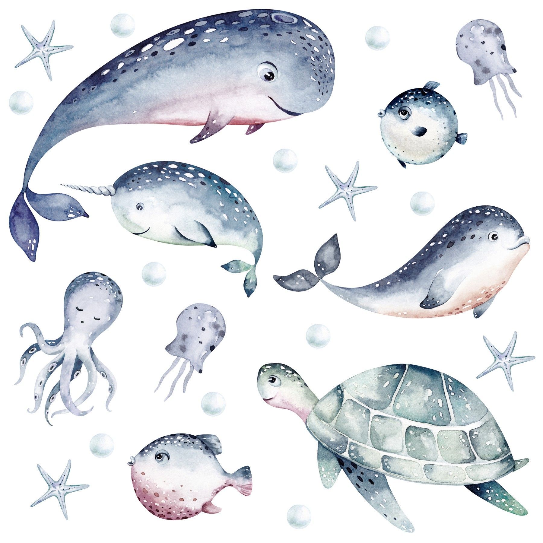 Muralo Wandtattoo Wandsticker für Kinderzimmer Meerestiere Aquarell Aufkleber
