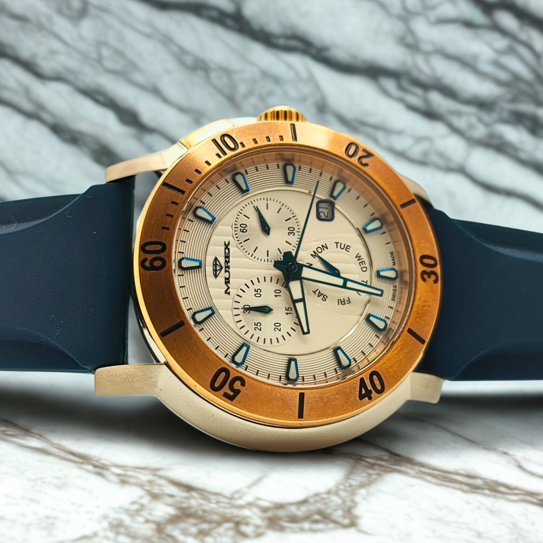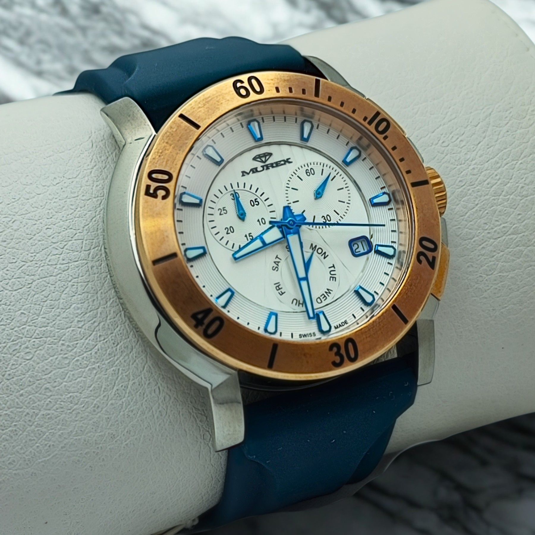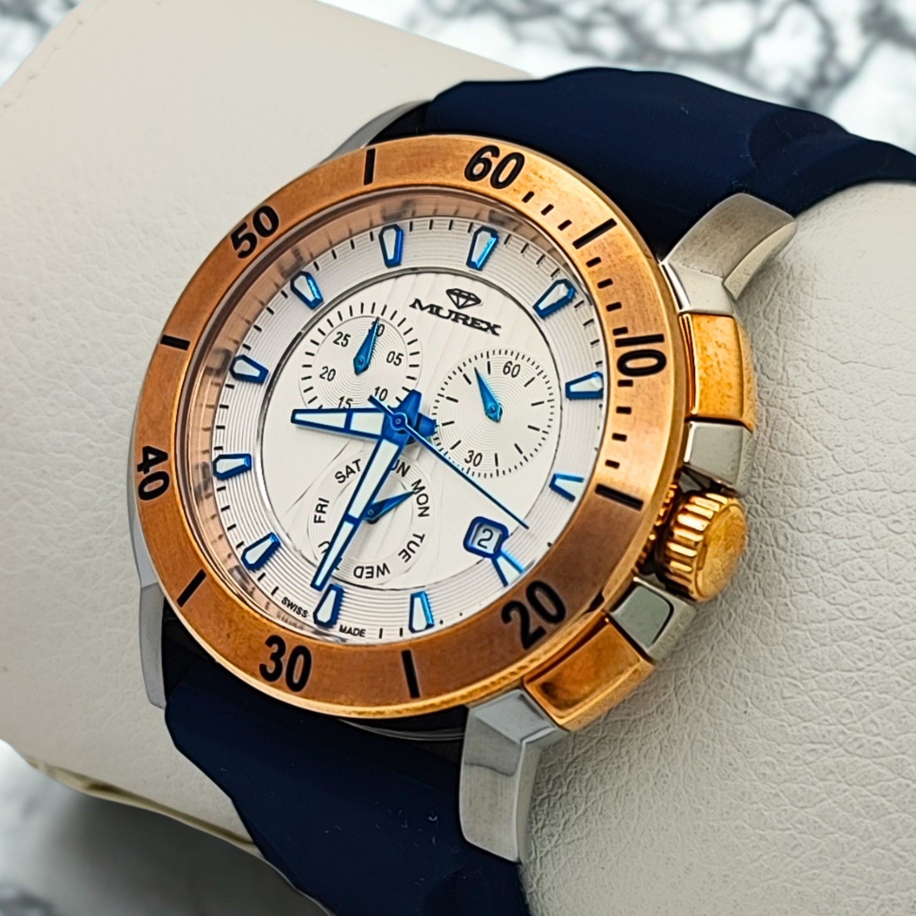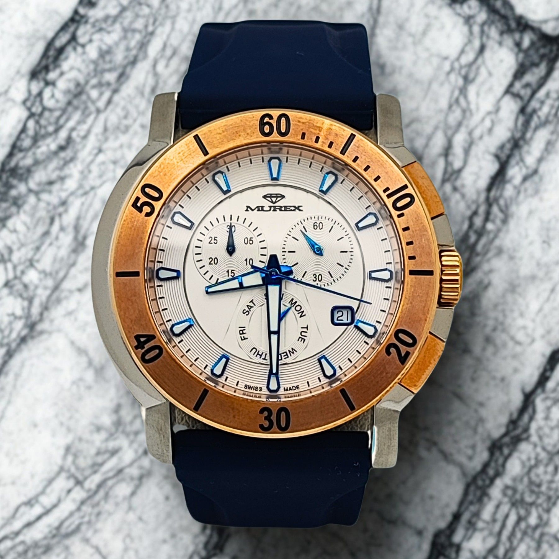 Herrenuhr - Chronograph - Murex MUC578-SRX-1 Swiss Chronograph Herrenuhr Die Murex MUC578-SRX-1 ist mehr als nur eine Uhr – sie ist ein Statement. Dieses beeindruckende Meisterwerk vereint sportliche Funktionalität mit elegantem Design und spiegelt den modernen Mann wider, der sowohl Präzision als a