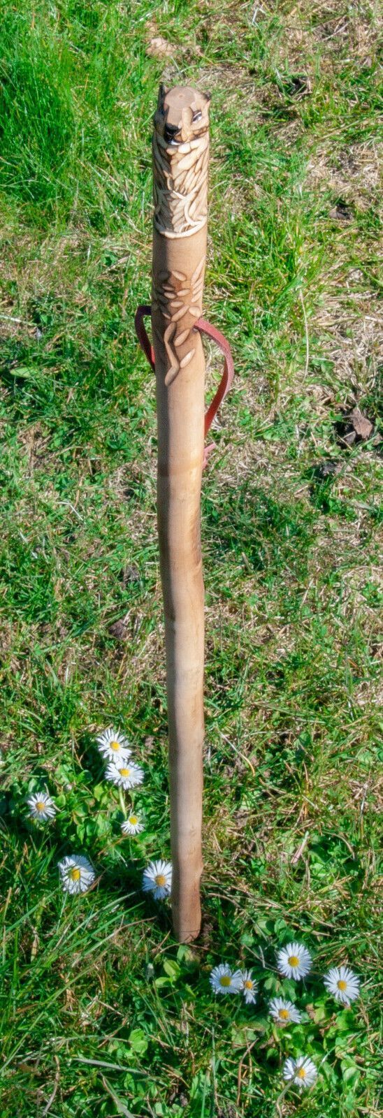 Murmeltier Wanderstock für Kinder / Geschnitzte Unikate mit Stockspitze - NEU
