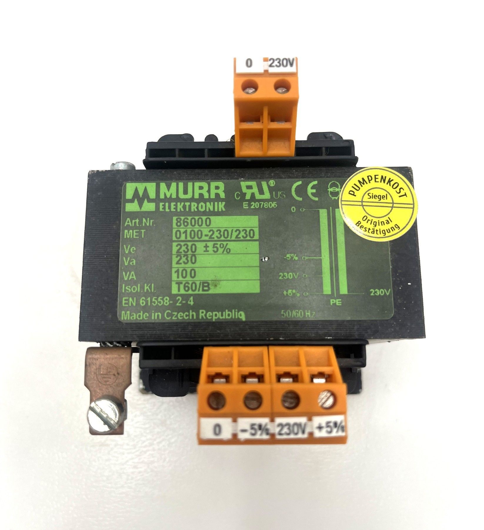 Murr Elektronik 86000 Sicherheitstrenntrafo Transformator 230V auf 230V 100VA T9/275