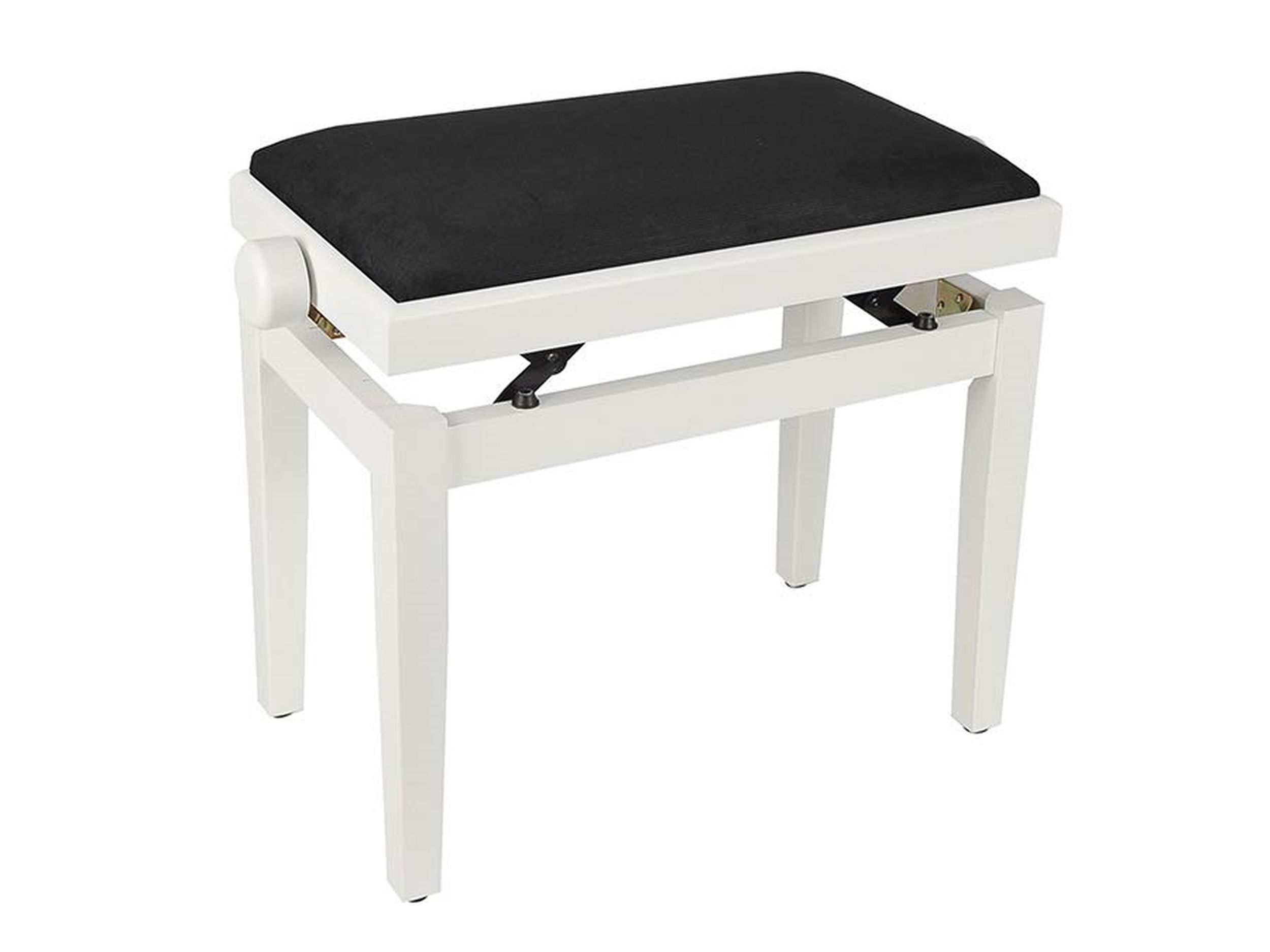 Music World Klavierbank Weiß matt Massivholz Velours Sitzbezug Sitzfläche 55,5 x32,5 cm Leichtgängige Höhenverstellung über präzise Scherenmechanik Höhe 48-56 cm
