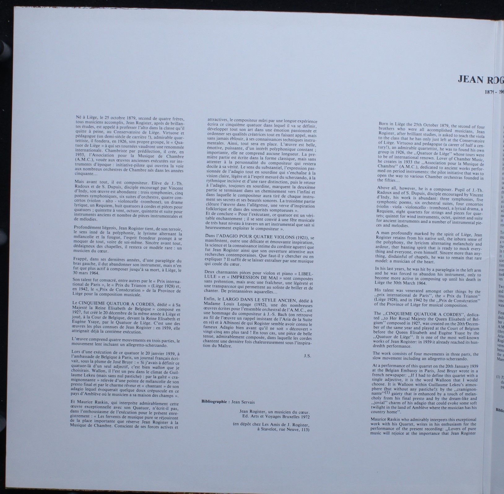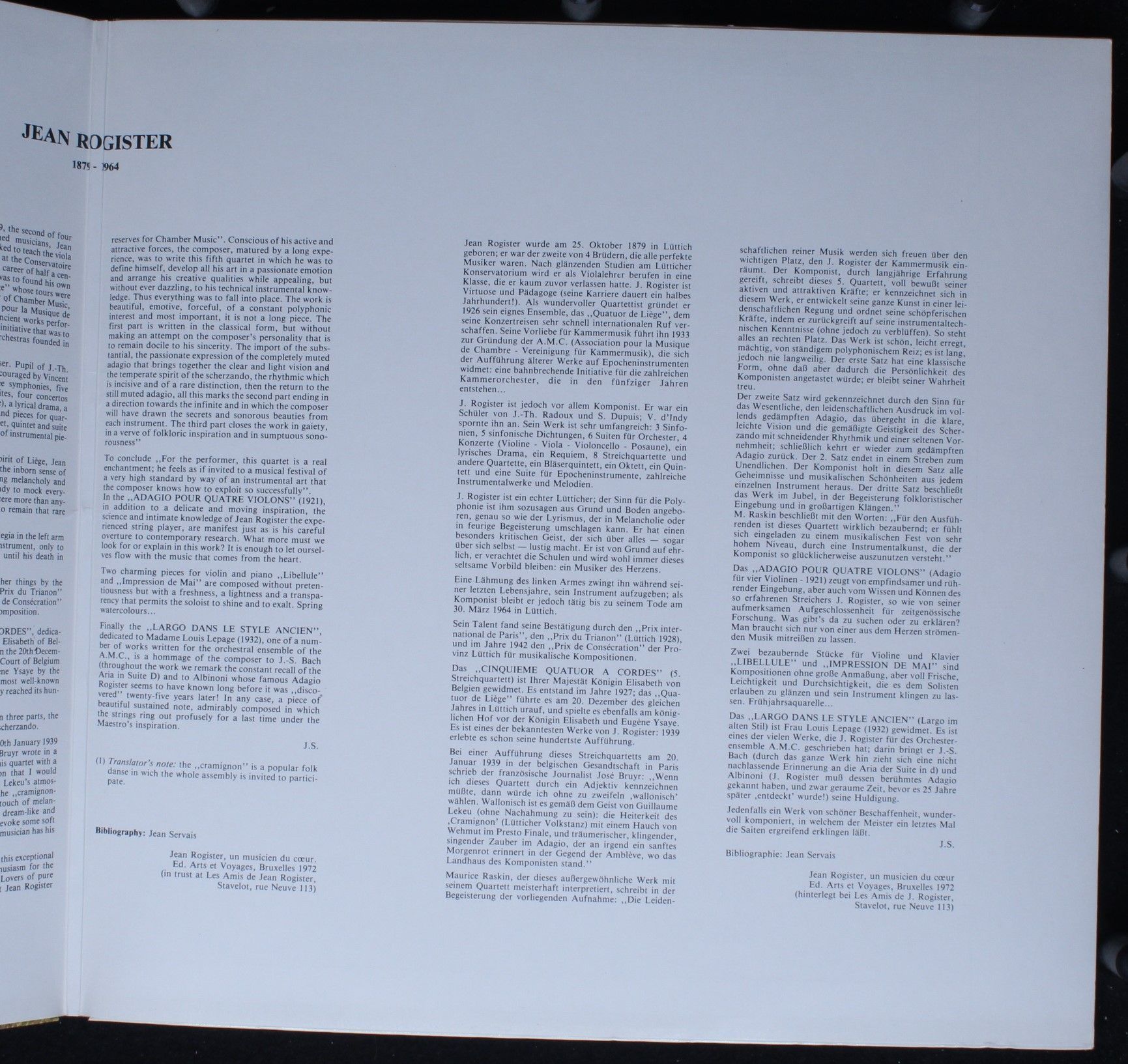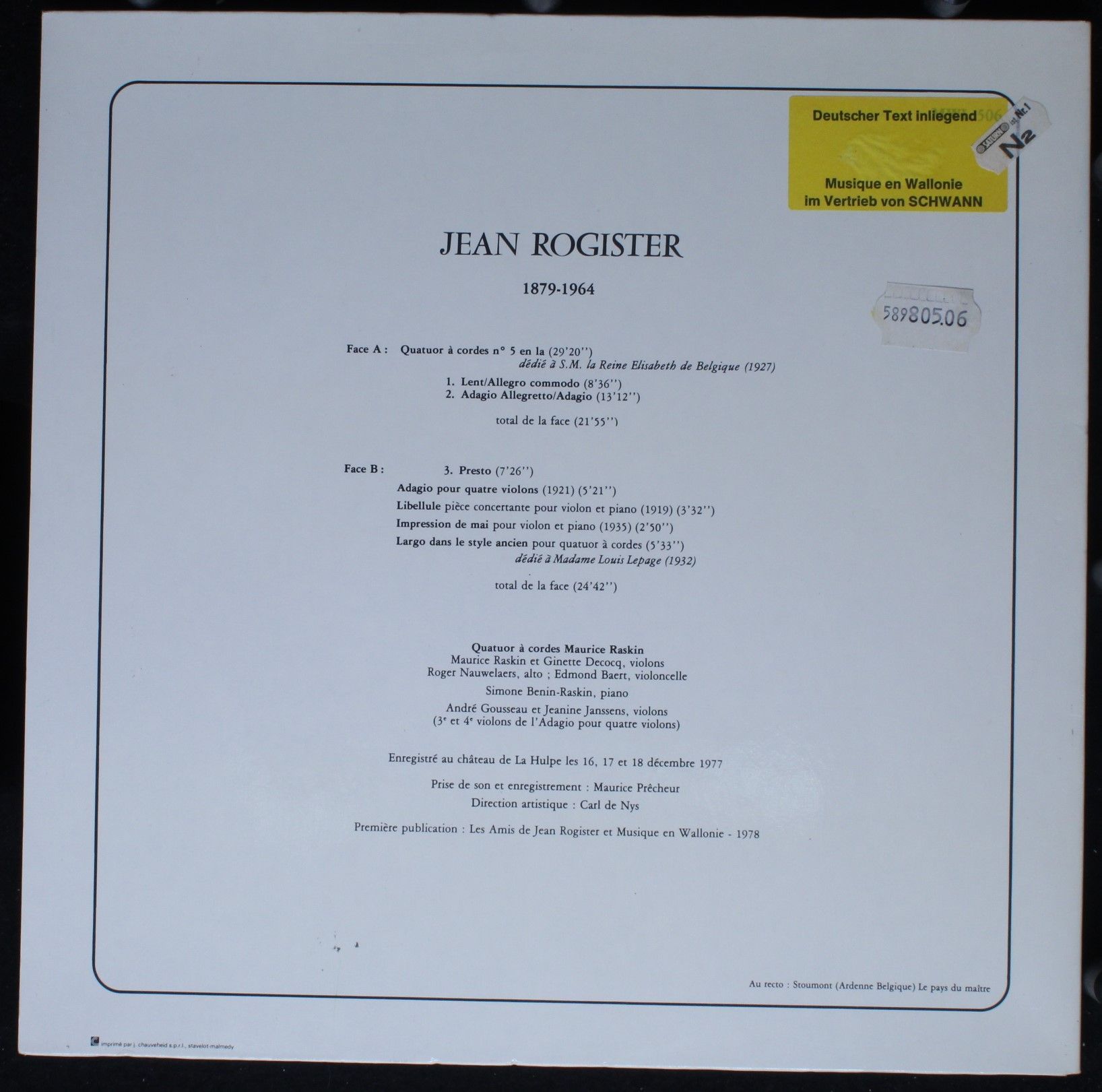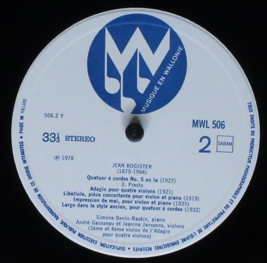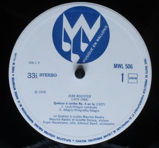 Musique en Wallonie MWL 506 - Jean Rogister - Musique Pour Cordes
