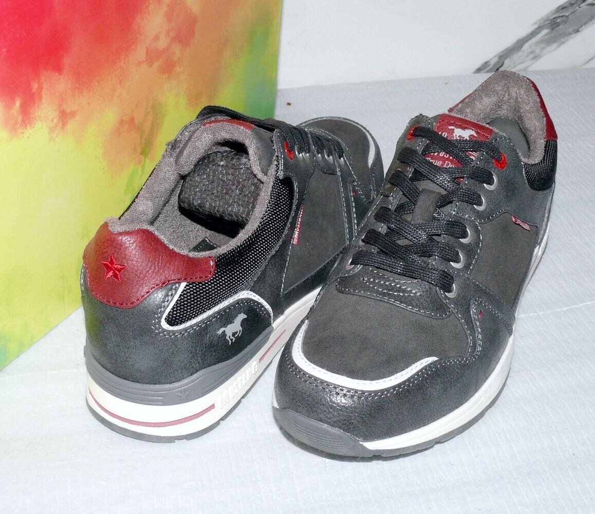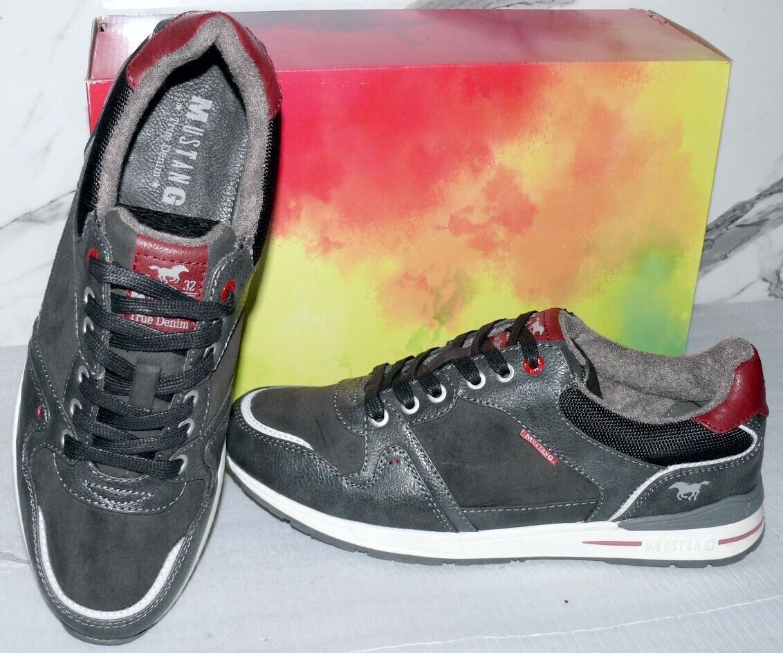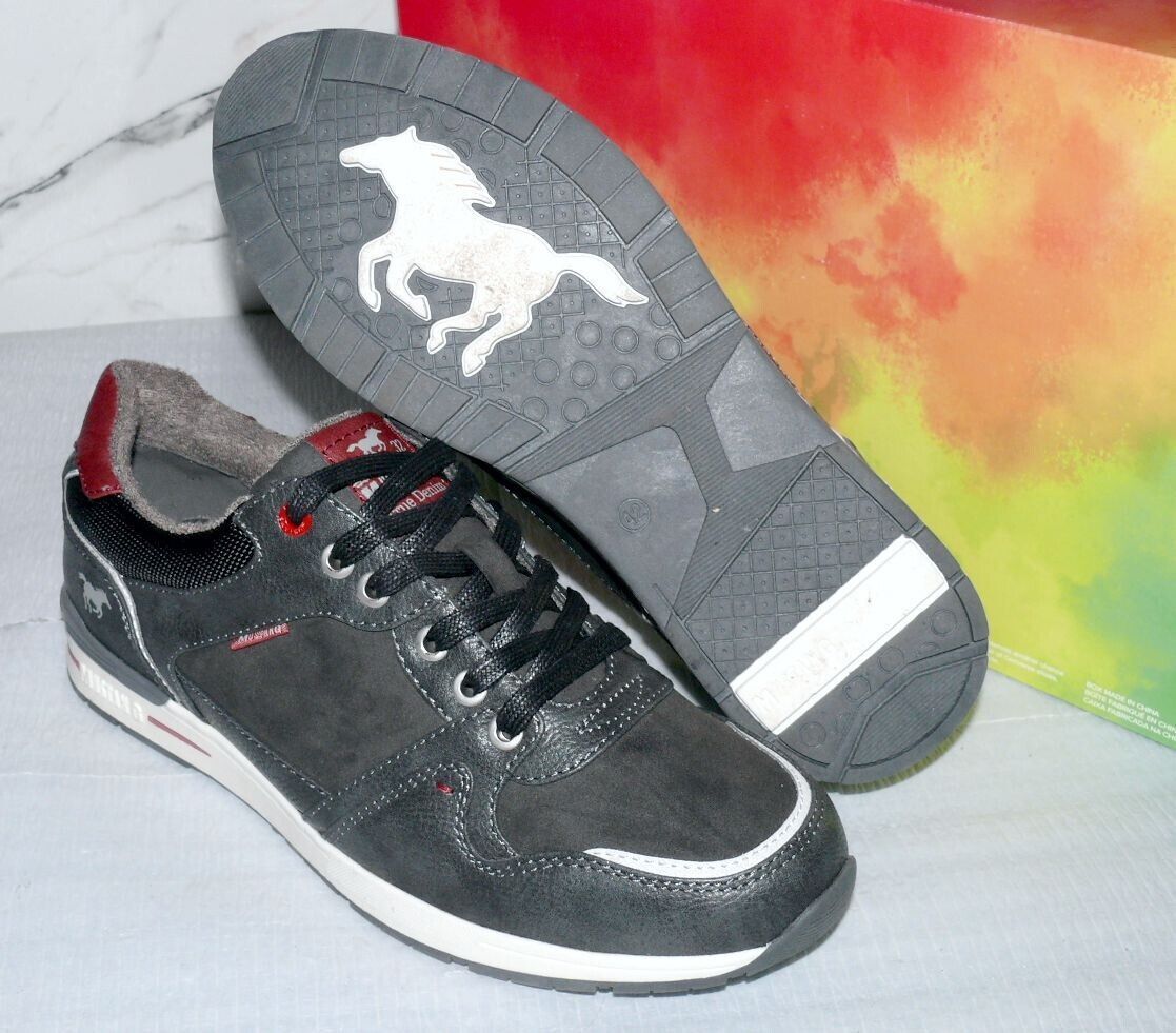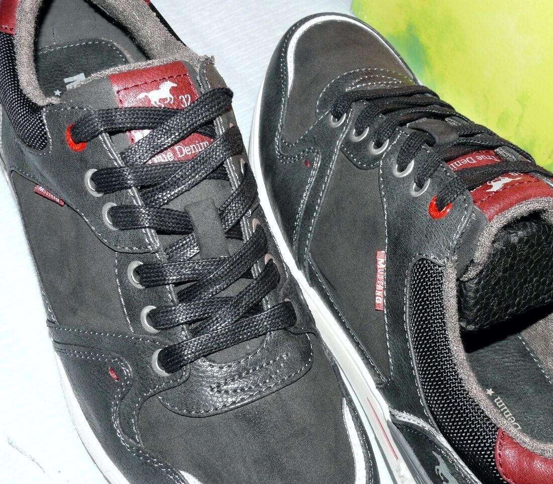 Mustang Denim Modische LOW Schnürhalb Schuhe Boots Sport Sneaker 42 Dk. Grau K34