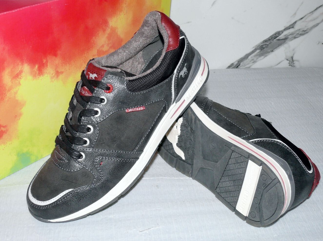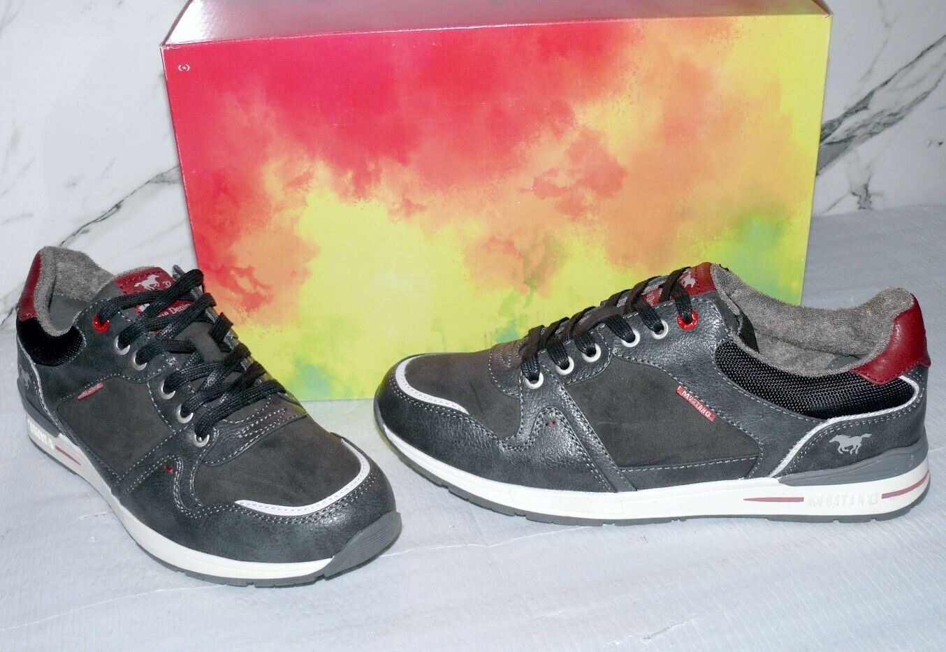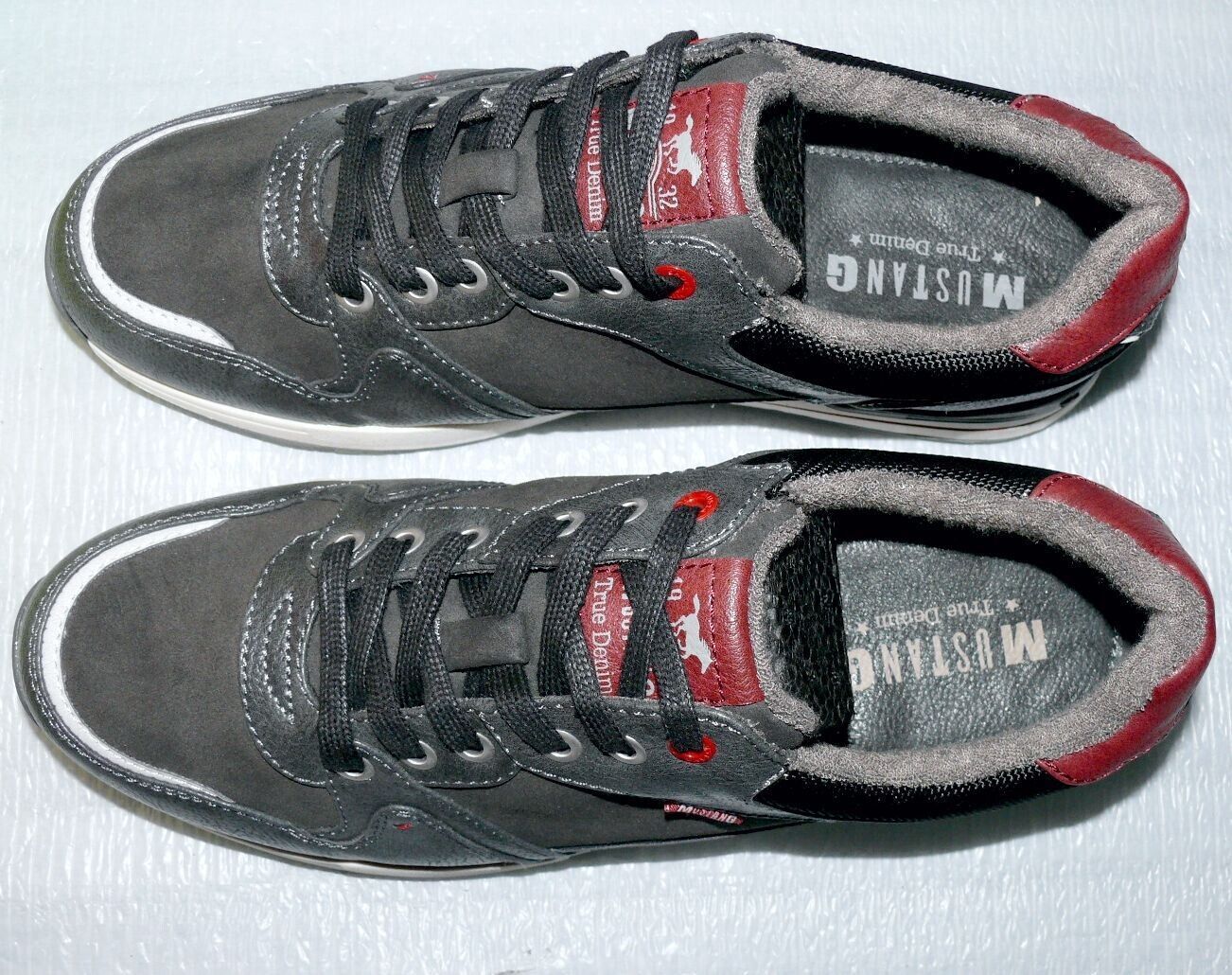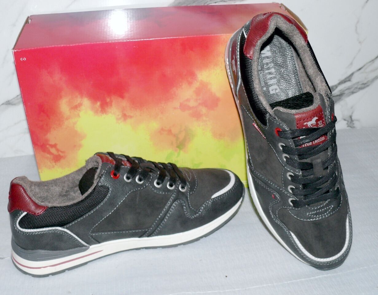 Mustang Denim Modische LOW Schnürhalb Schuhe Boots Sport Sneaker 42 Dk. Grau K34