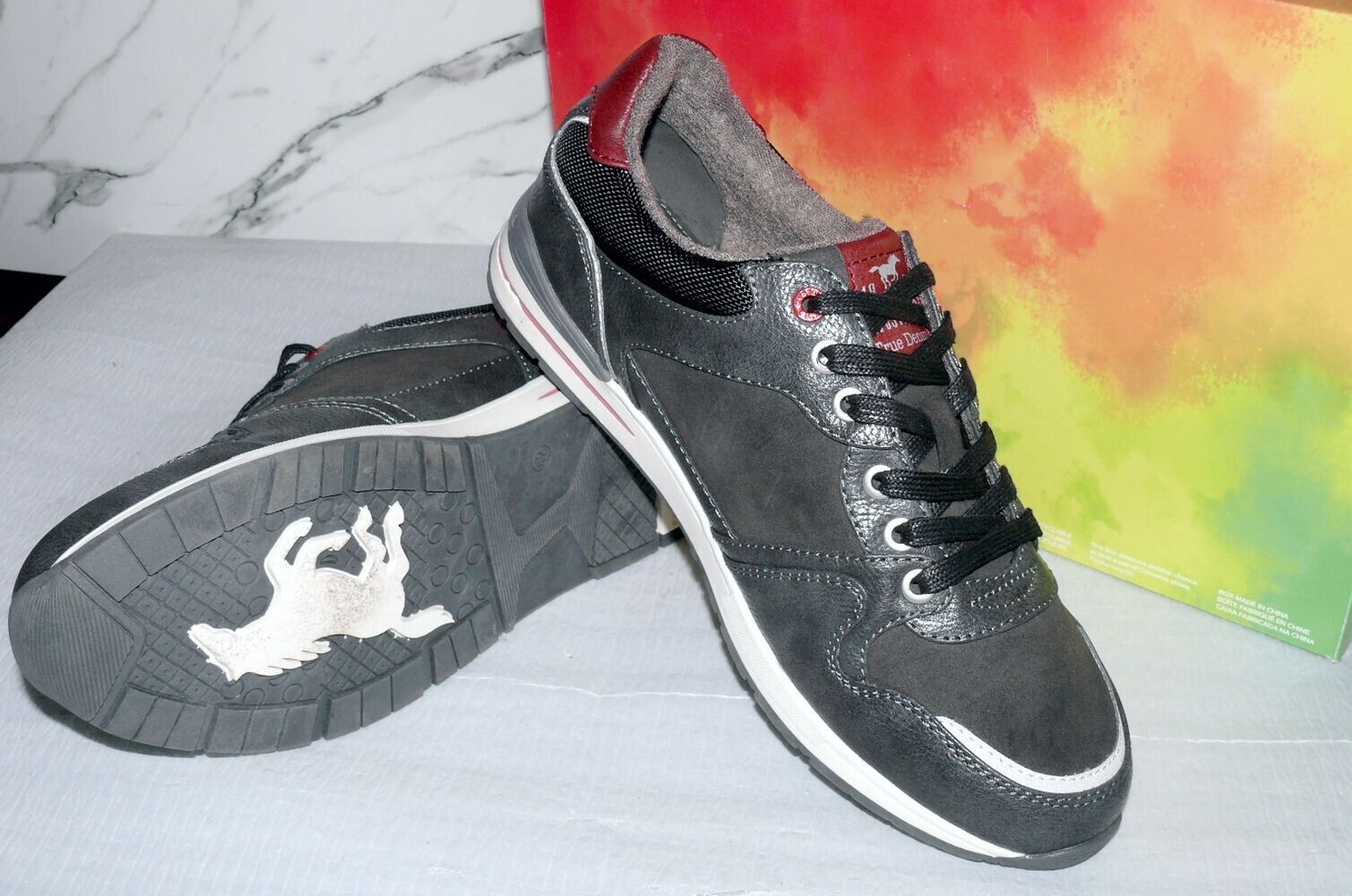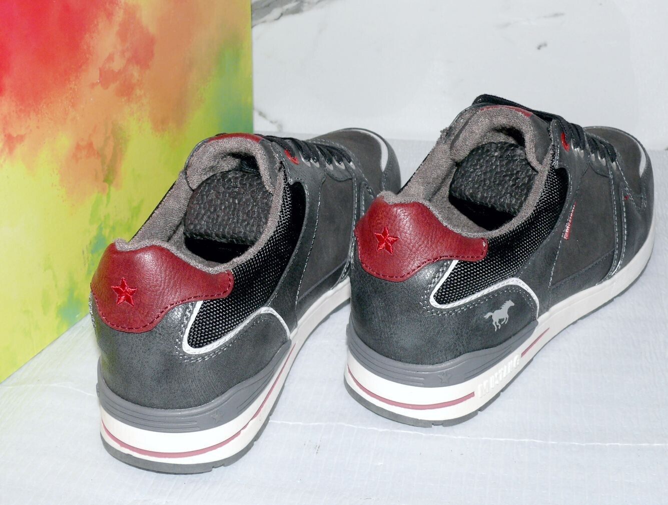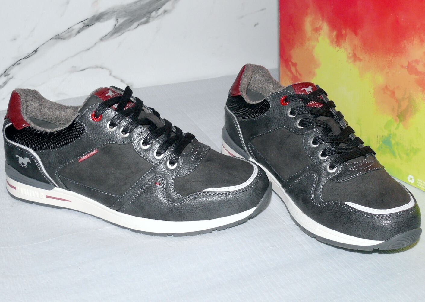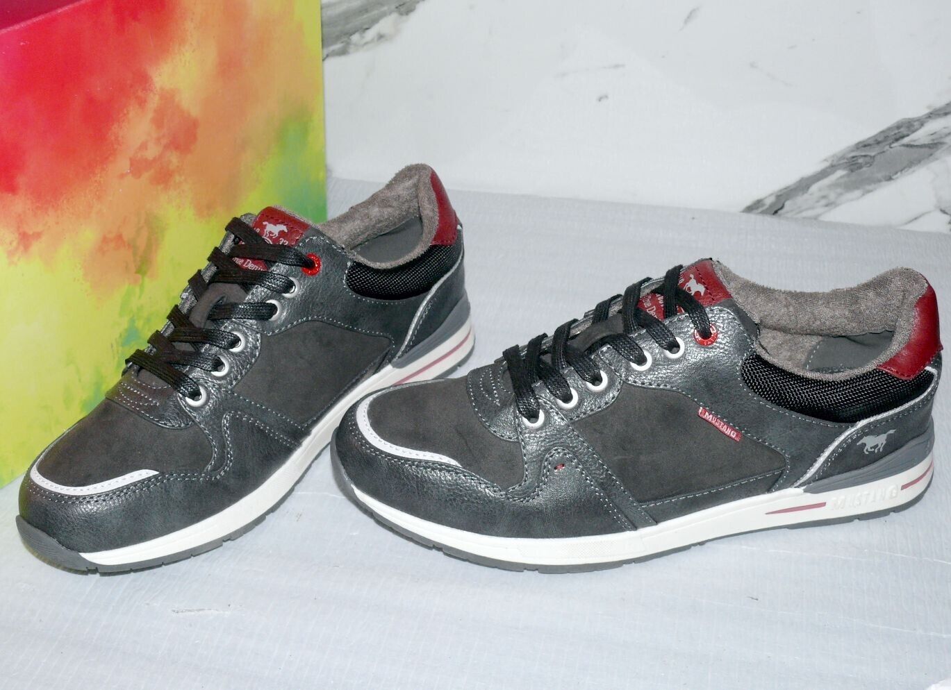 Mustang Denim Modische LOW Schnürhalb Schuhe Boots Sport Sneaker 42 Dk. Grau K34