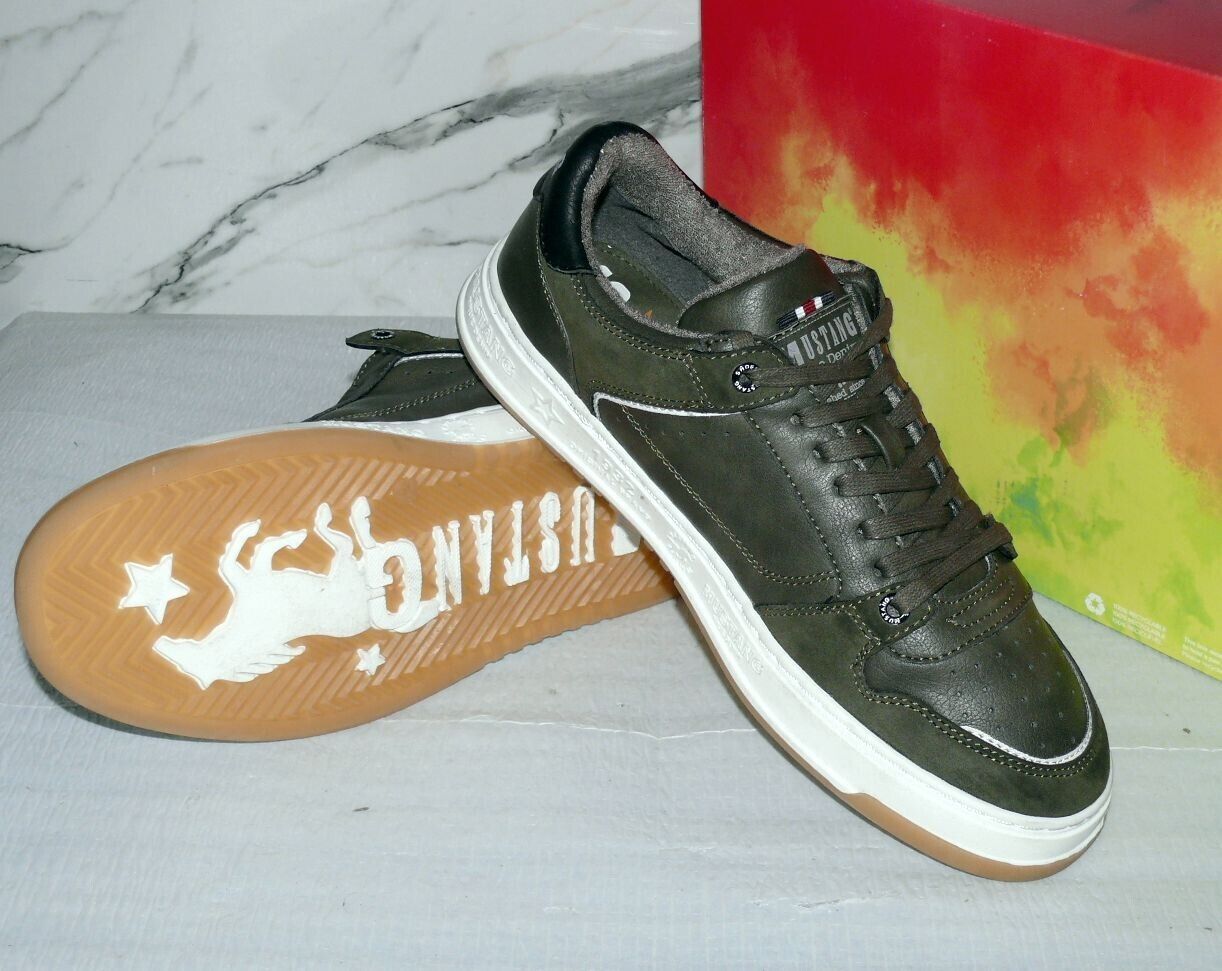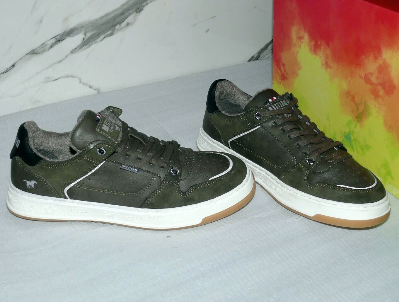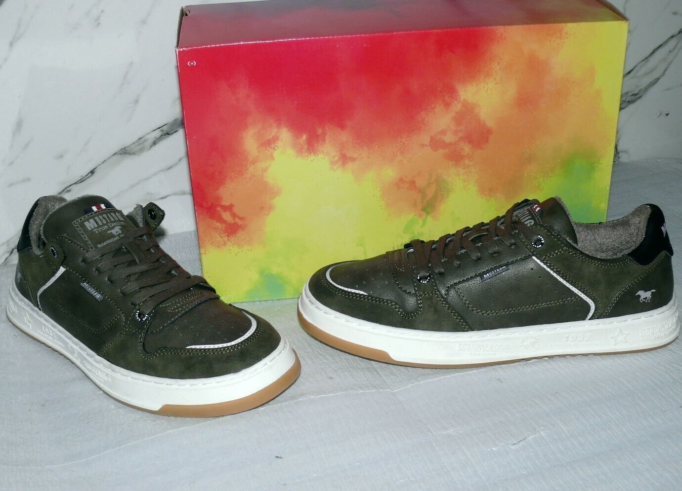 Mustang Denim Modischer LOW Schnürhalb Schuhe Boots Sport Sneaker 42 OLIV K16