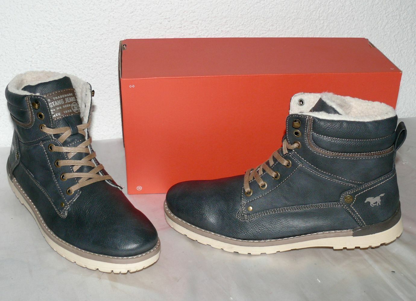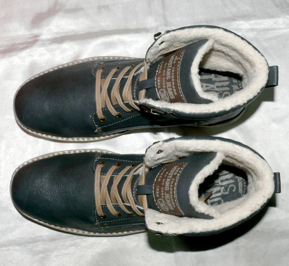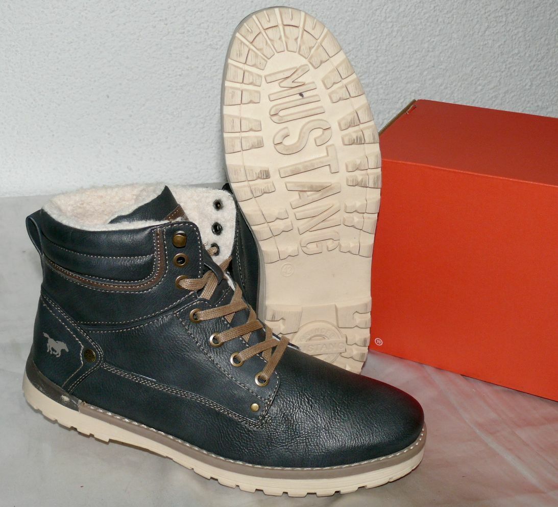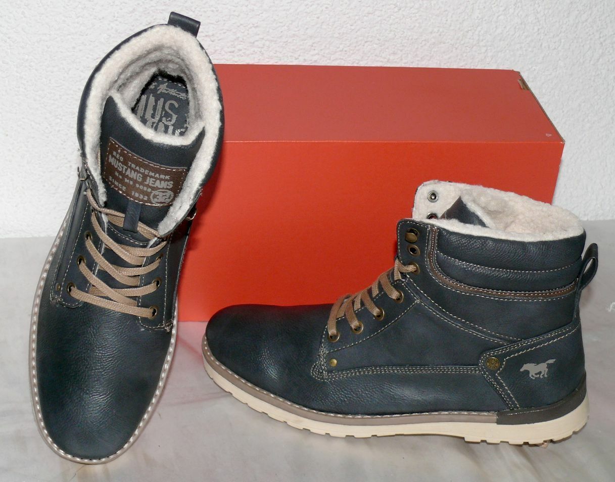 Mustang Denim Warme Herbst Winter Schuhe Boots Stiefel Futter 42 Navy Grau N35