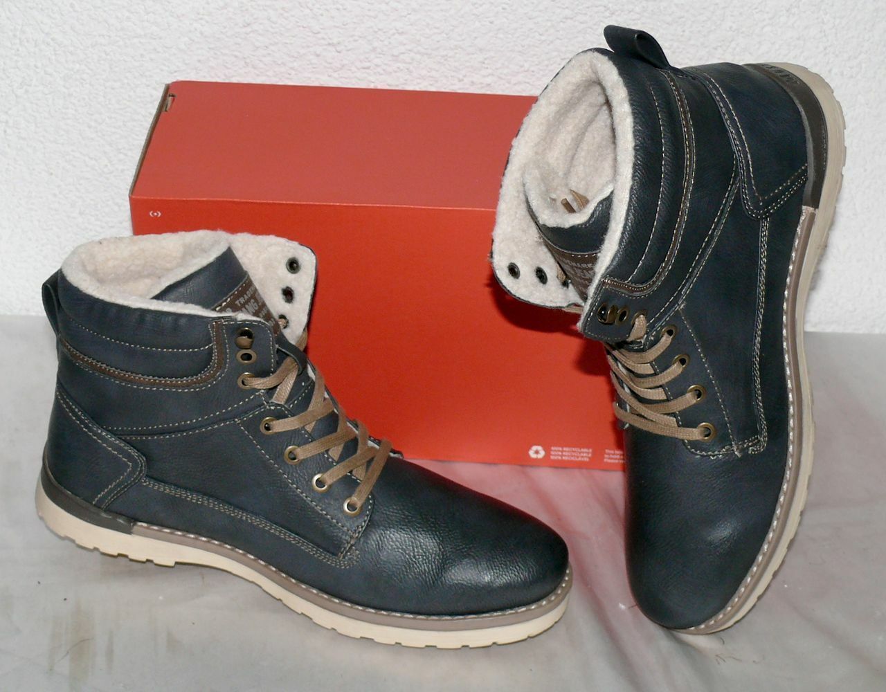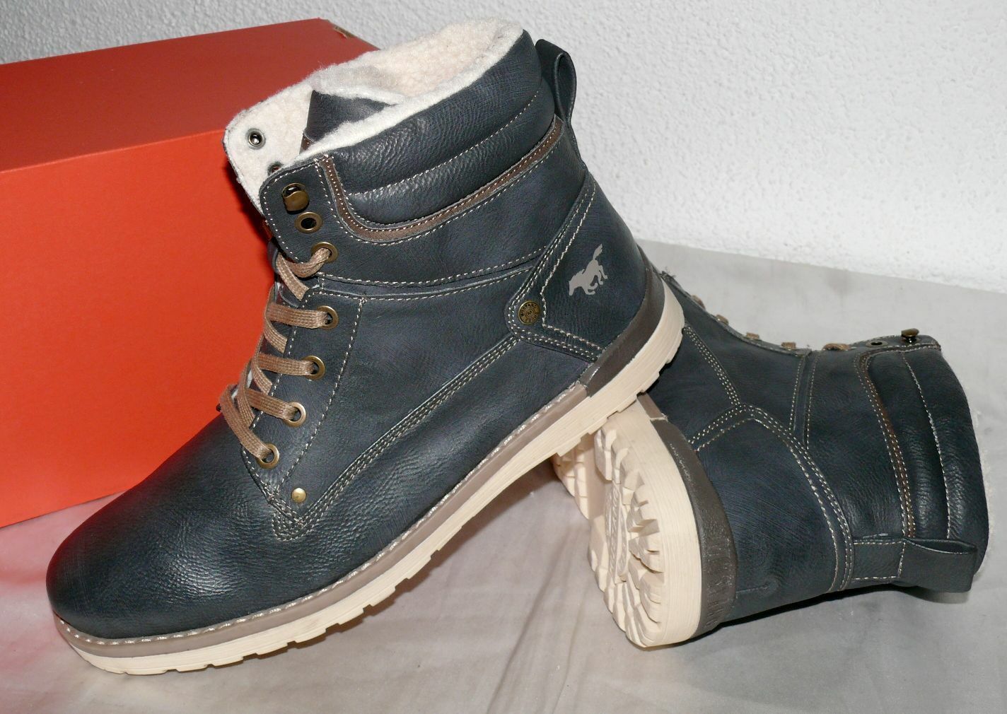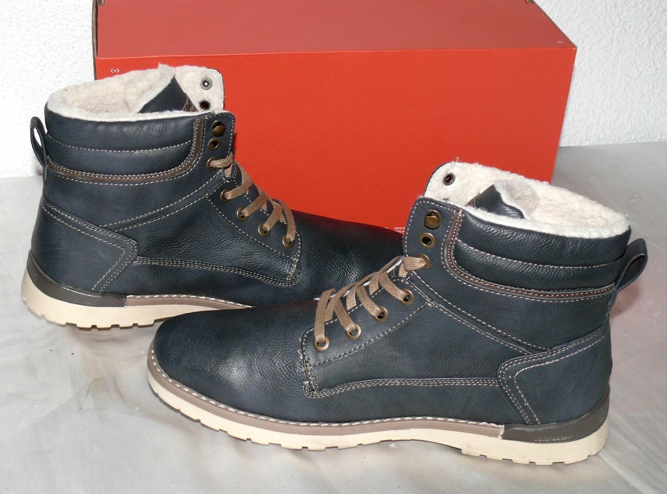 Mustang Denim Warme Herbst Winter Schuhe Boots Stiefel Futter 42 Navy Grau N35