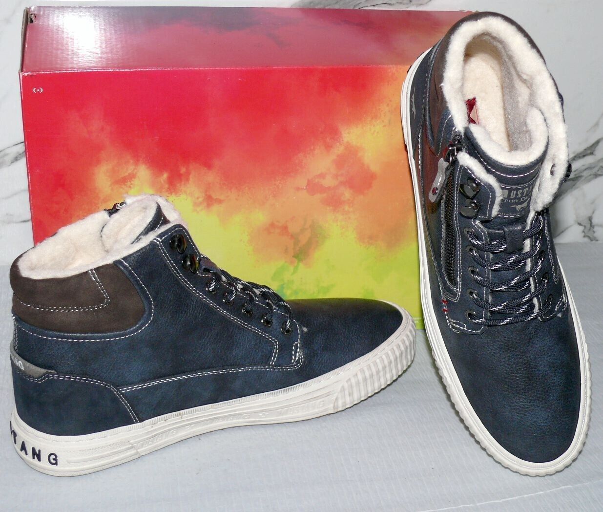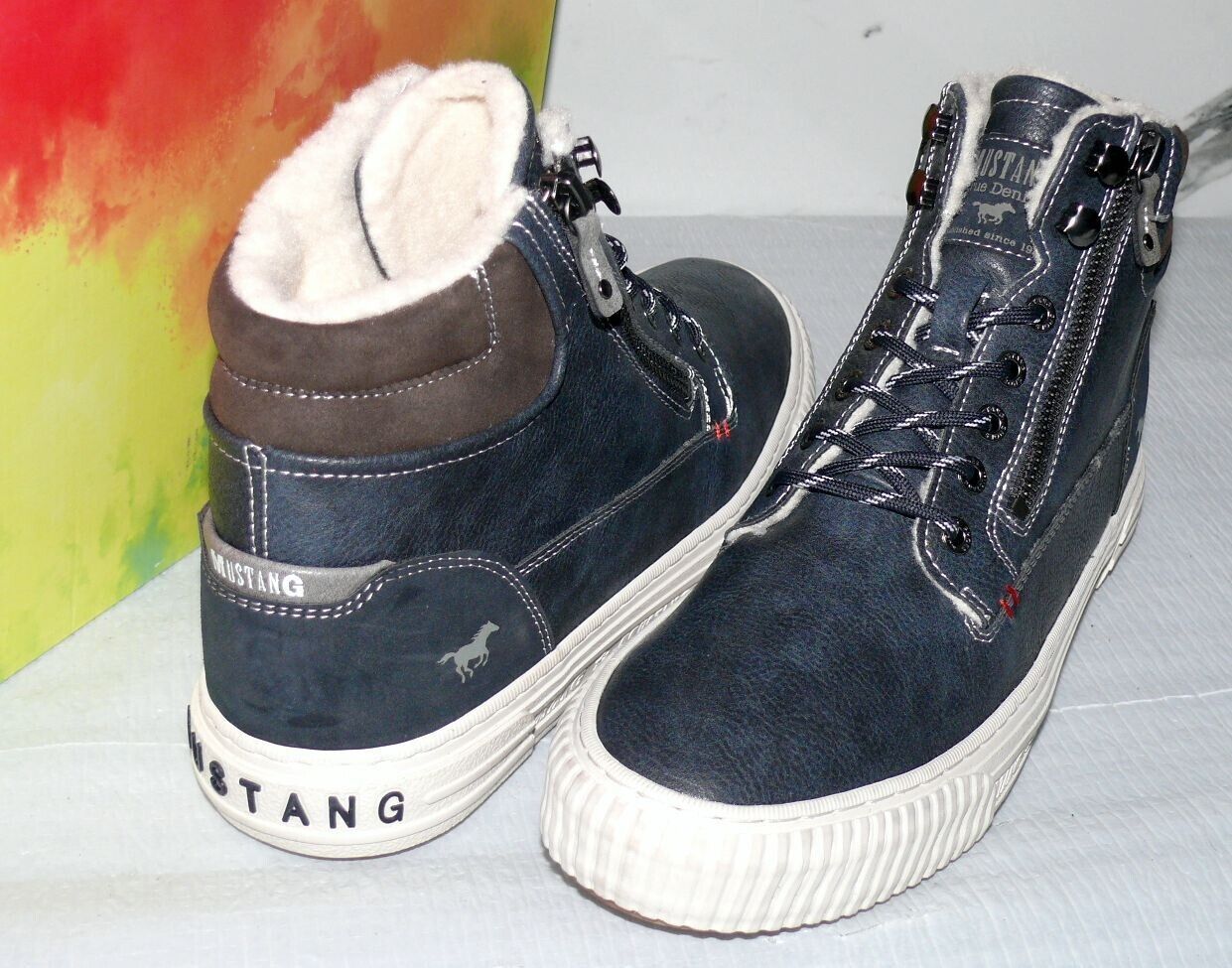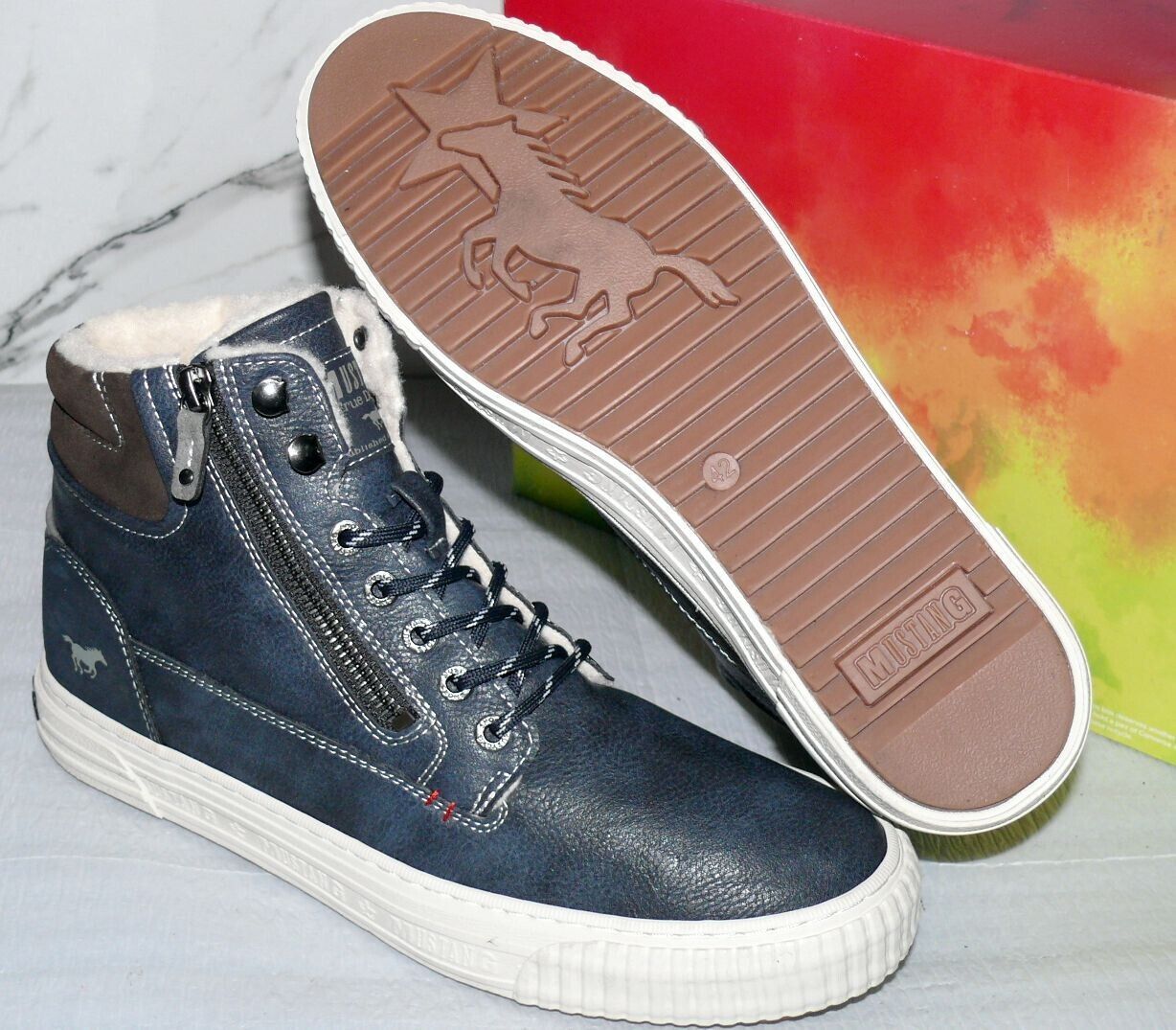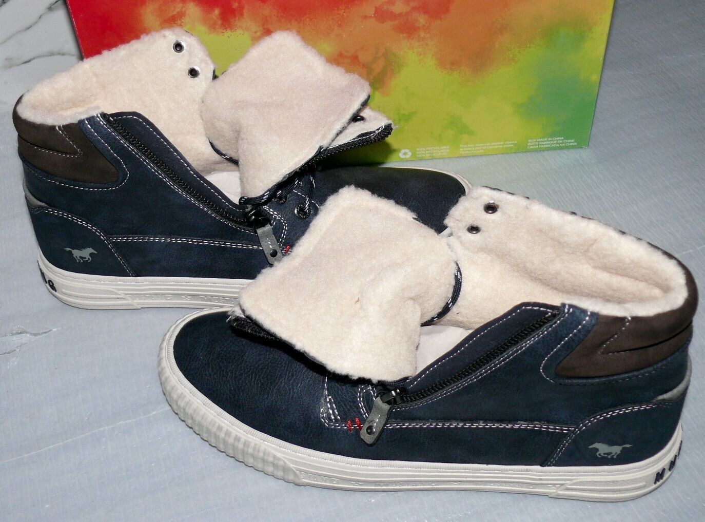 Mustang Denim Warme ZIP Herbst Winter Schuhe Boots Hi Cut Futter 42 Navy NAT D67