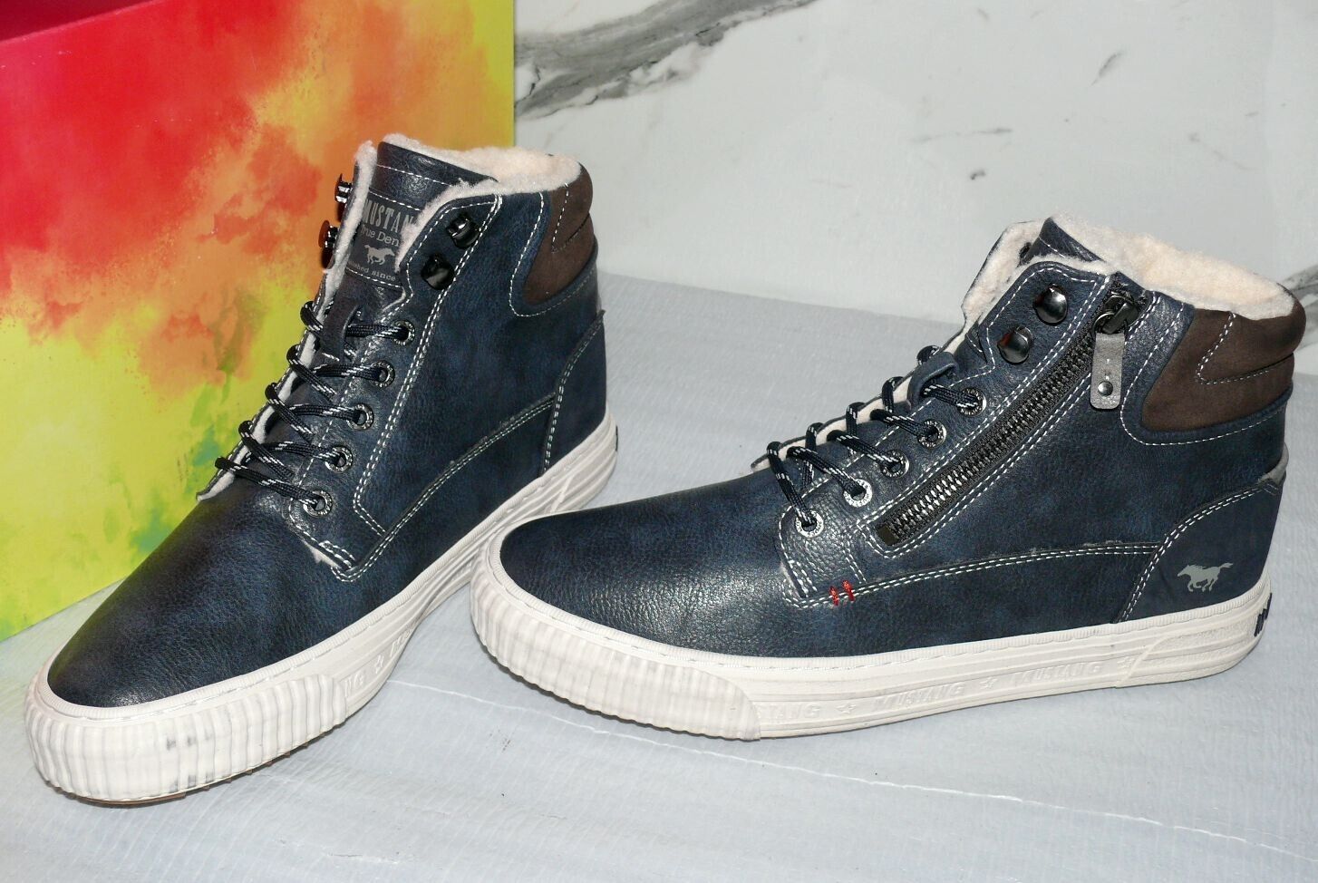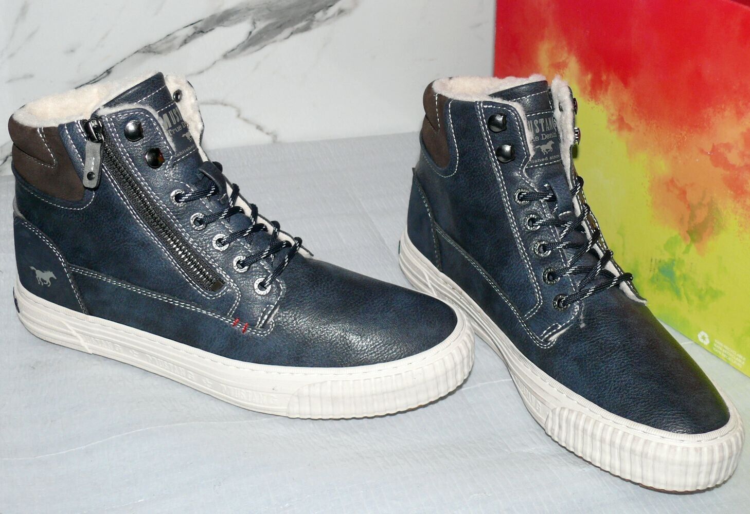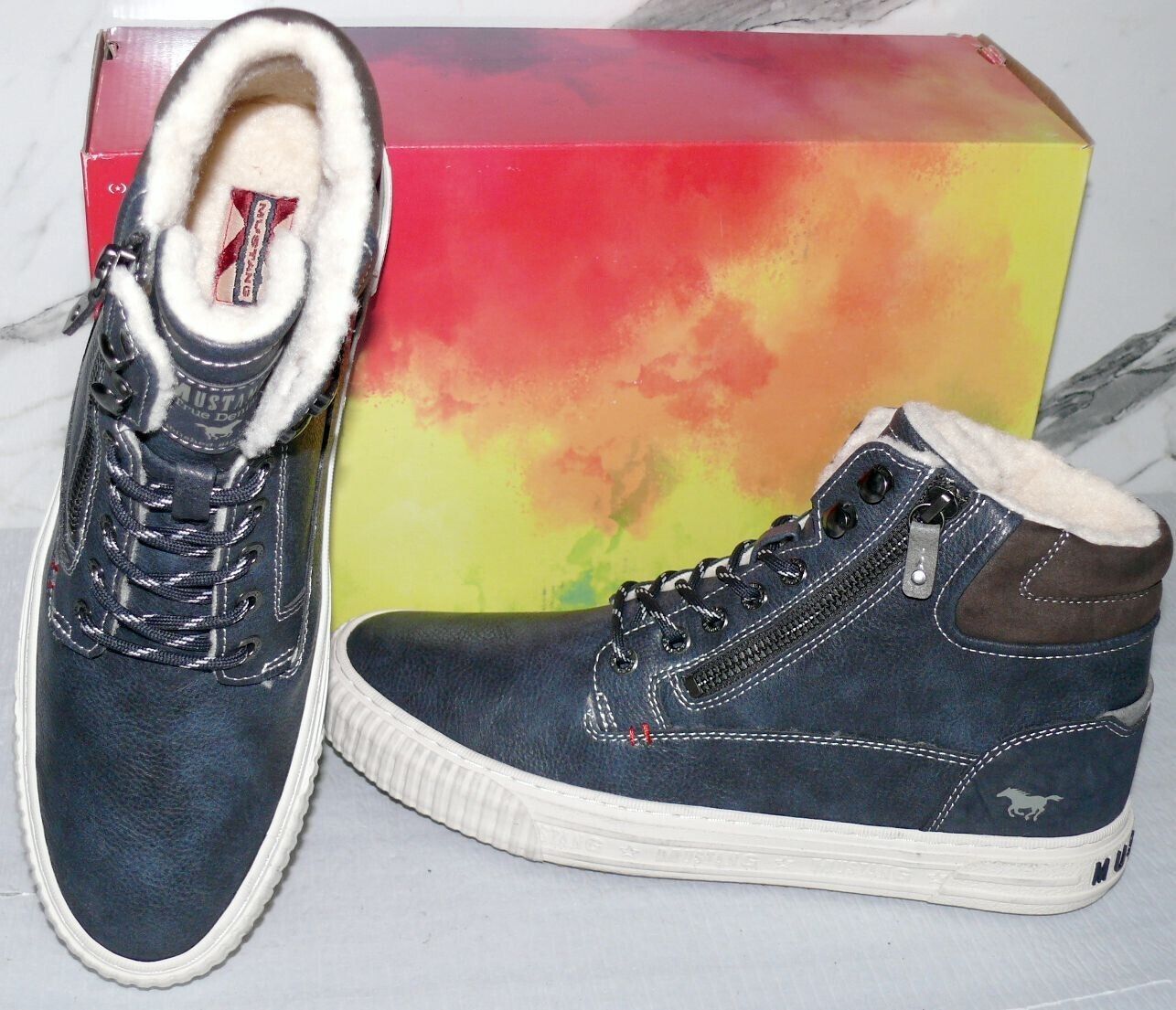 Mustang Denim Warme ZIP Herbst Winter Schuhe Boots Hi Cut Futter 42 Navy NAT D67