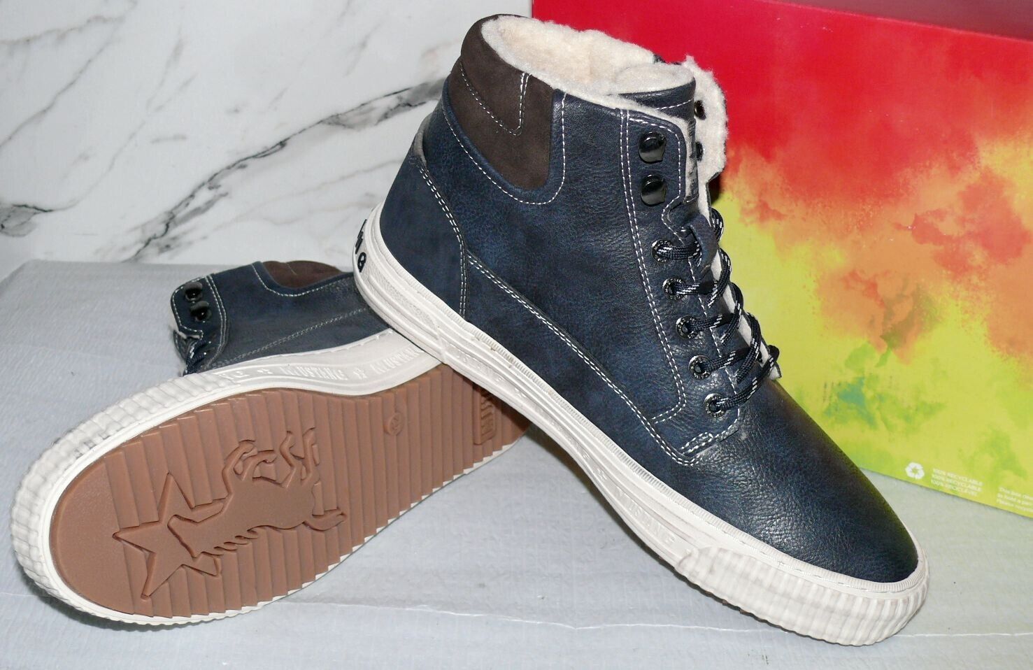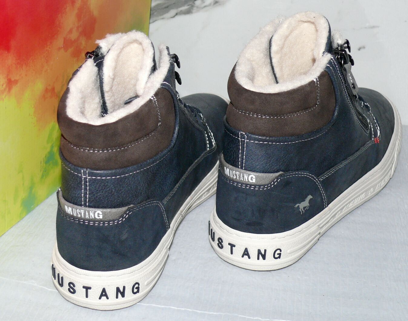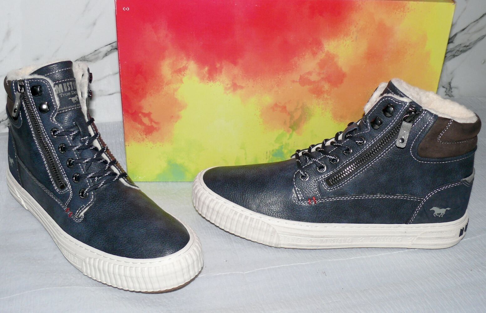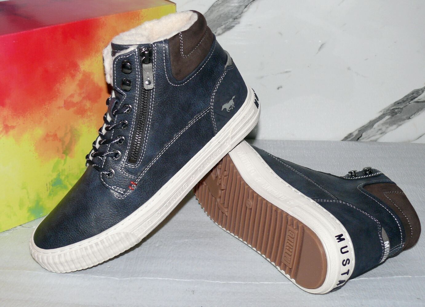 Mustang Denim Warme ZIP Herbst Winter Schuhe Boots Hi Cut Futter 42 Navy NAT D67