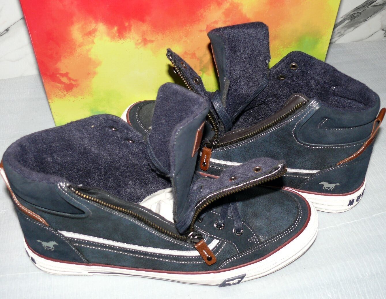 Mustang Denim Warme ZIP Herbst Winter Schuhe Boots Stiefel Futter 42 Navy D85