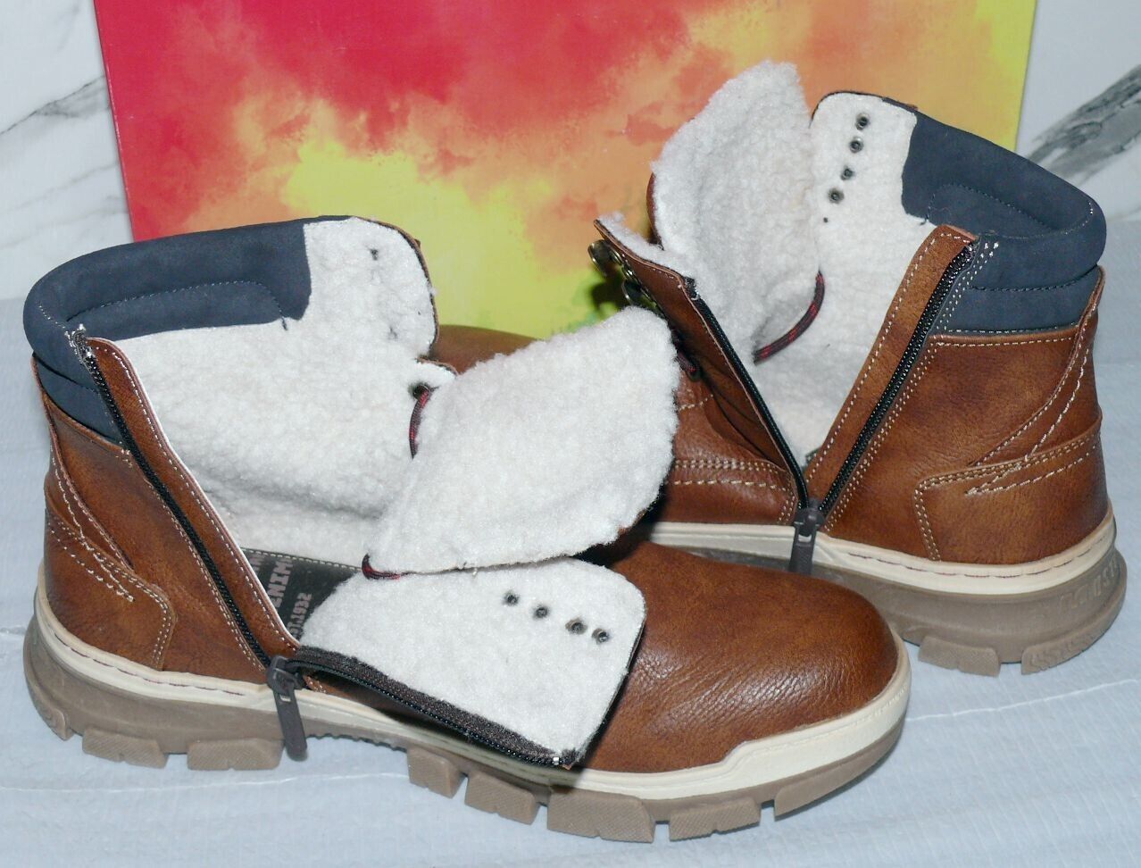 Mustang Denim Warme ZIP Herbst Winter Schuhe Boots Stiefel Futter 42 Braun D42