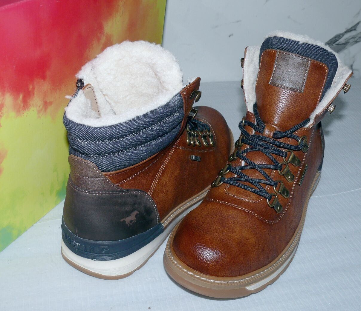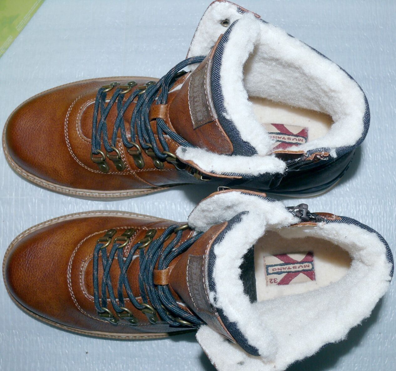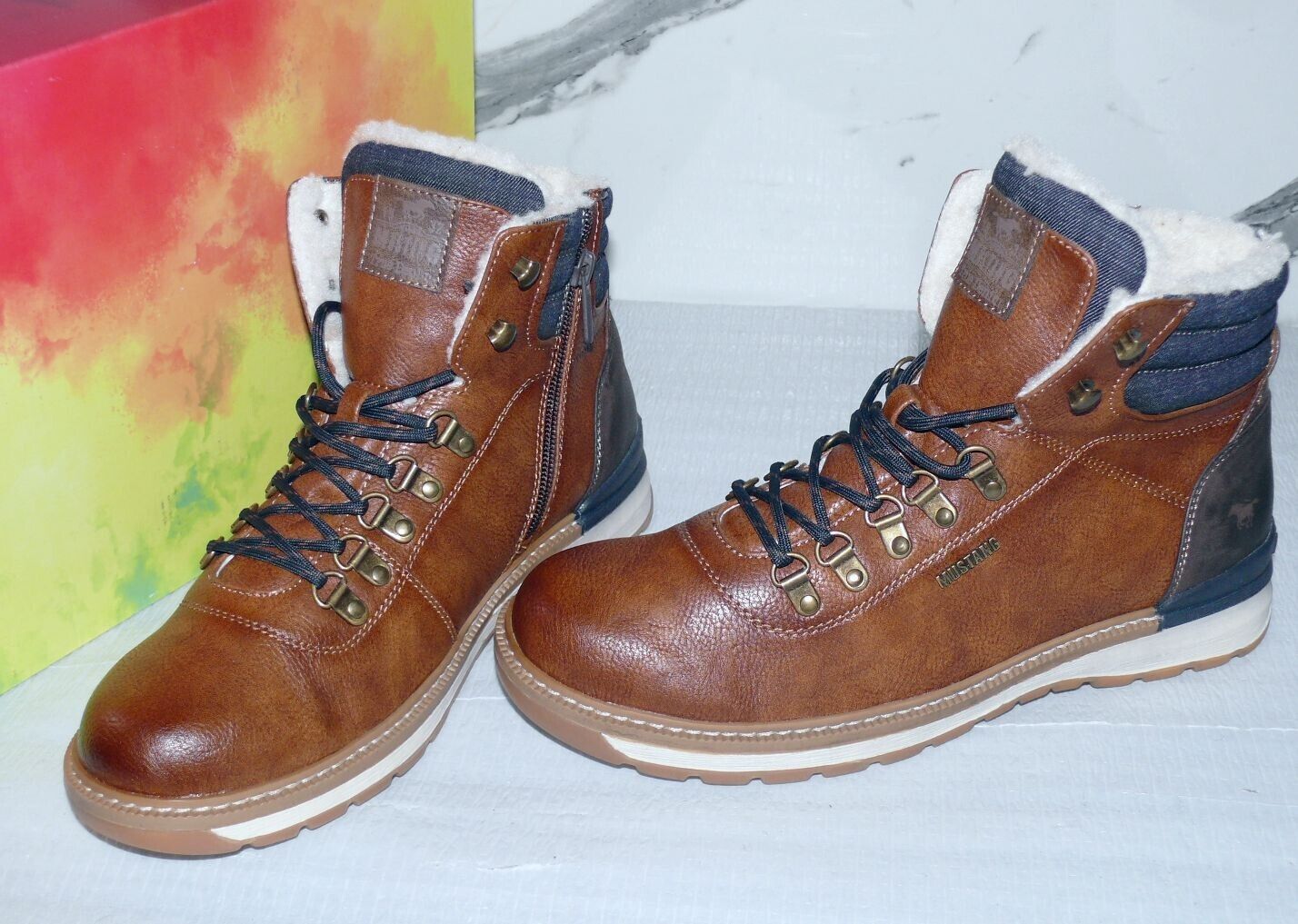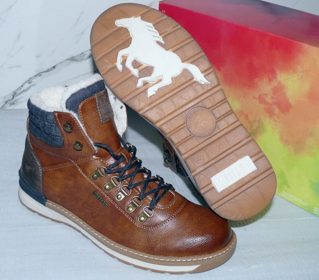 Mustang Denim Warme ZIP Herbst Winter Schuhe Boots Stiefel Futter 42 Braun D55