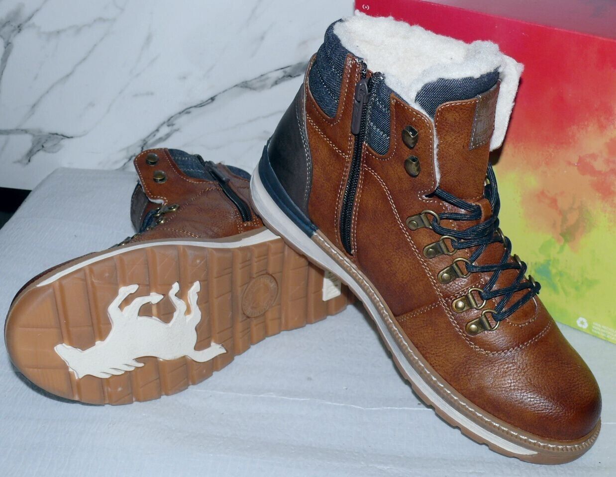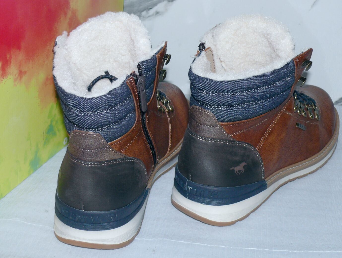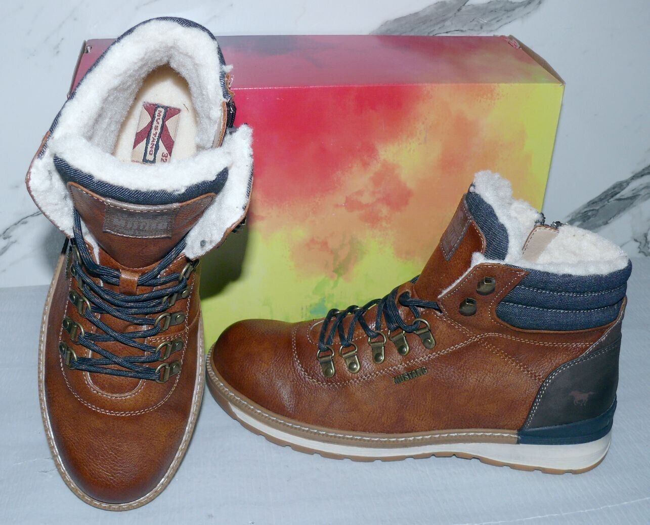 Mustang Denim Warme ZIP Herbst Winter Schuhe Boots Stiefel Futter 42 Braun D55