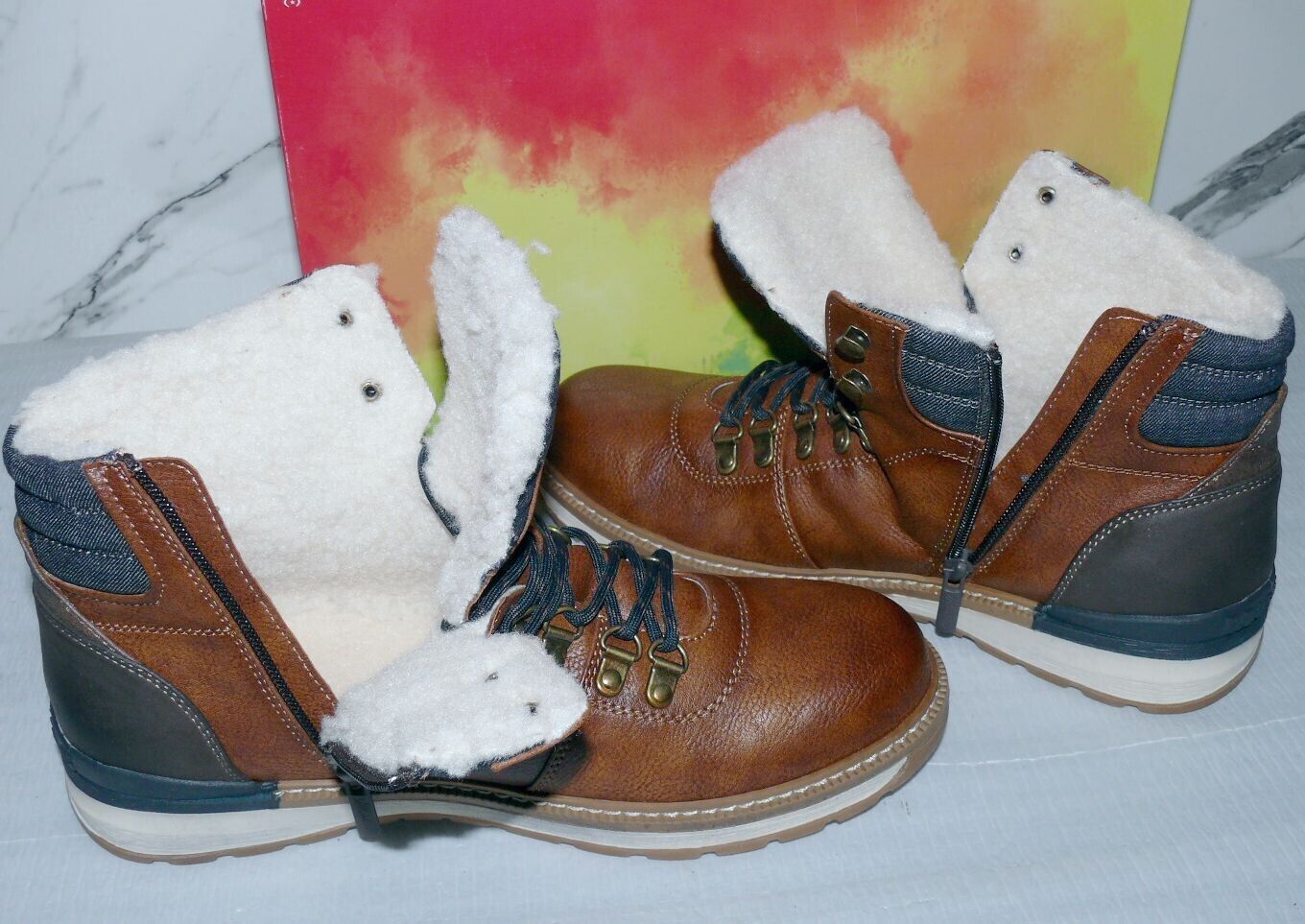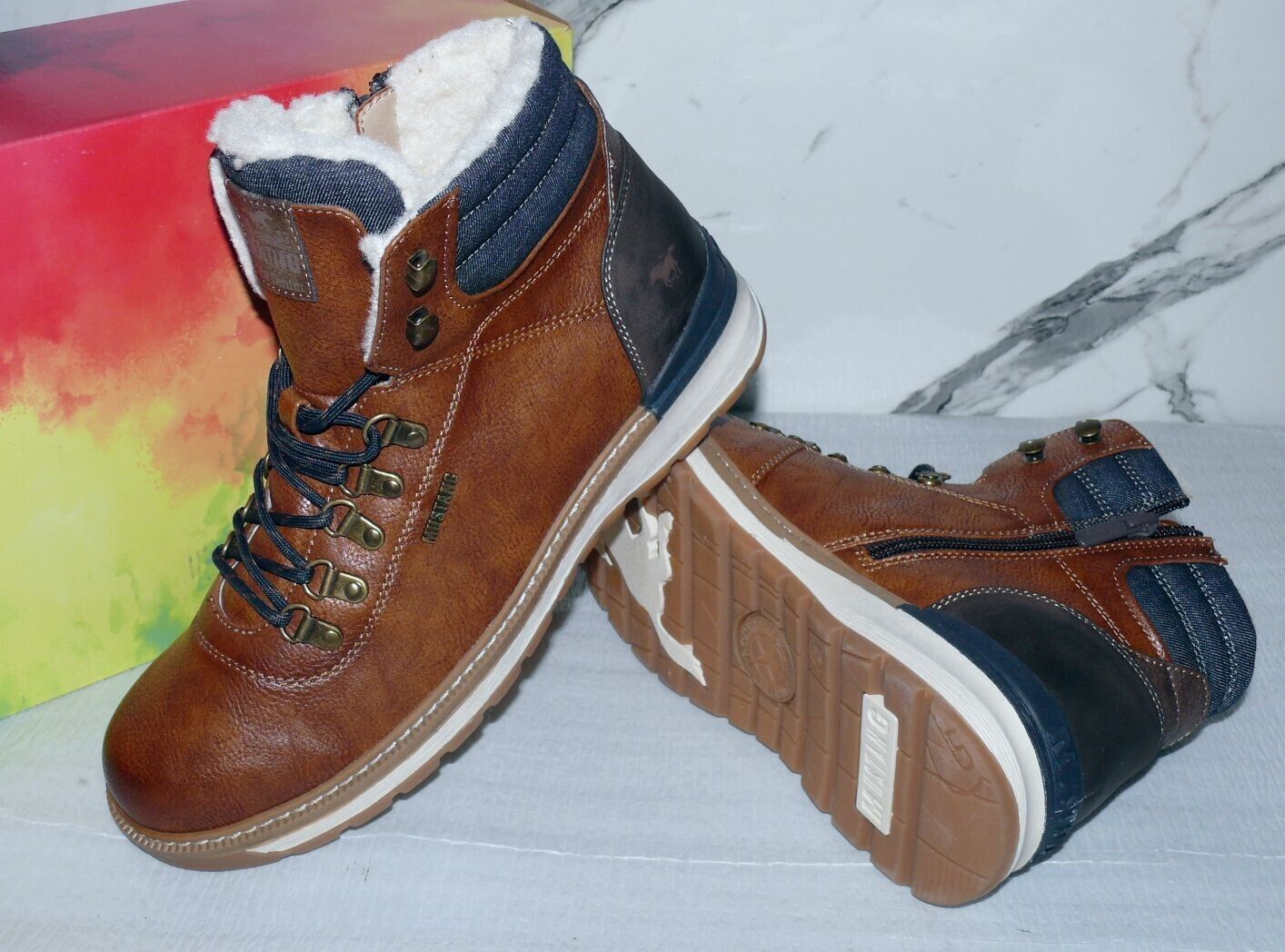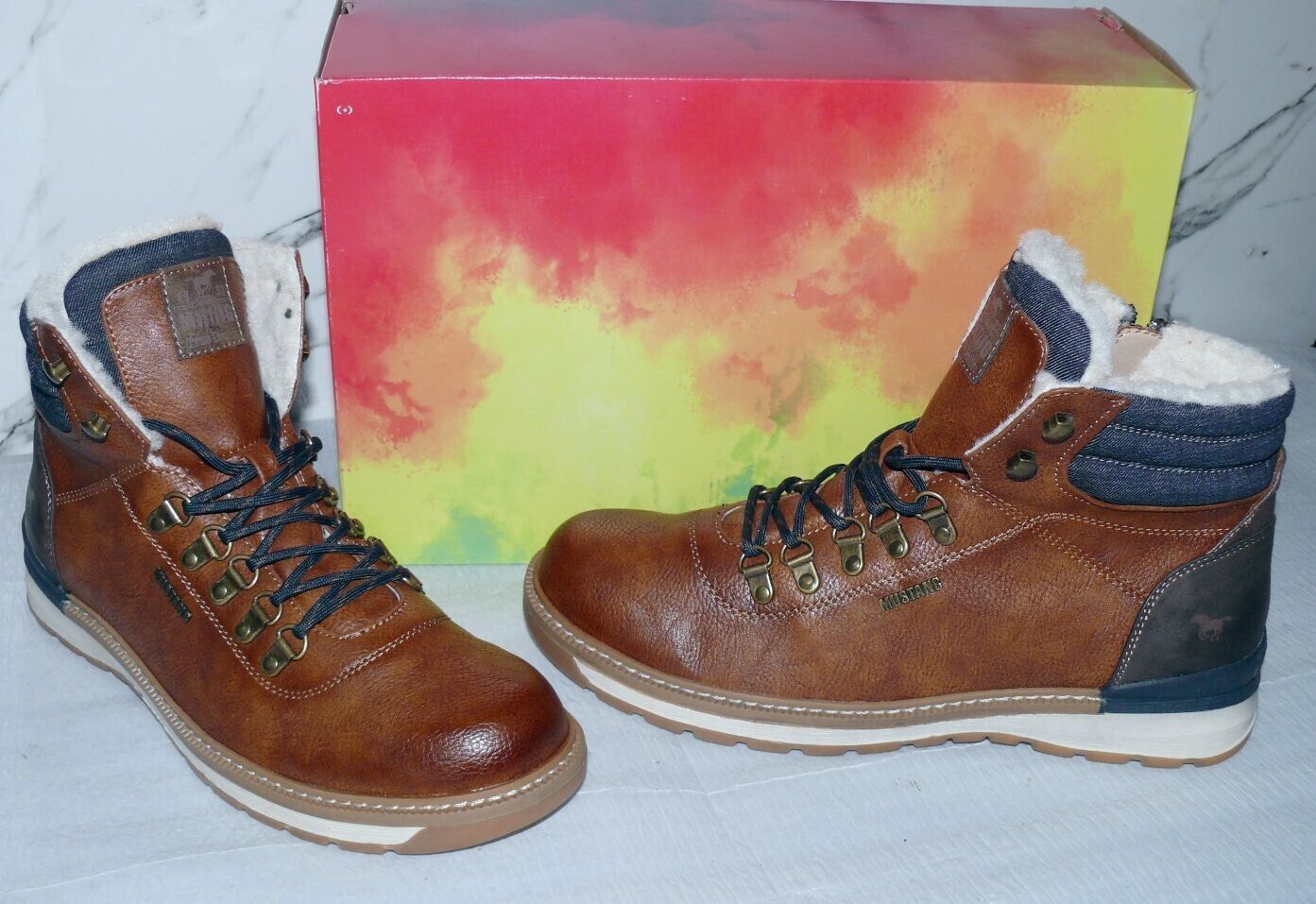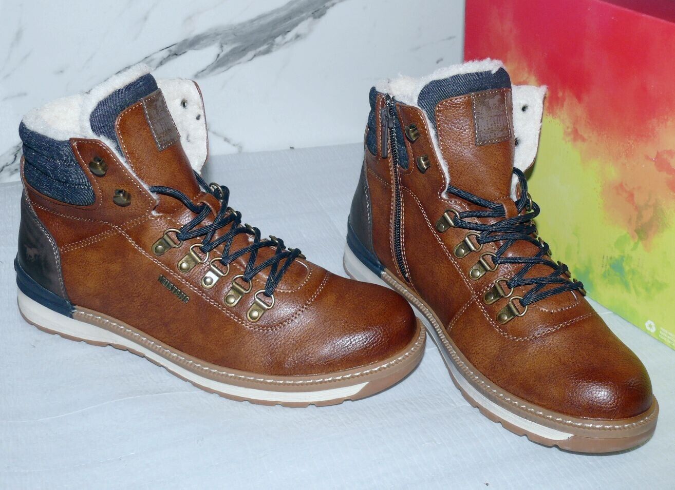 Mustang Denim Warme ZIP Herbst Winter Schuhe Boots Stiefel Futter 42 Braun D55