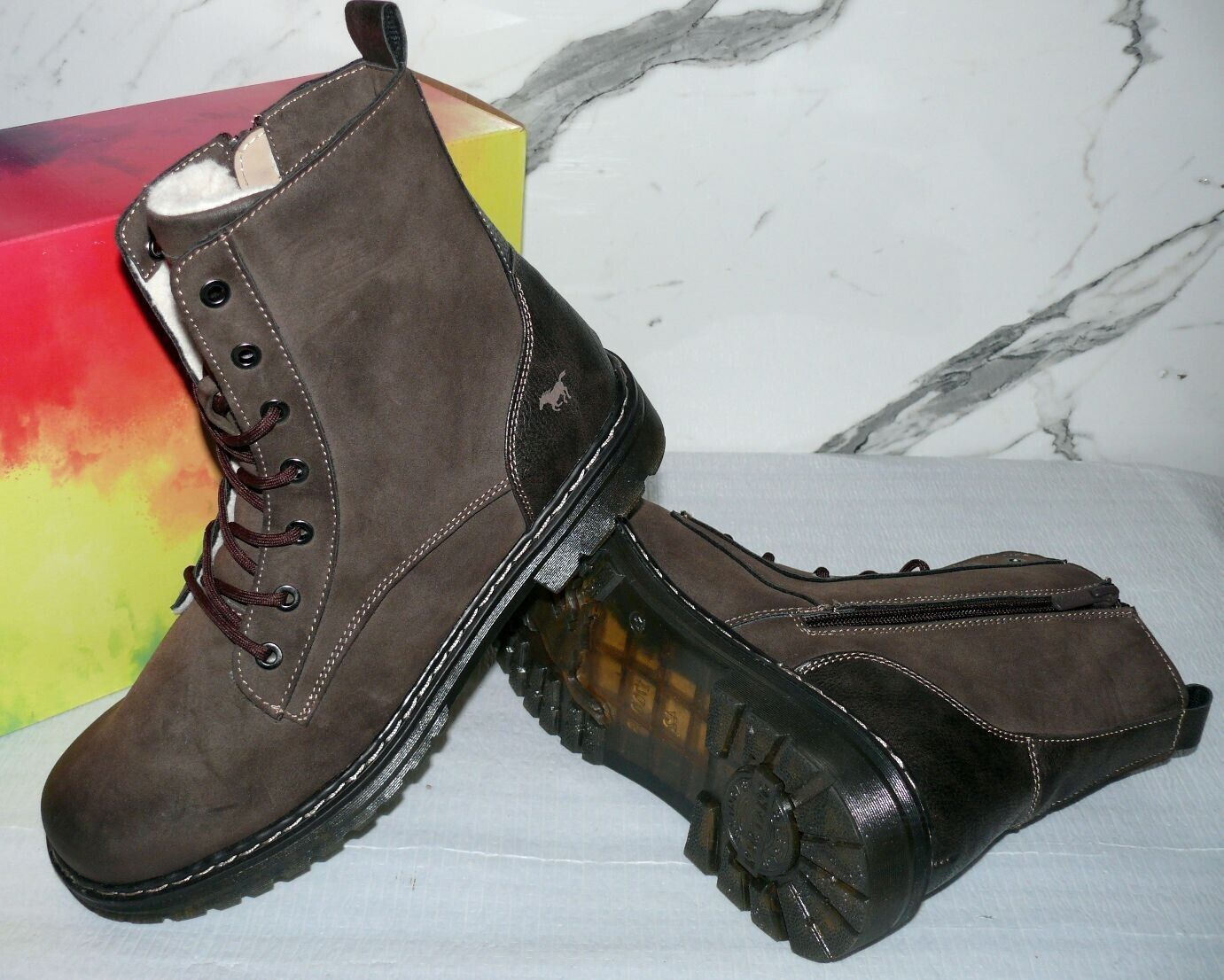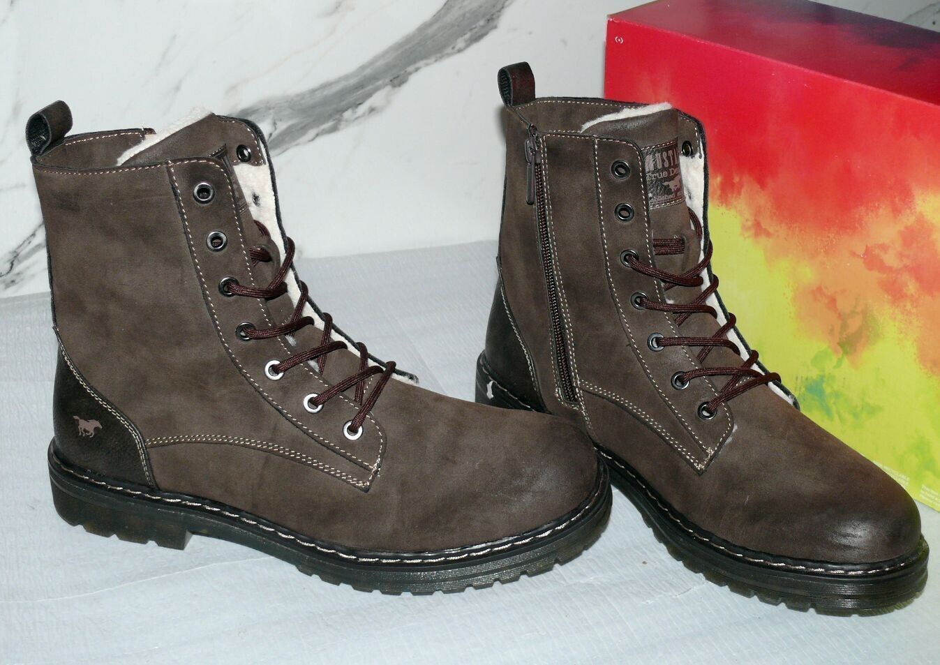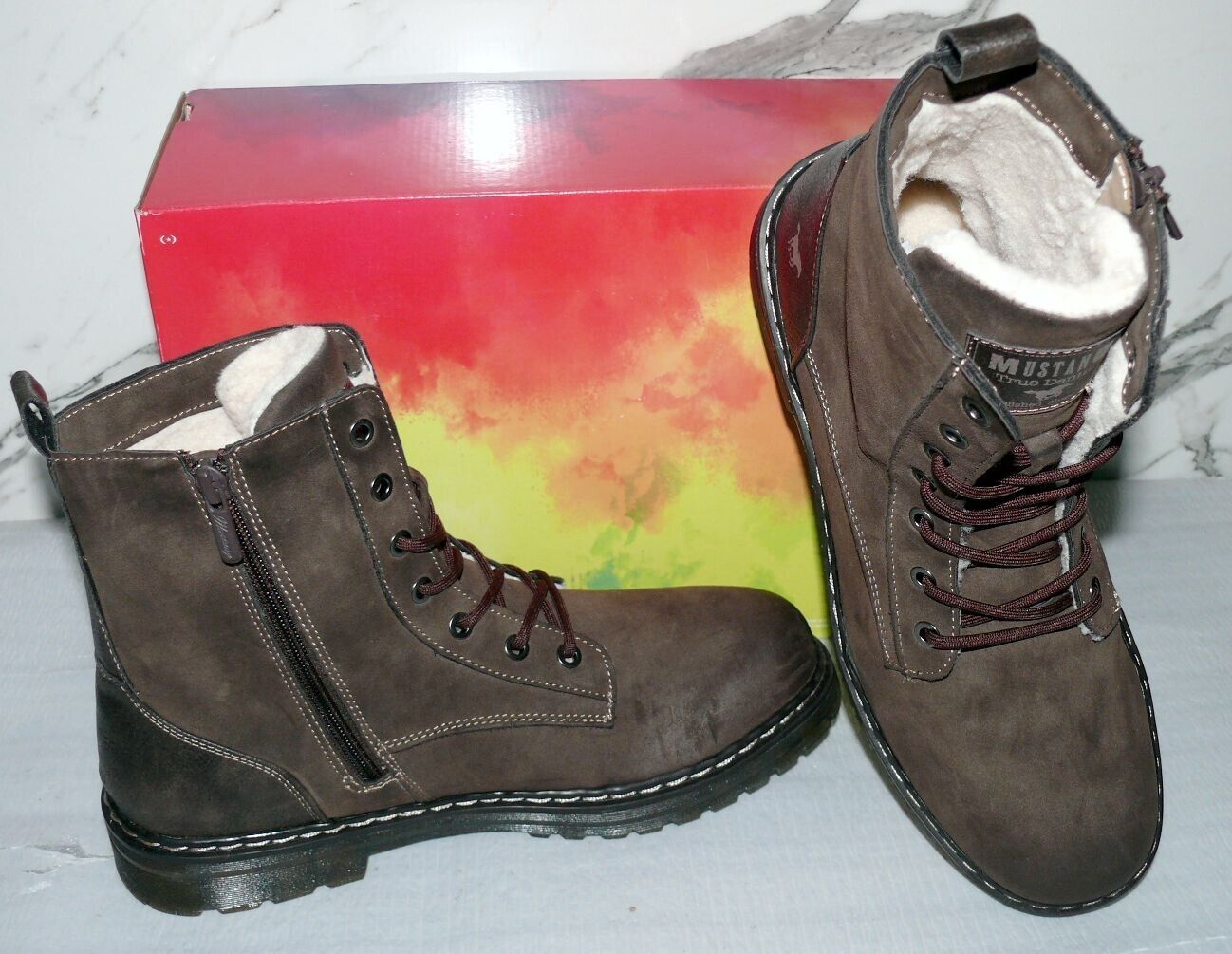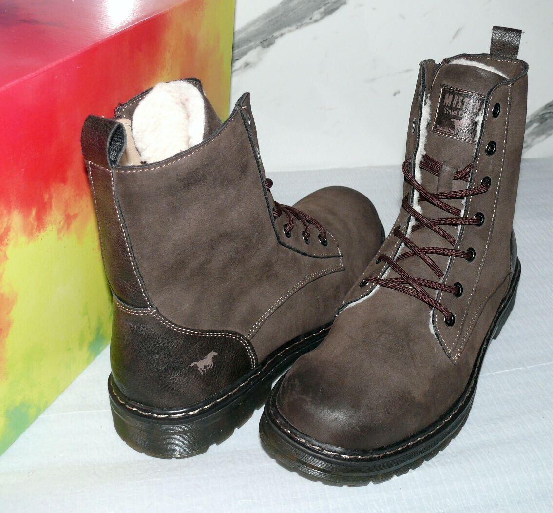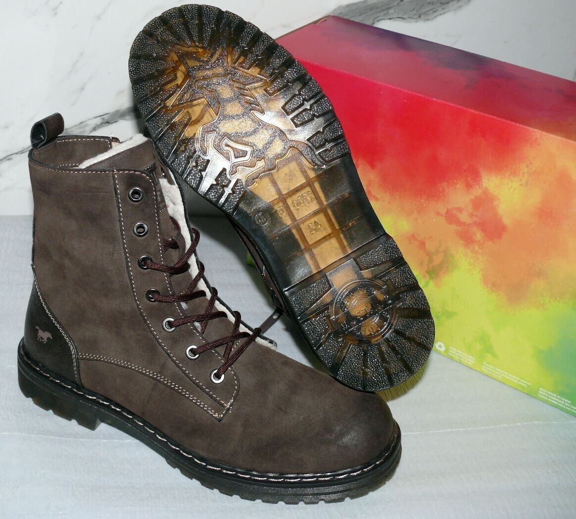Mustang Denim Warme ZIP Herbst Winter Schuhe Boots Stiefel Futter 42 Braun D56