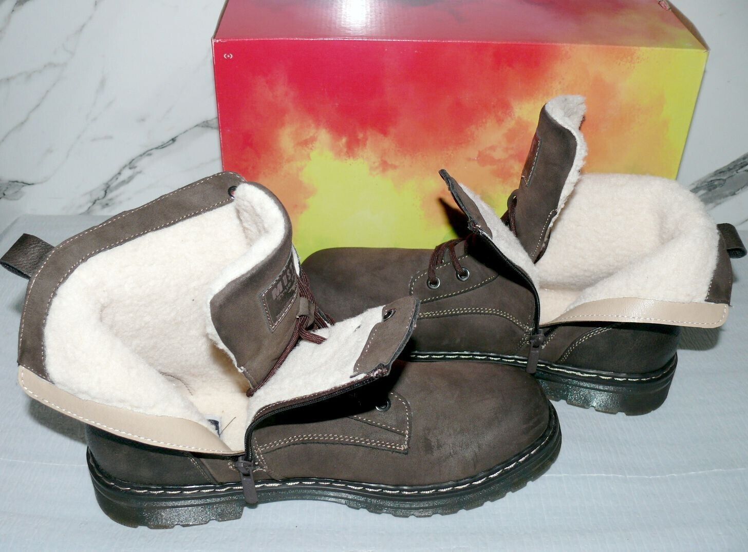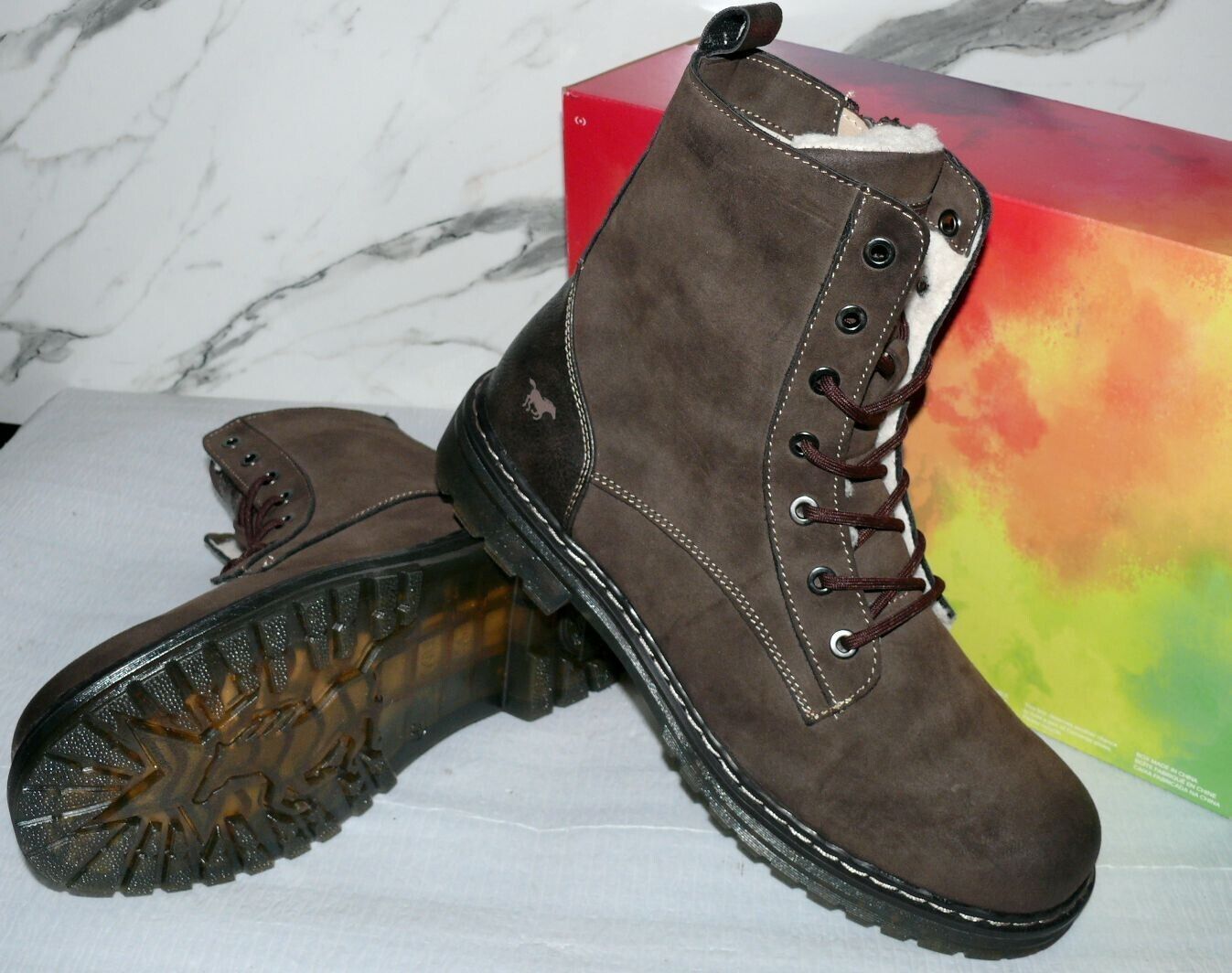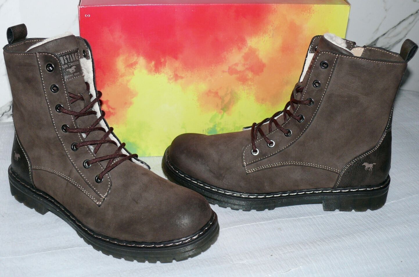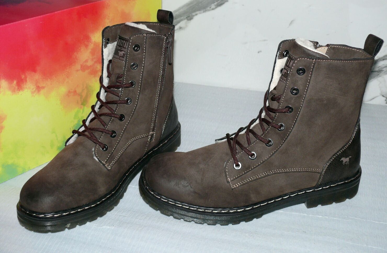 Mustang Denim Warme ZIP Herbst Winter Schuhe Boots Stiefel Futter 42 Braun D56
