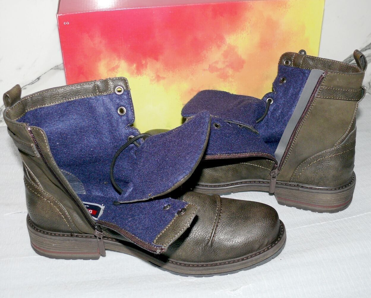 Mustang Denim Warme ZIP Herbst Winter Schuhe Boots Stiefel Futter 42 Braun D97