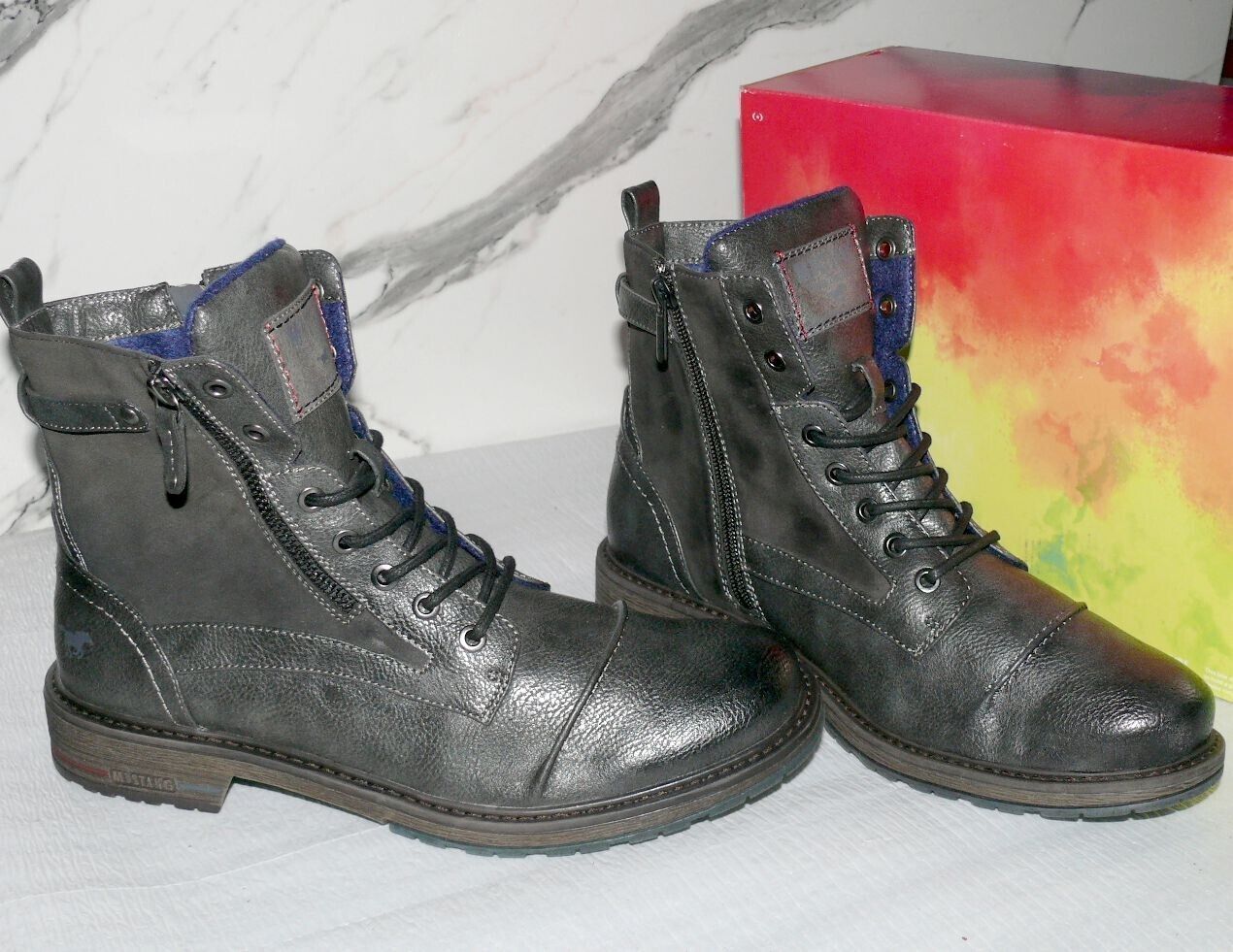 Mustang Denim Warme ZIP Herbst Winter Schuhe Boots Stiefel Futter 42 Dk. Grau D98
