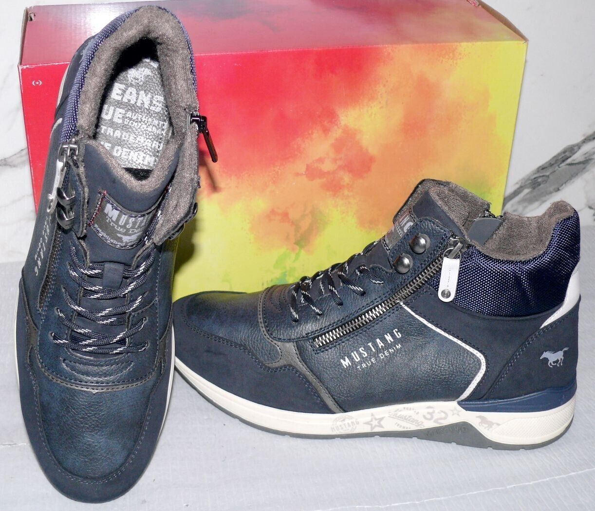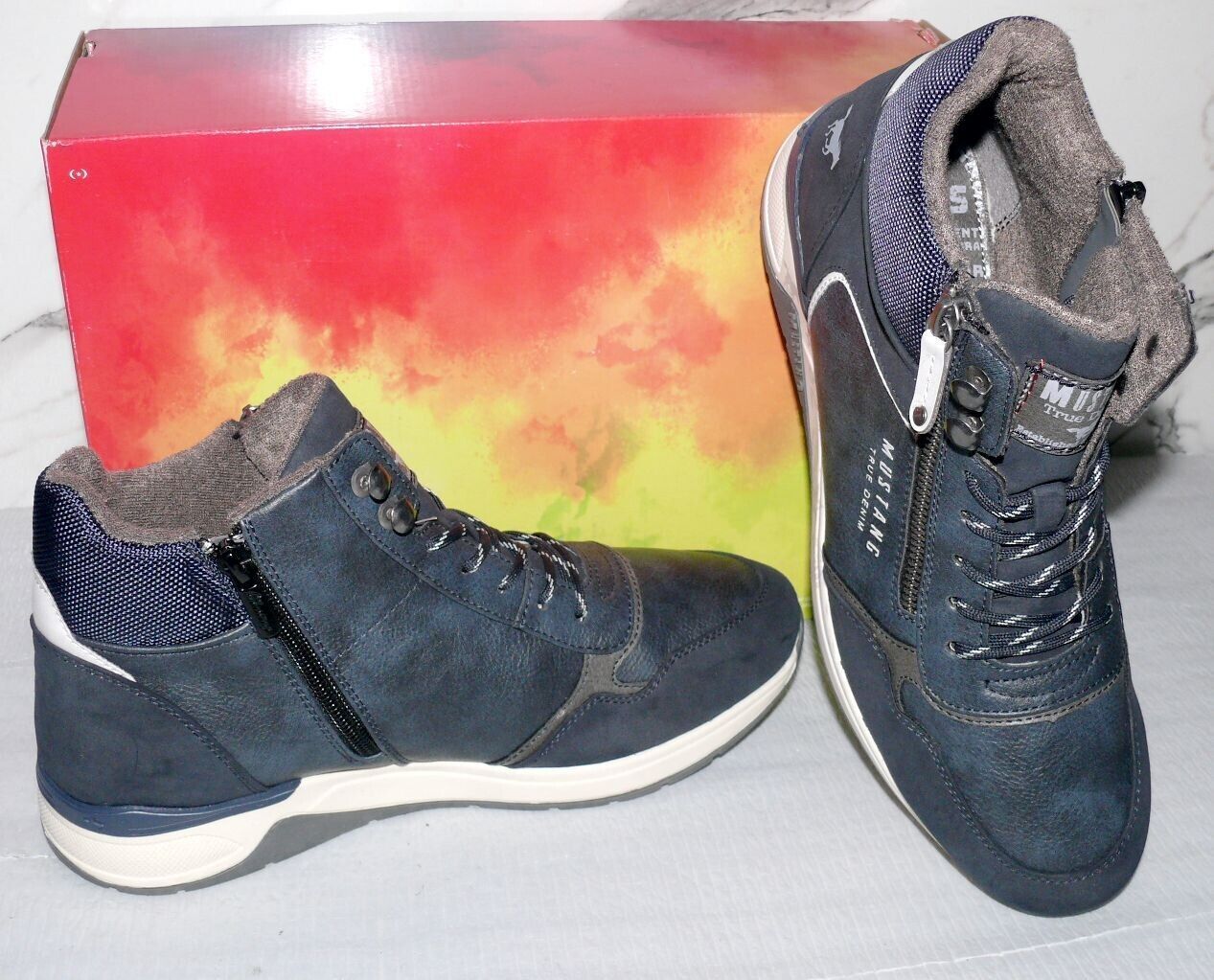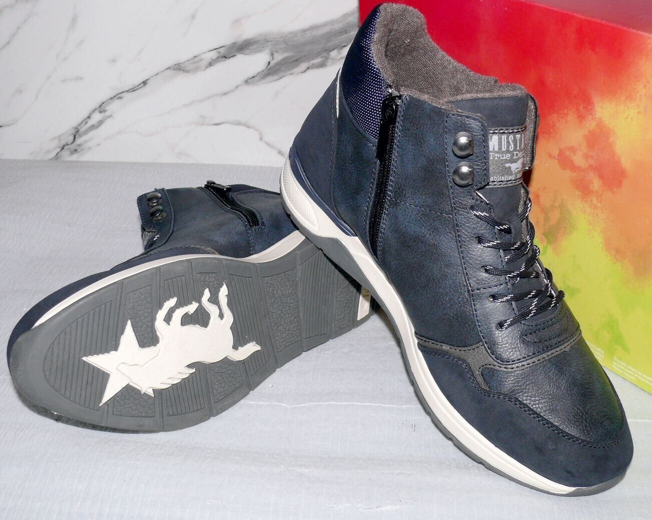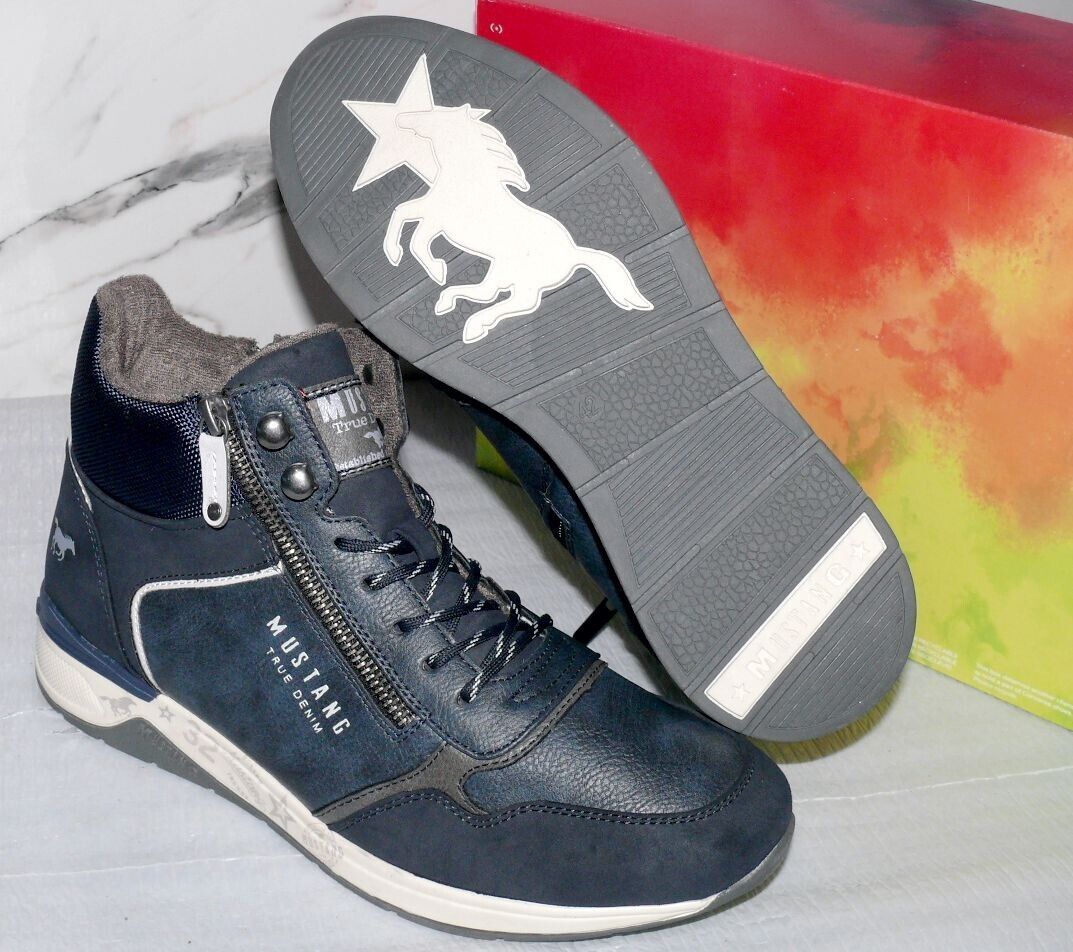 Mustang Denim Warme ZIP Herbst Winter Schuhe Boots Stiefel Futter 42 Navy D80