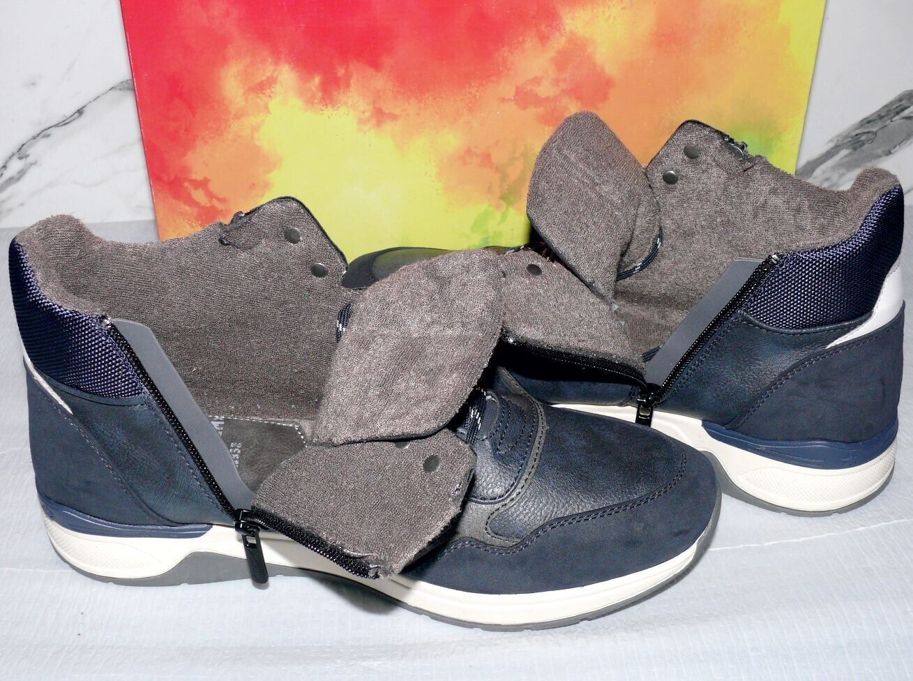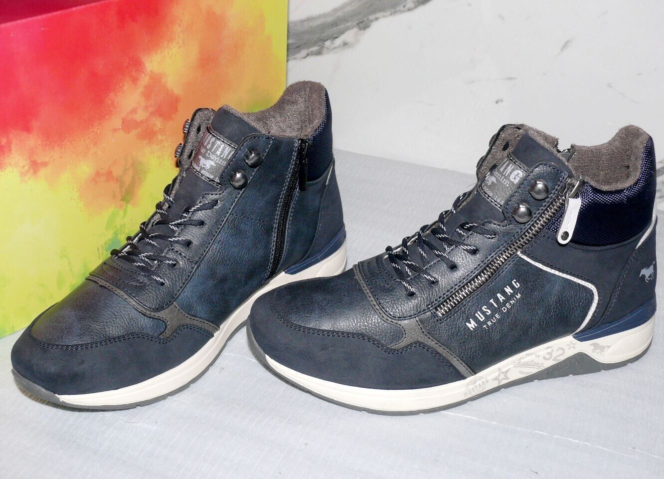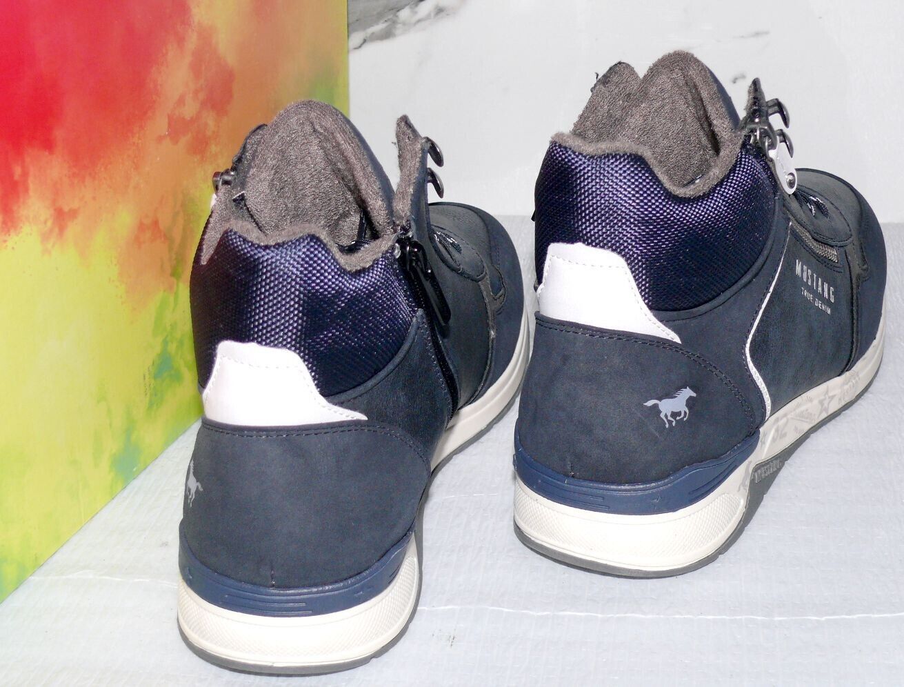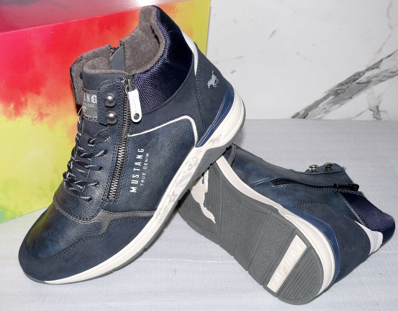 Mustang Denim Warme ZIP Herbst Winter Schuhe Boots Stiefel Futter 42 Navy D80