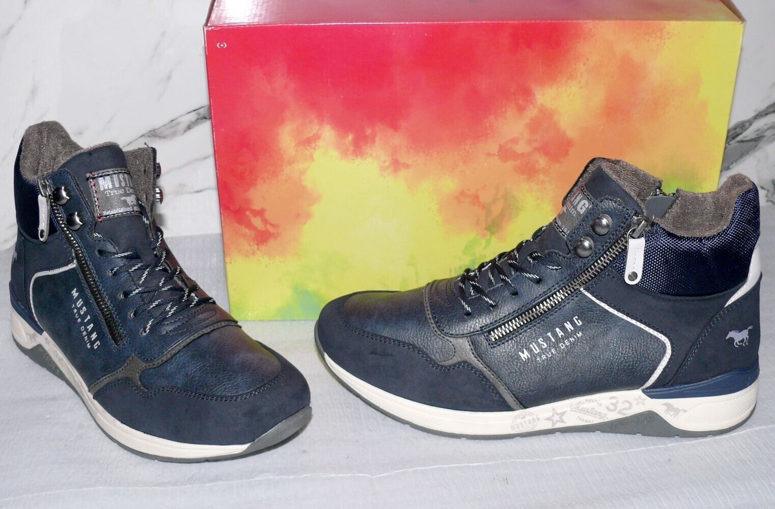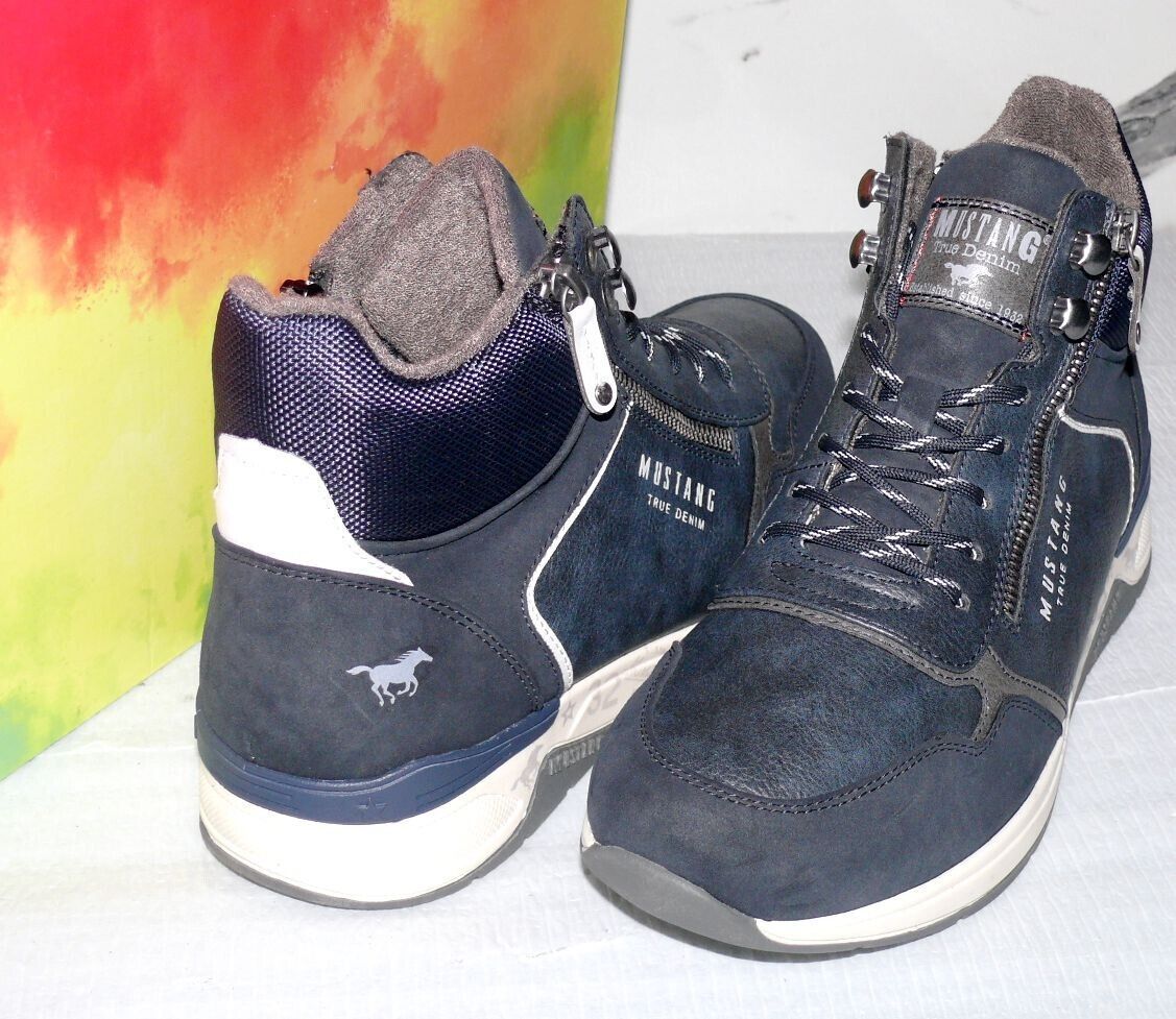 Mustang Denim Modischer Schnürhalb Schuhe LOW Boots Sport Sneaker 42 Navy K2