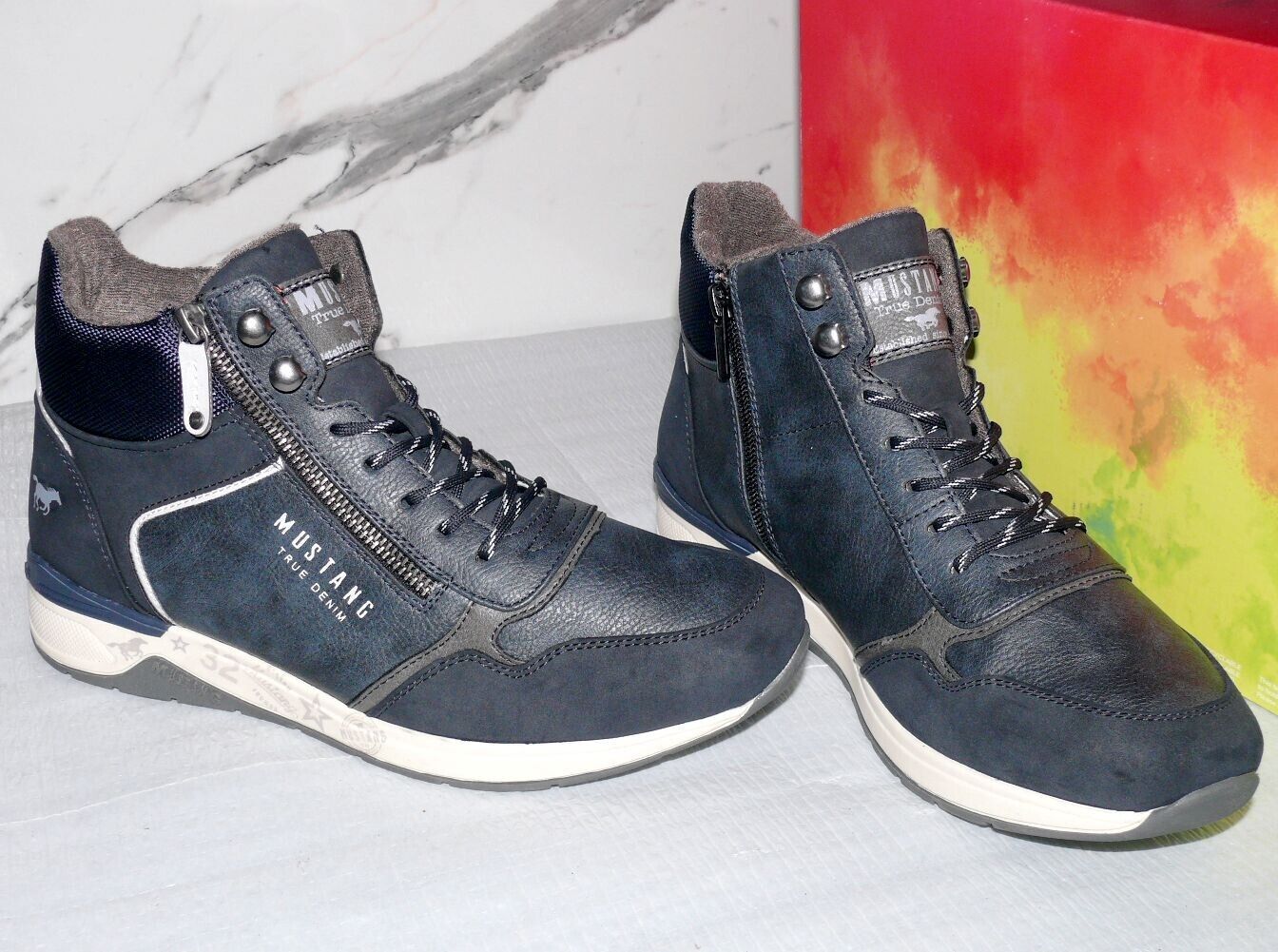 Mustang Denim Modischer LOW Schnürhalb Schuhe Boots Sport Sneaker 42 Navy K26