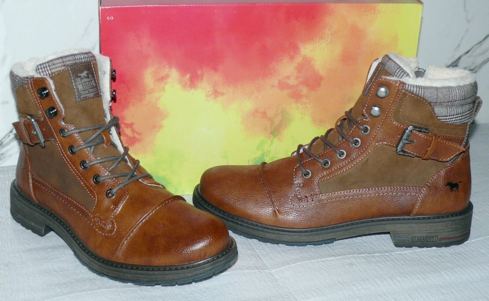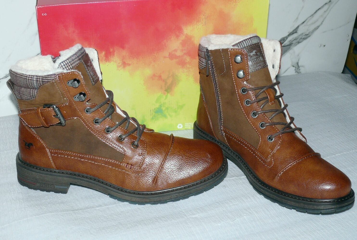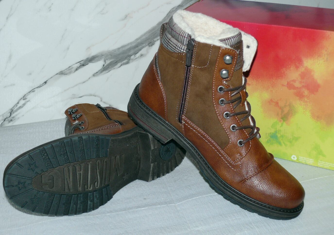 Mustang Denim Modischer ZIP Schnürhalb Schuhe Boots Sport Sneaker 42 Braun K23