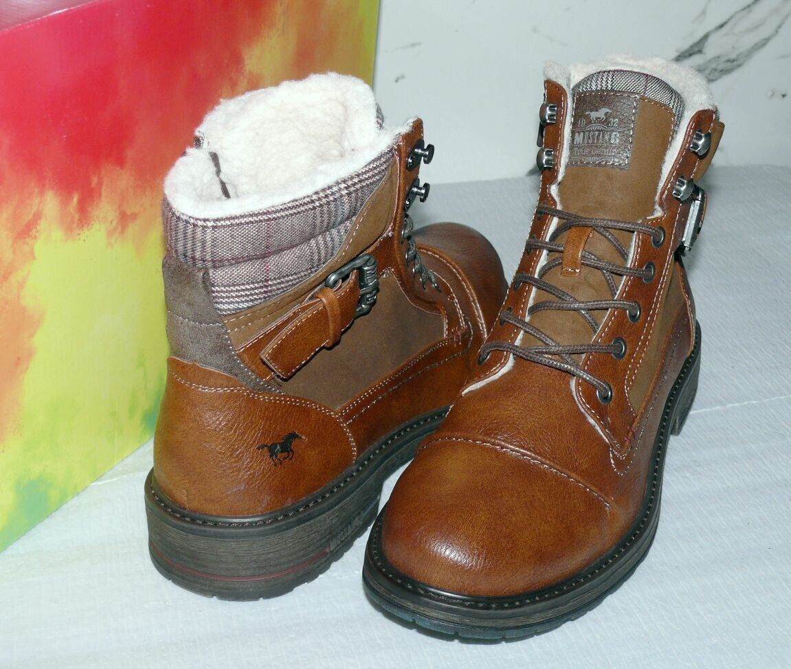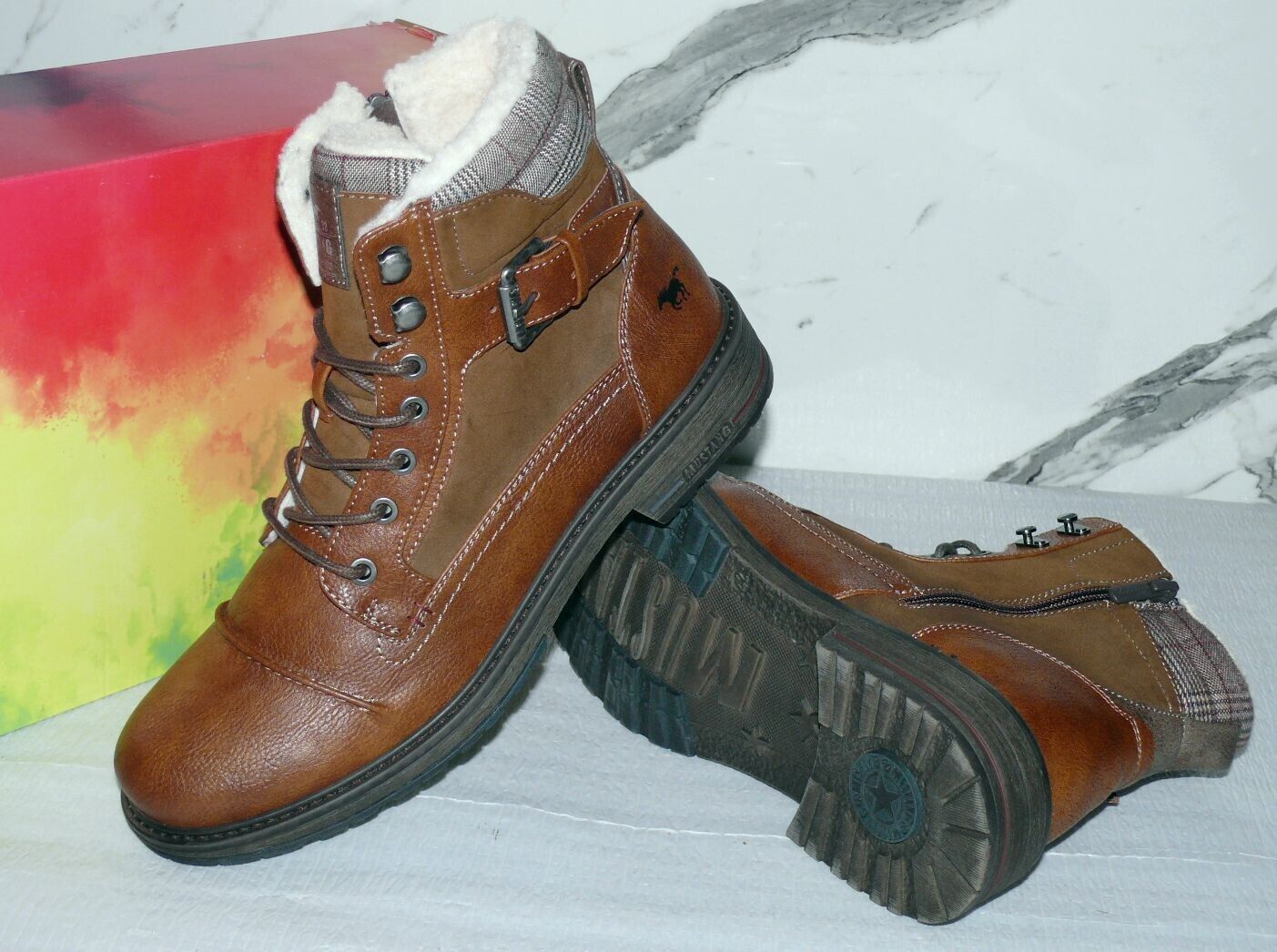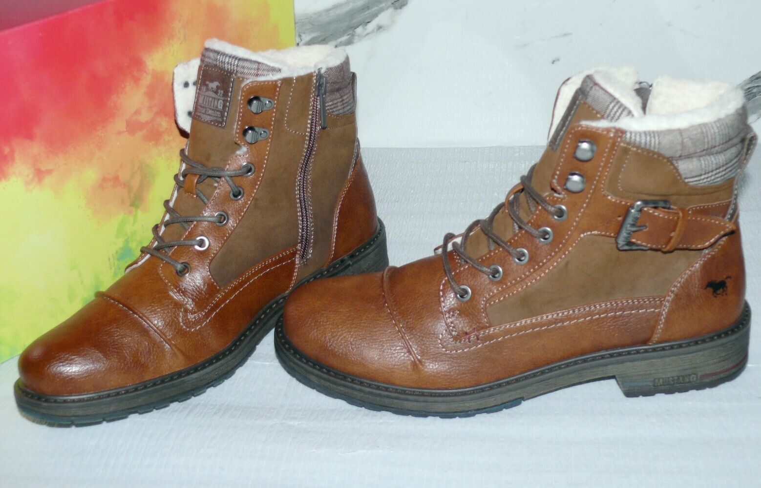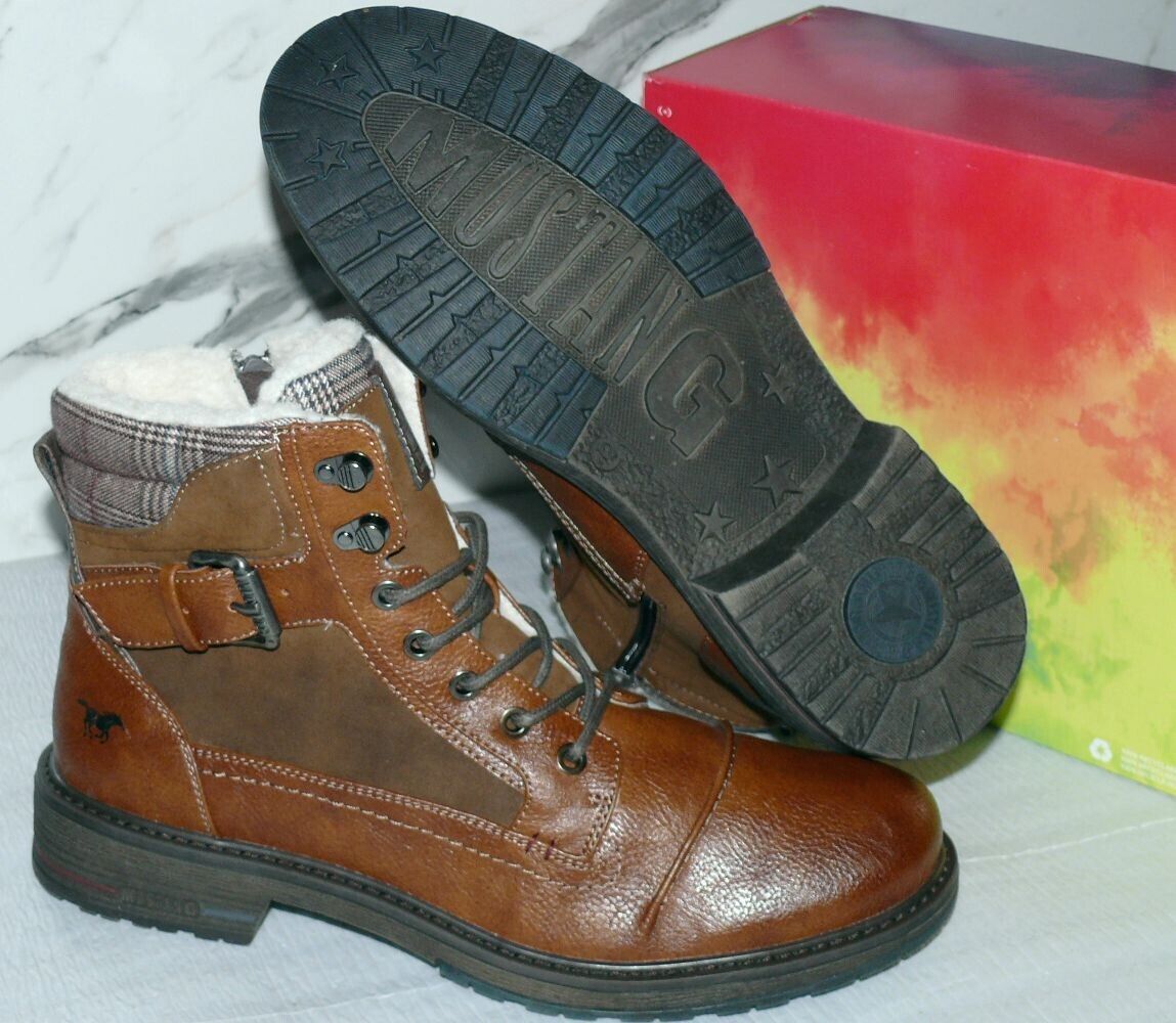 Mustang Denim Modischer ZIP Schnürhalb Schuhe Boots Sport Sneaker 42 Braun K23