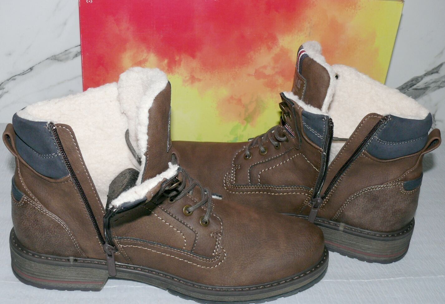 Mustang Denim ZIP Warme Herbst Winter Schuhe Boots Stiefel Futter 42 Braun D8