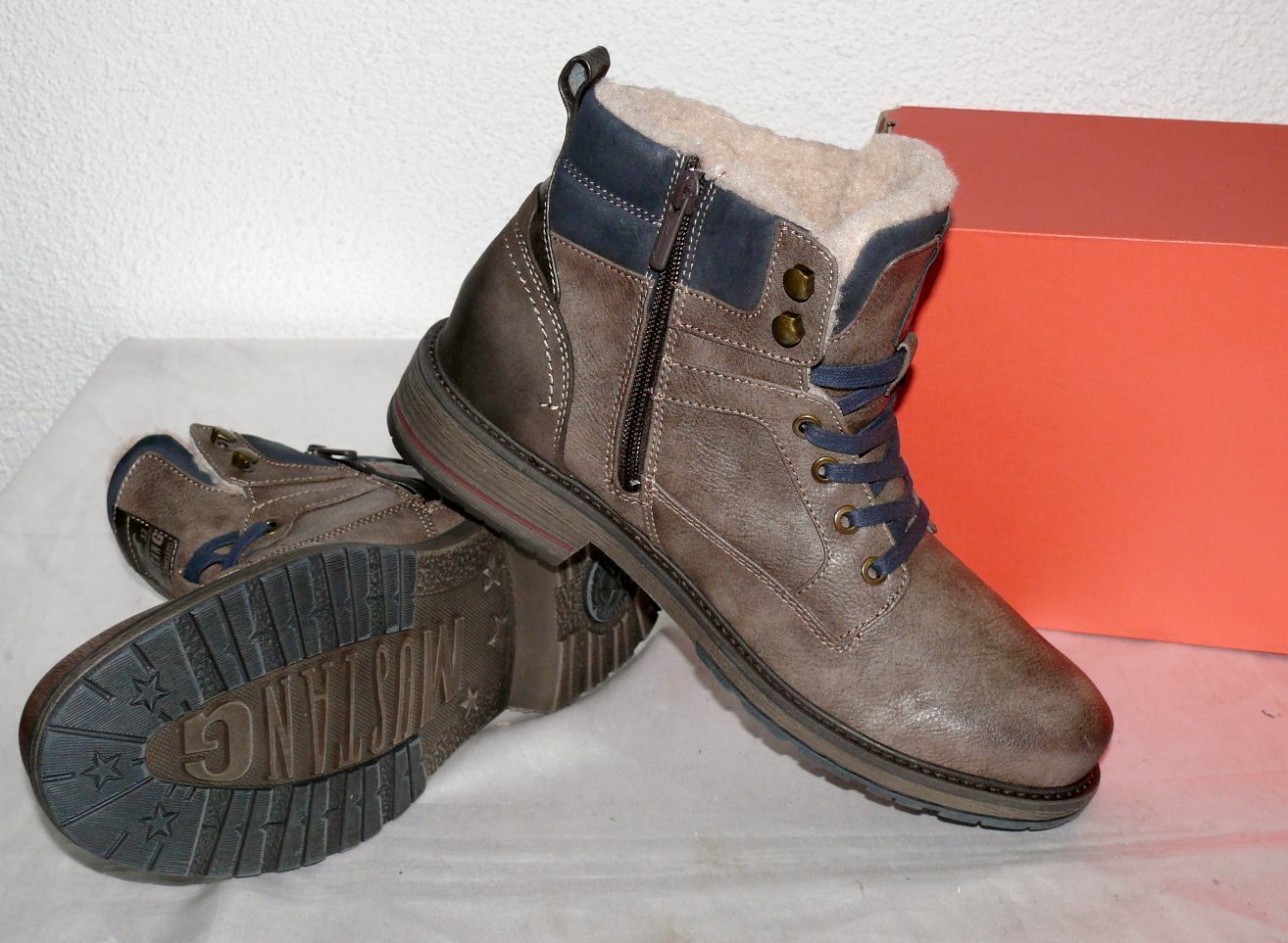 Mustang Denim Warme ZIP Herbst Winter Schuhe Boots Stiefel Futter 42 Navy D85