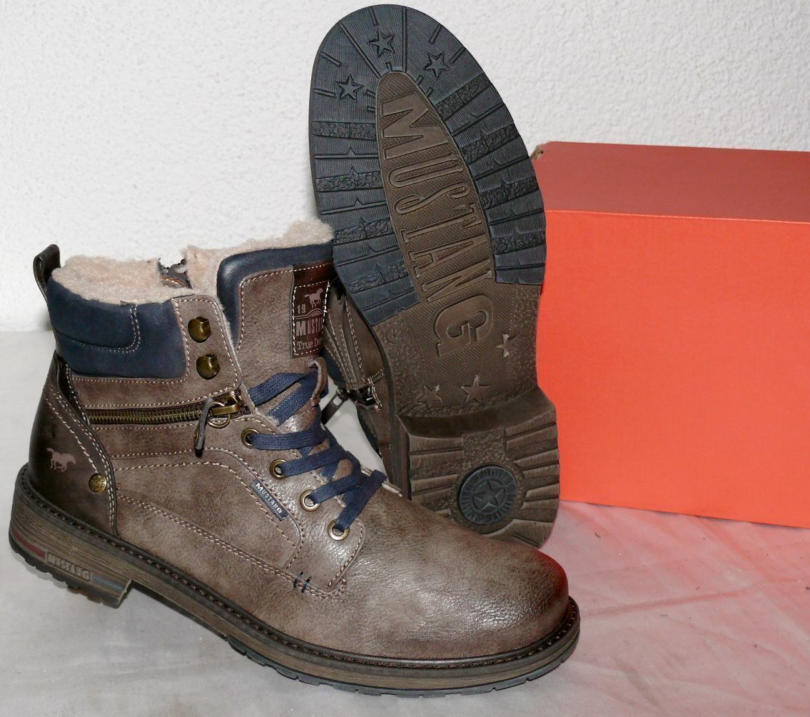 Mustang Denim Modischer ZIP Schnürhalb Schuhe Boots Sport Sneaker 42 Braun K23