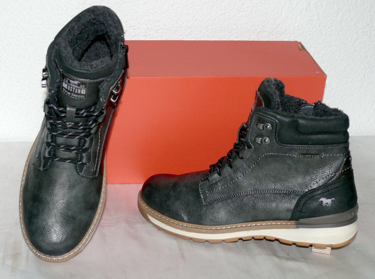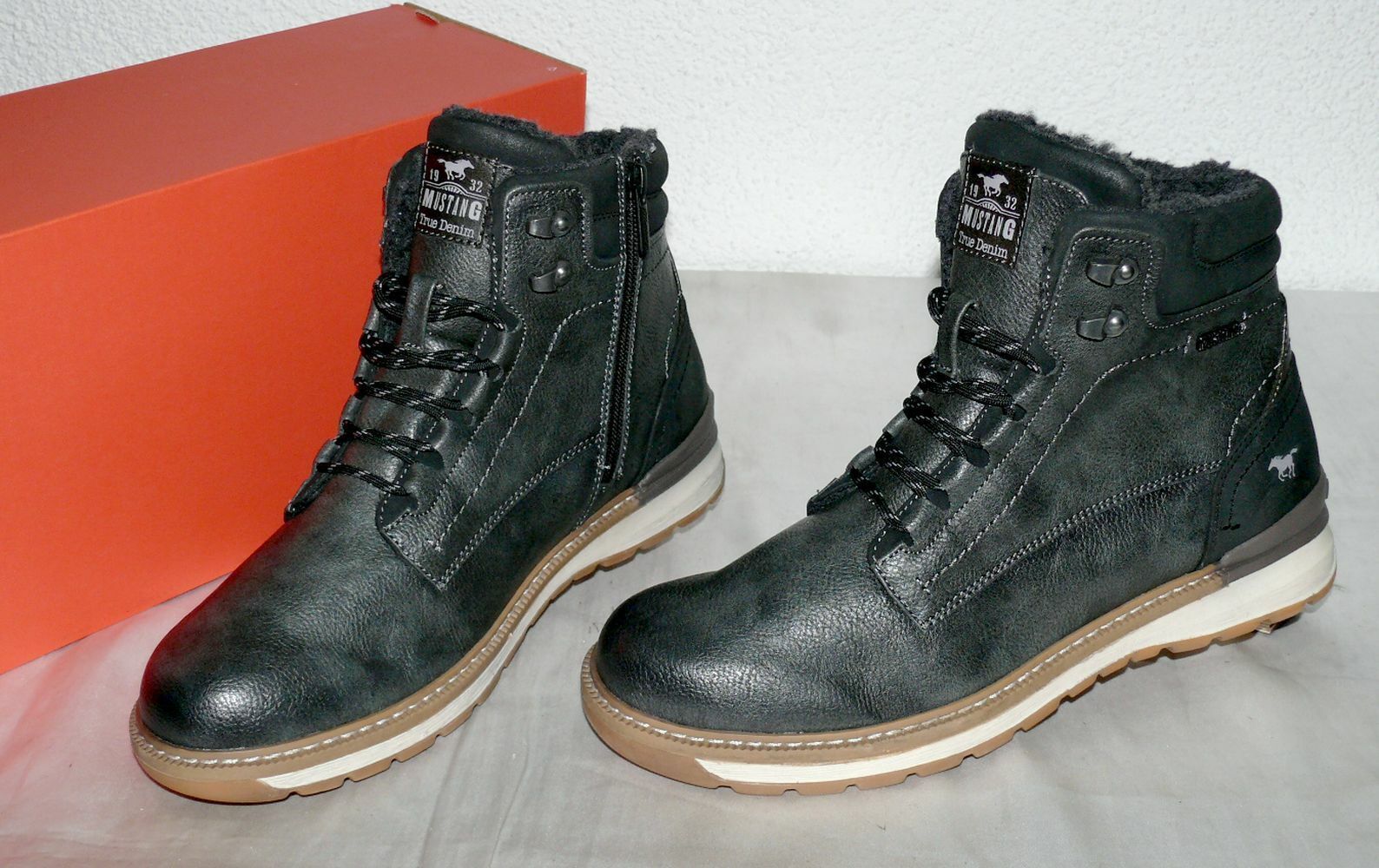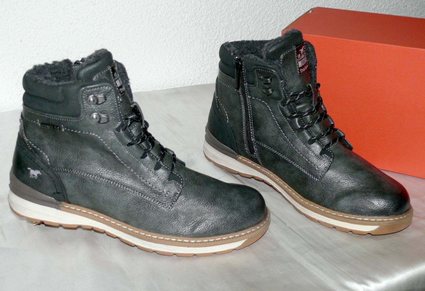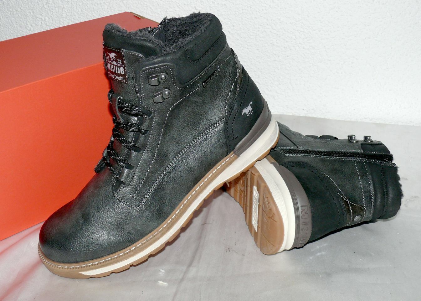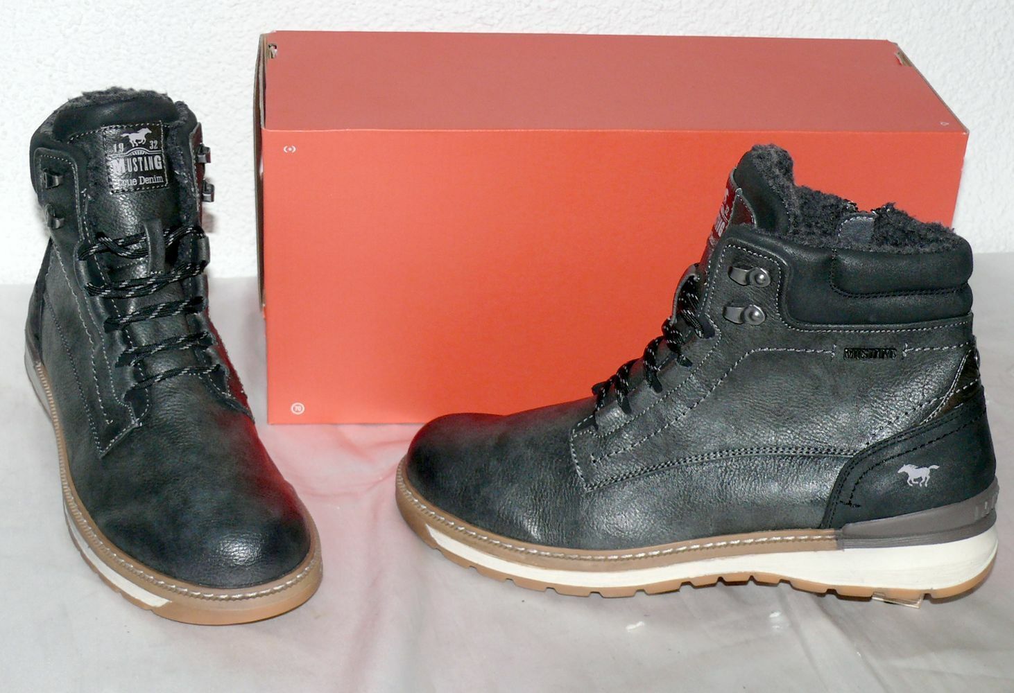 Mustang Denim ZIP Warme Herbst Winter Schuhe Boots Stiefel Futter 42 Dk. Grau N15