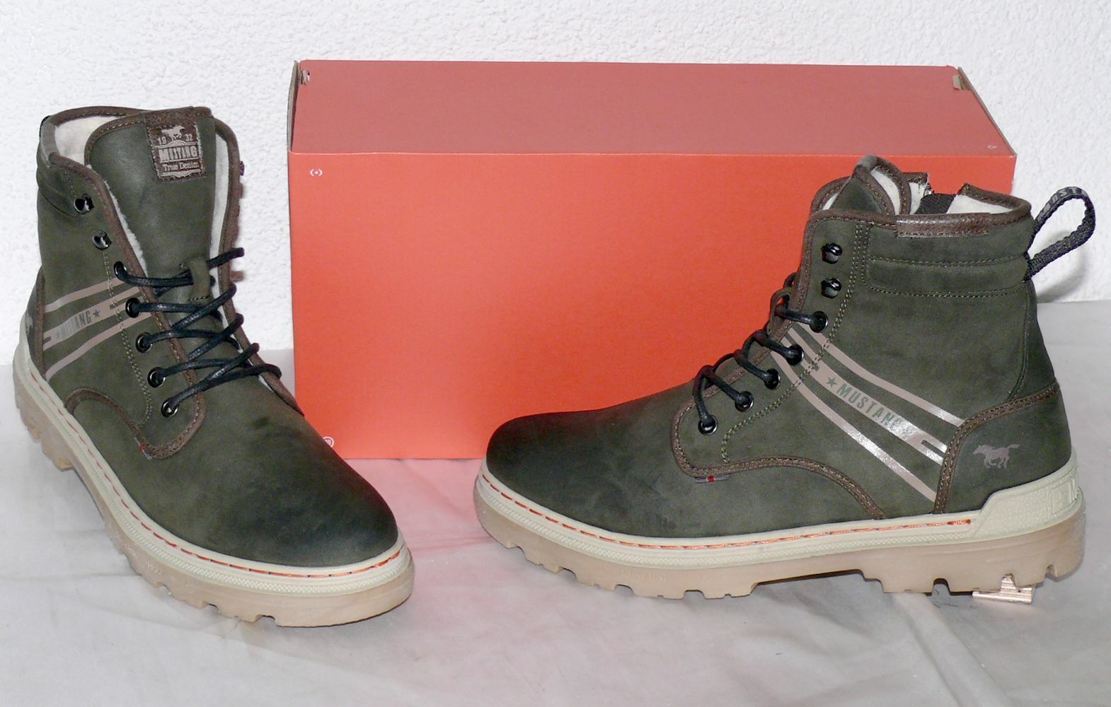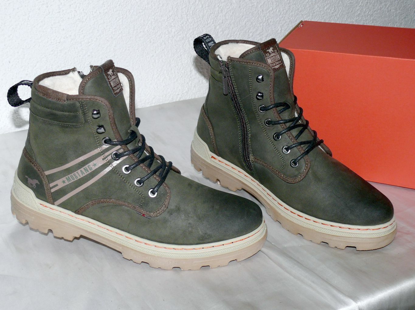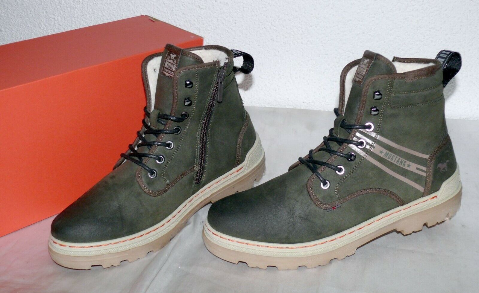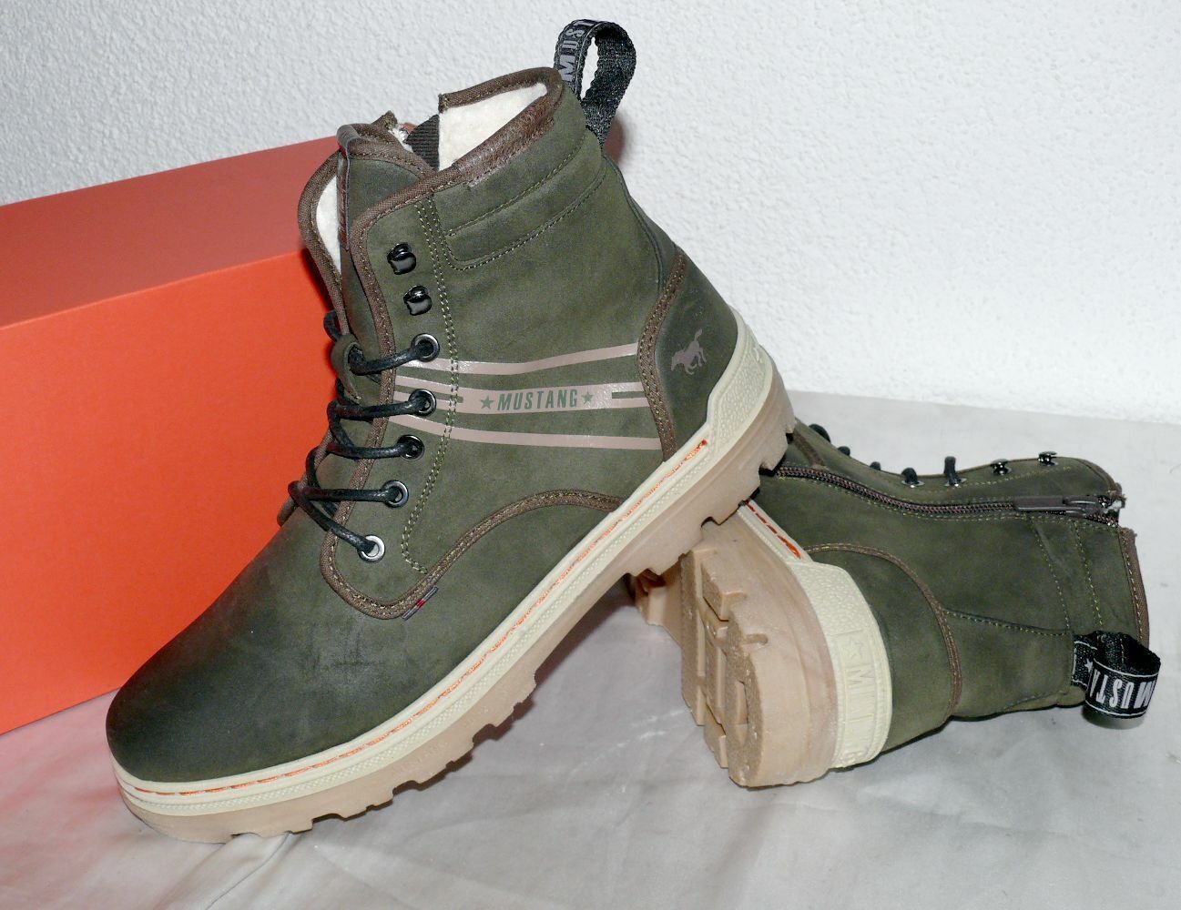 Mustang Denim Modischer ZIP Schnürhalb Schuhe Boots Sport Sneaker 42 Dk. Grün K20