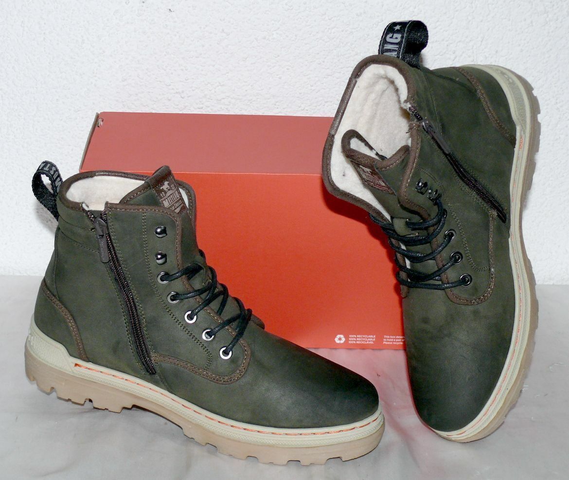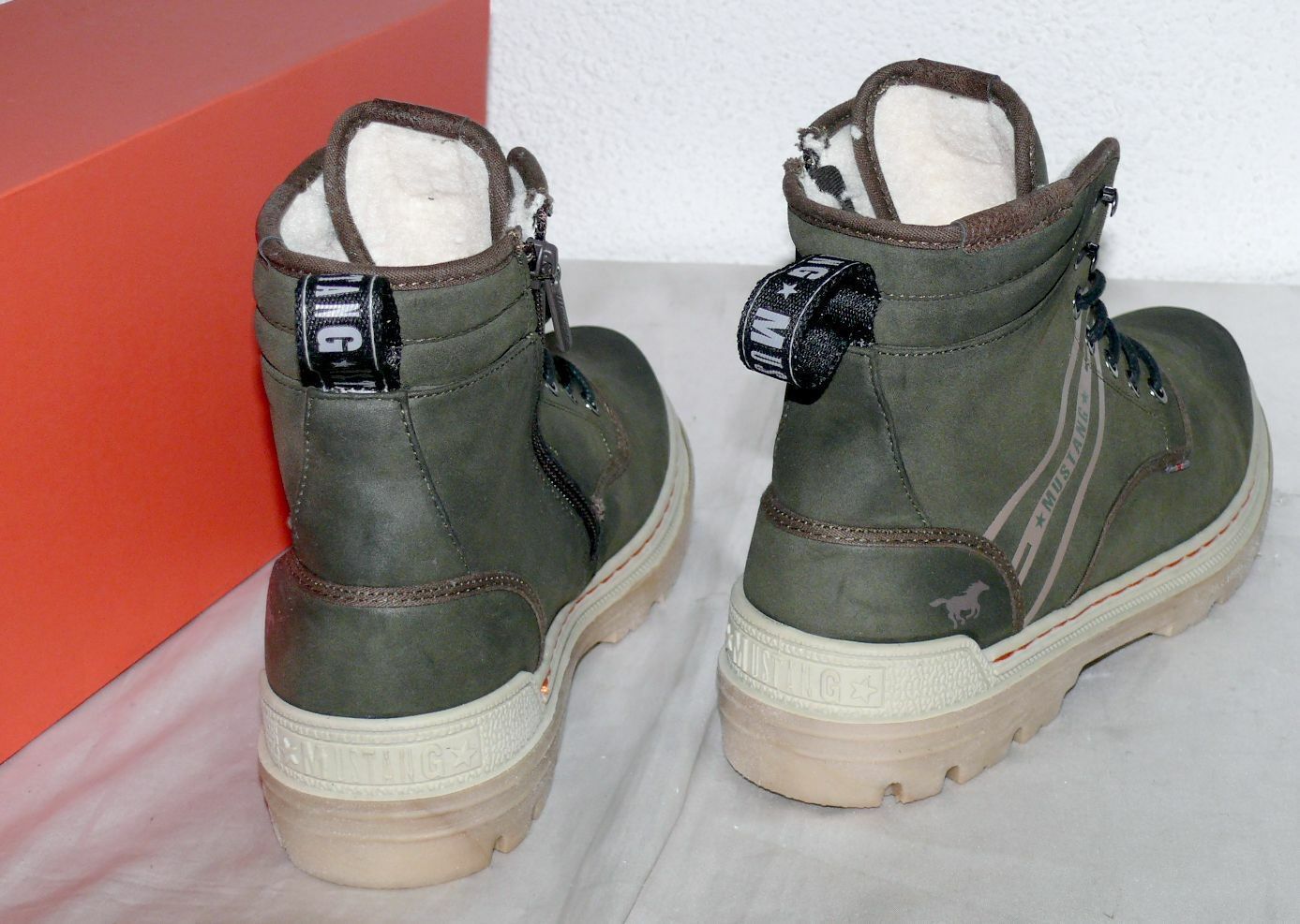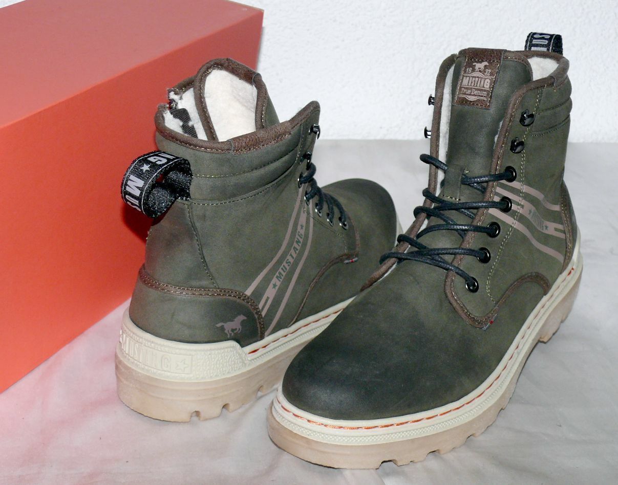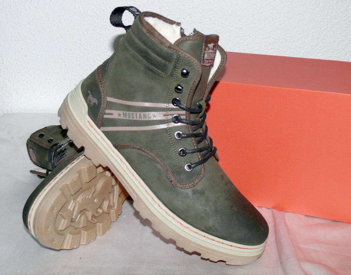 Mustang Denim Modischer ZIP Schnürhalb Schuhe Boots Sport Sneaker 42 Dk. Grün K20